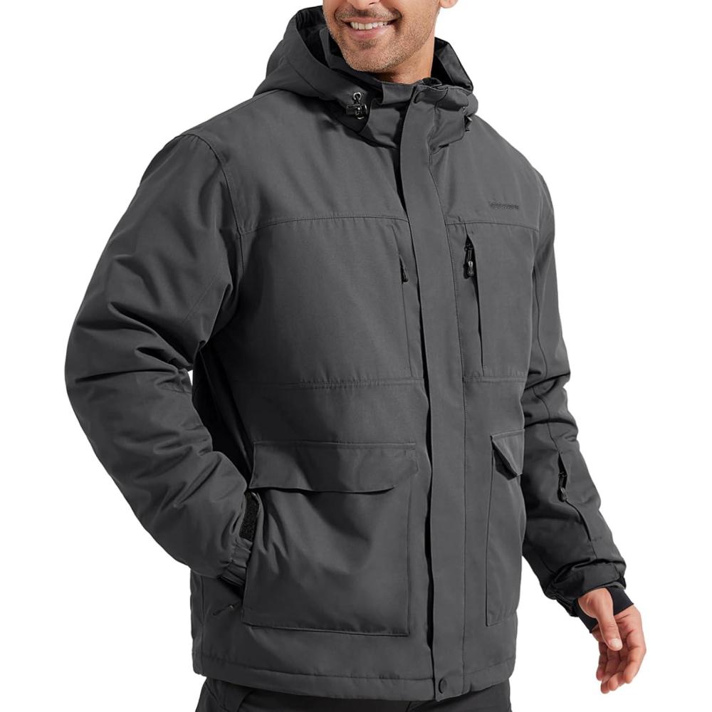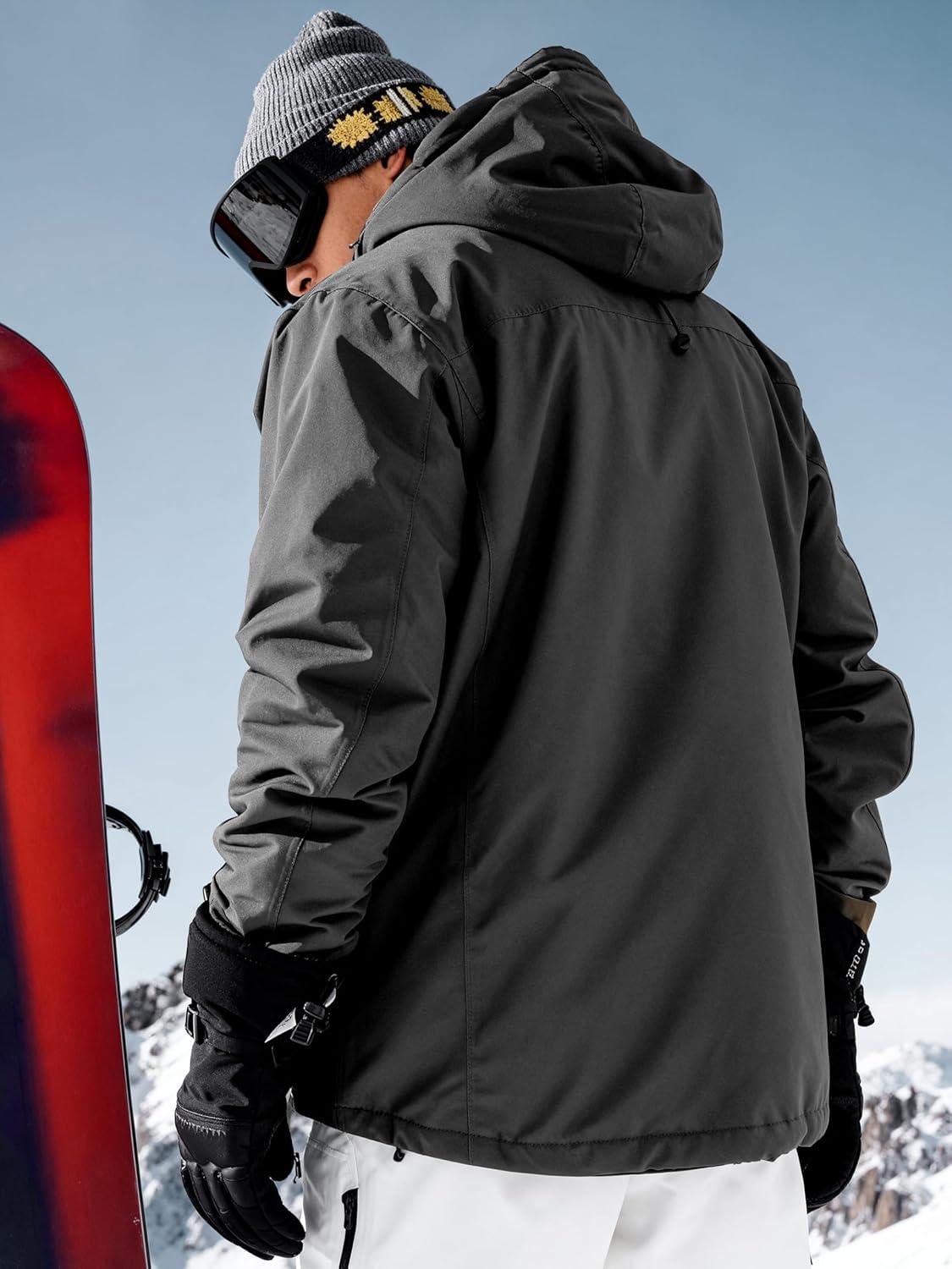 FREE SOLDIER Men's Waterproof Ski Jacket Fleece Lined Warm Winter Snow Coat with Hood Fully Taped Seams(Charcoal Gray)