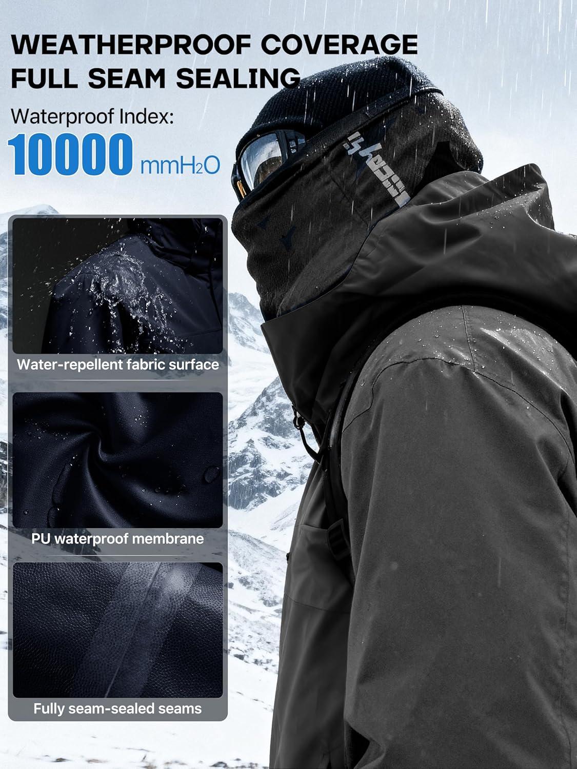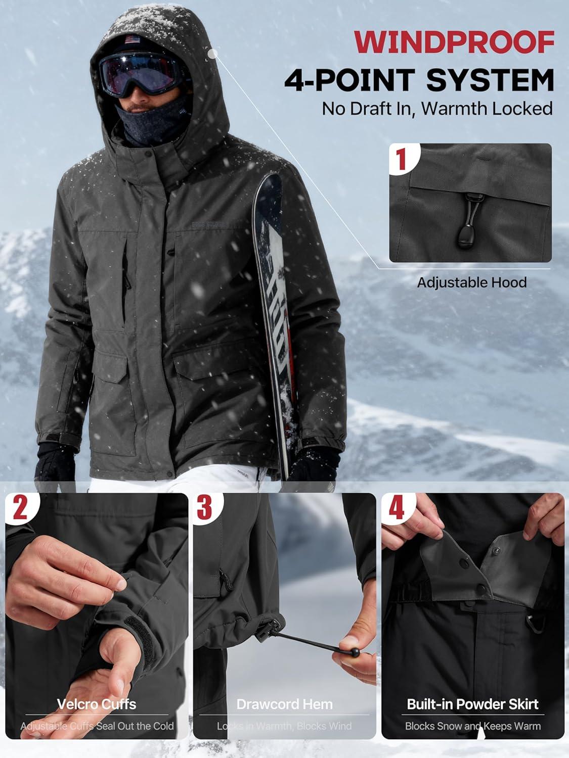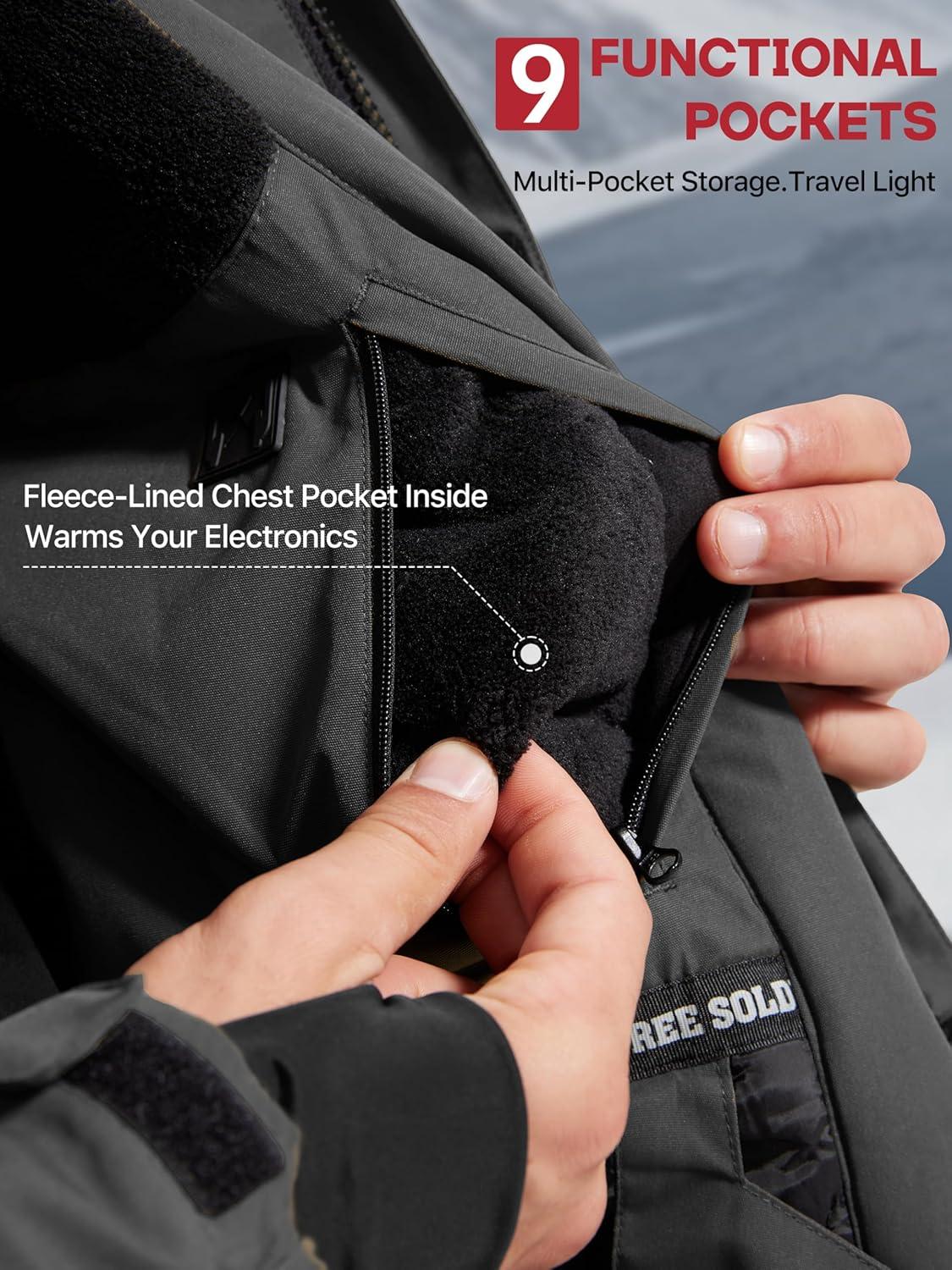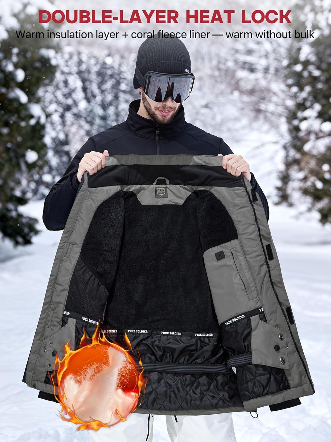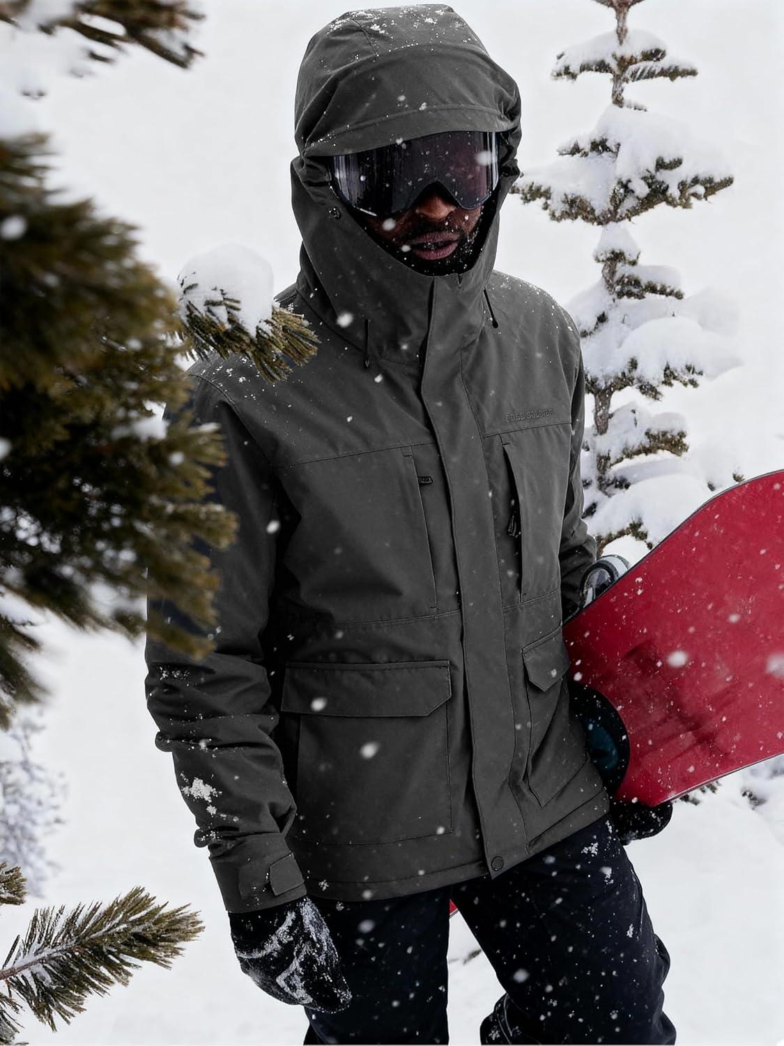 imageFREE SOLDIER Mens Waterproof Ski Jacket Fleece Lined Warm Winter Snow Coat with Hood Fully Taped SeamsBlack
