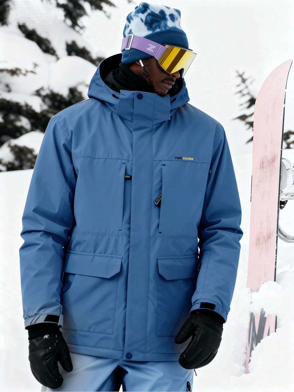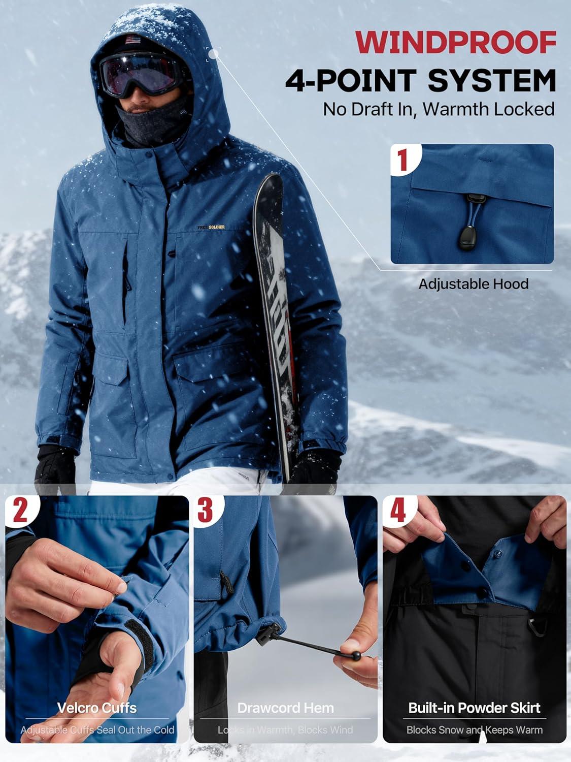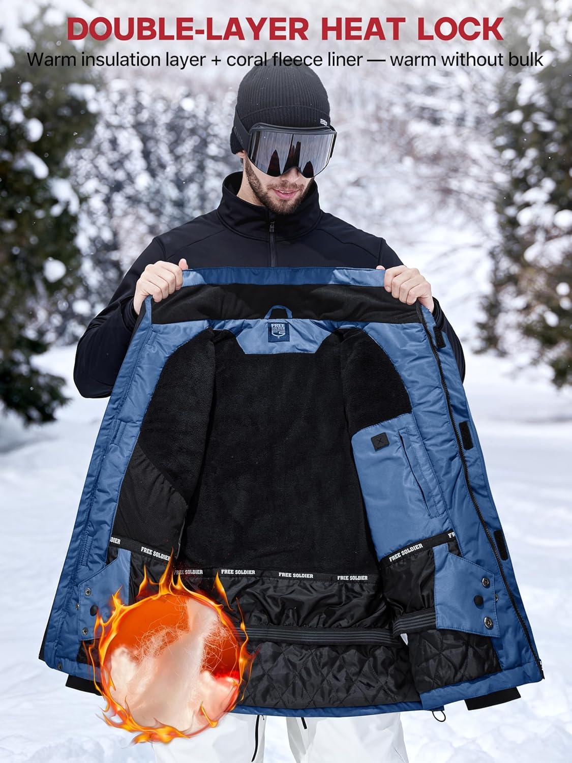 imageFREE SOLDIER Mens Waterproof Ski Jacket Fleece Lined Warm Winter Snow Coat with Hood Fully Taped SeamsIndigo Blue