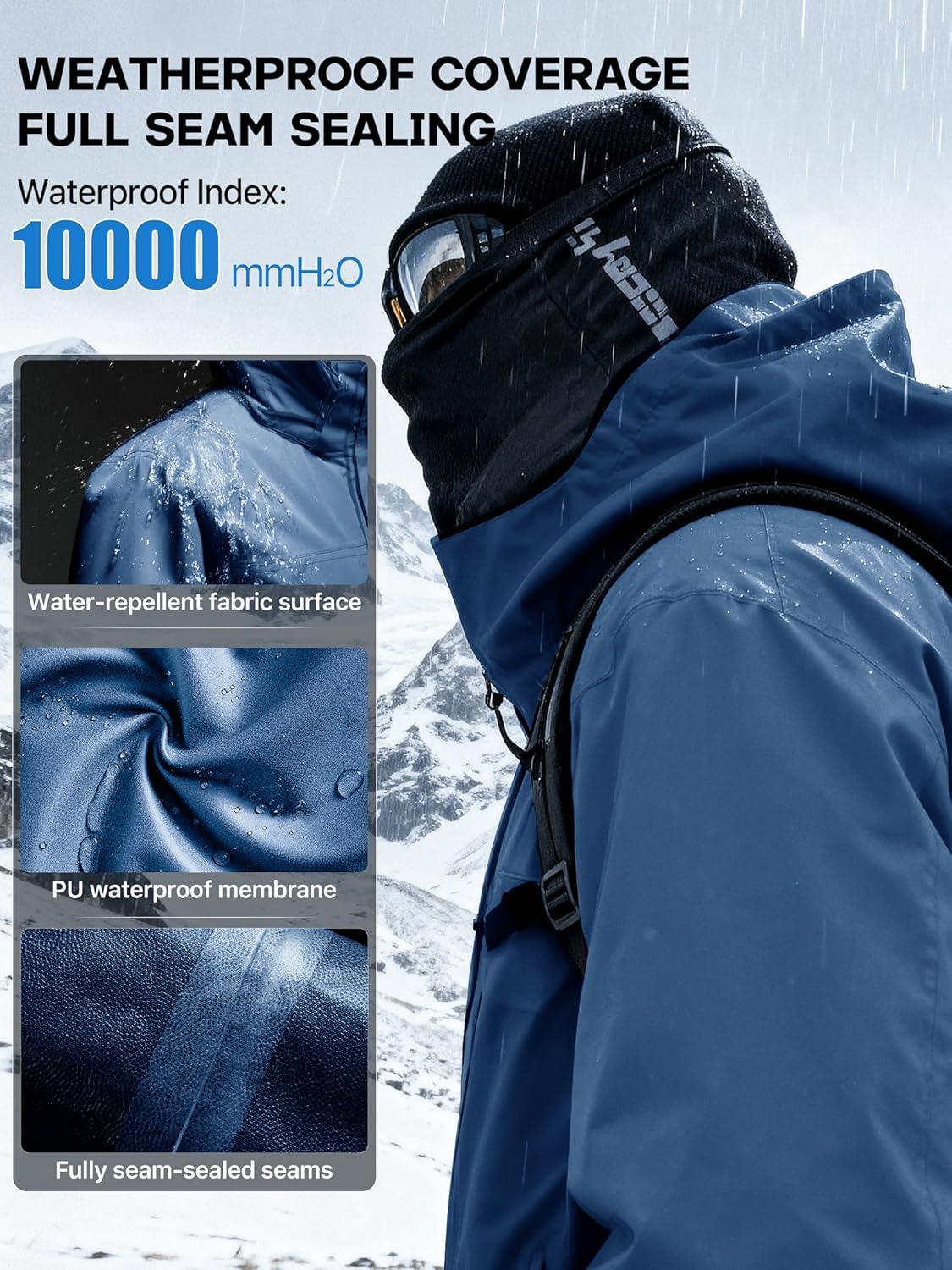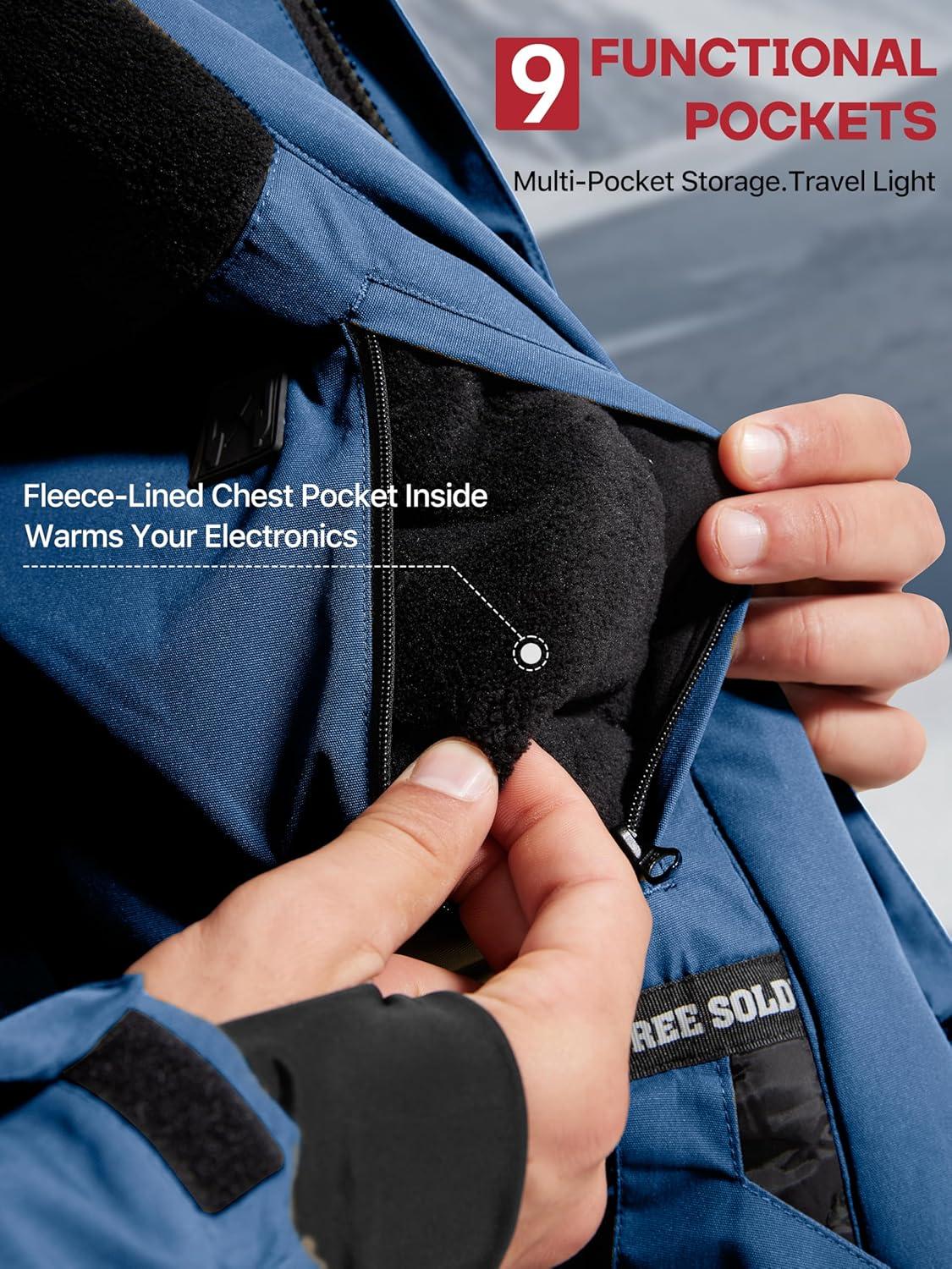 FREE SOLDIER Men’s Waterproof Ski Jacket Fleece Lined Warm Winter Snow Coat with Hood Fully Taped Seams(Indigo Blue)