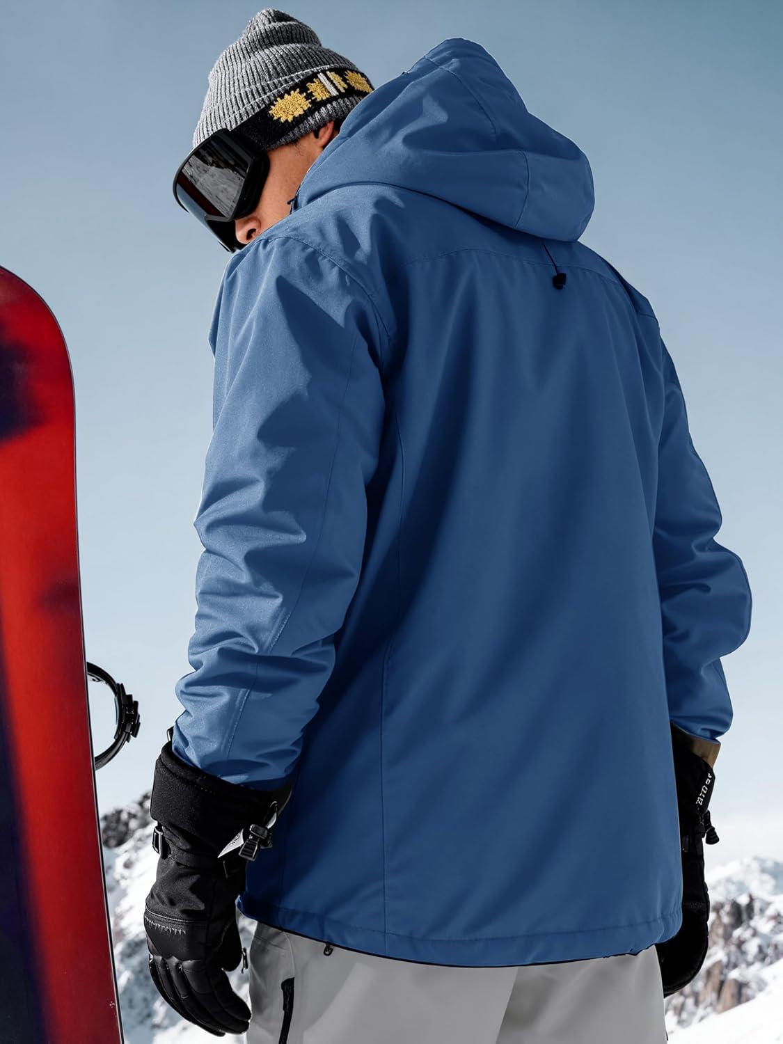 FREE SOLDIER Men's Waterproof Ski Jacket Fleece Lined Warm Winter Snow Coat with Hood Fully Taped Seams(Indigo Blue)