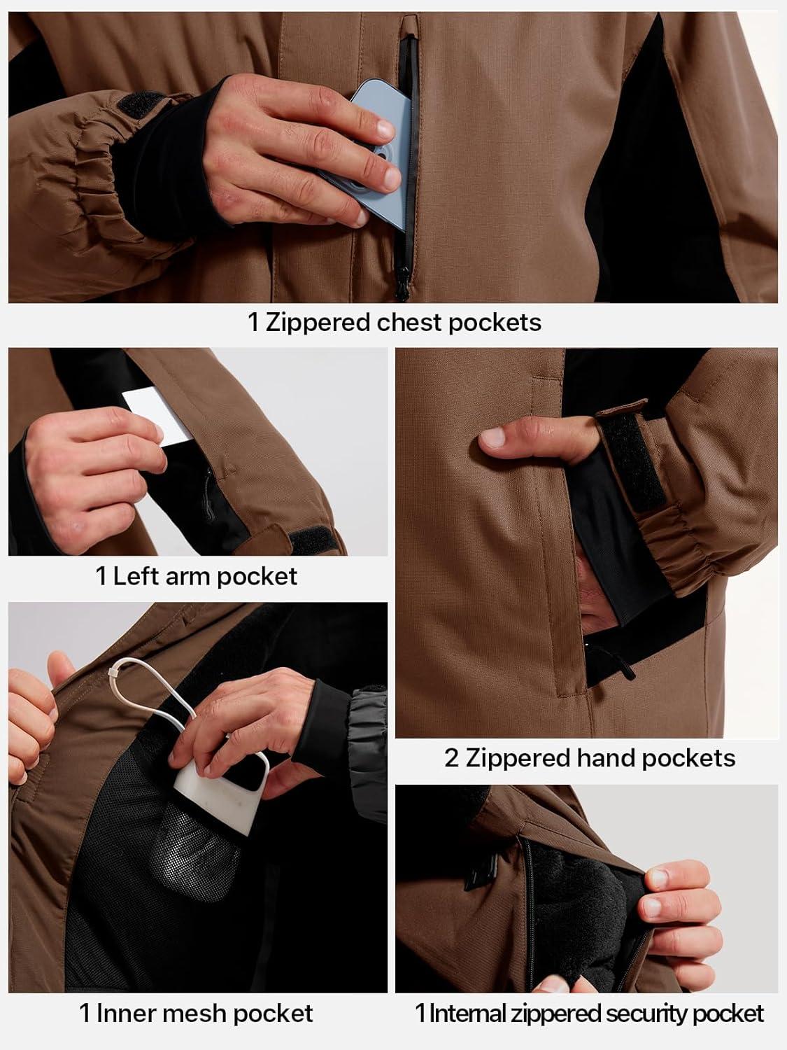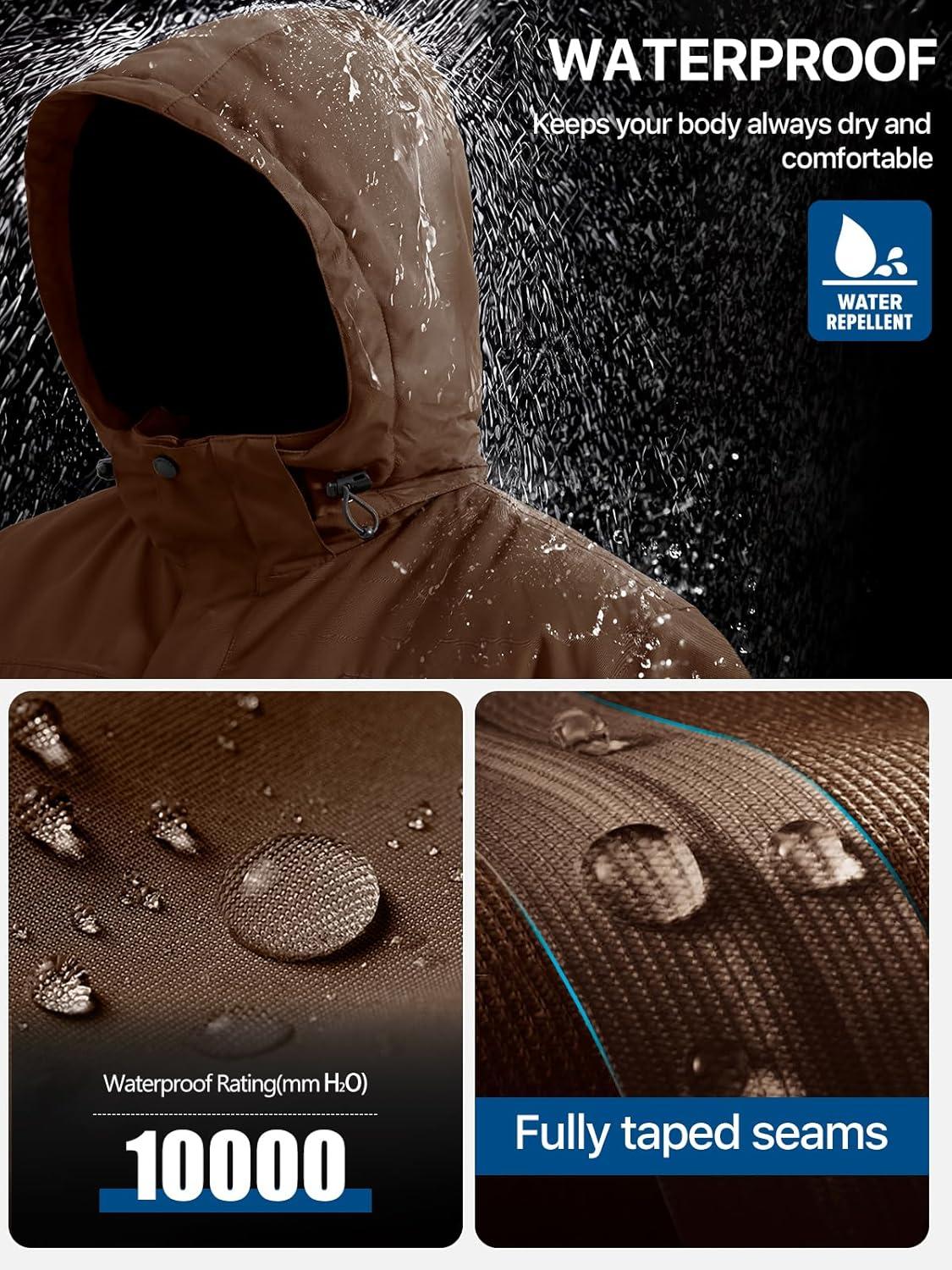 imageFREE SOLDIER Mens Waterproof Ski Jacket Fleece Lined Warm Winter Snow Coat with Hood Fully Taped SeamsNut Brown