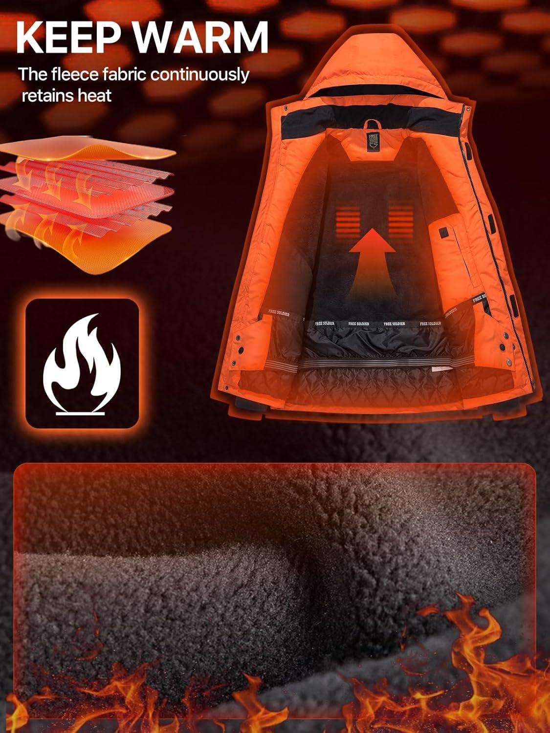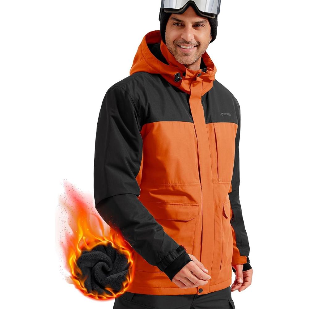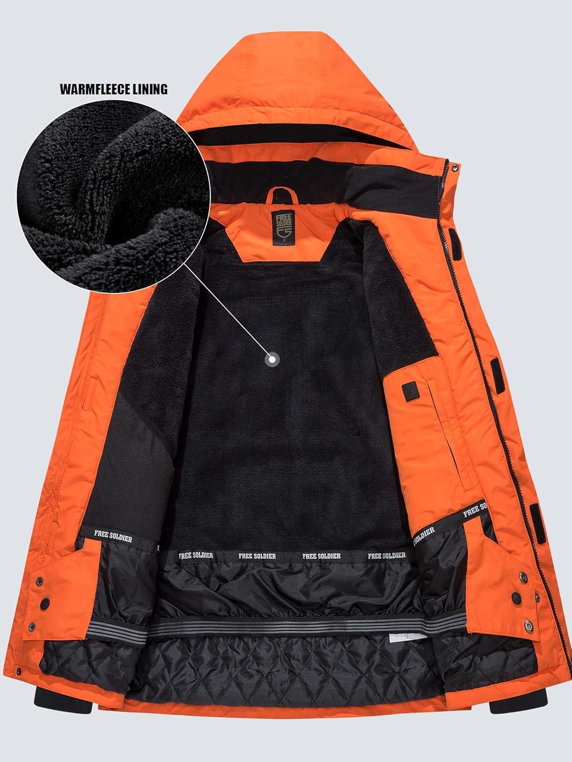 imageFREE SOLDIER Mens Waterproof Ski Jacket Fleece Lined Warm Winter Snow Coat with Hood Fully Taped SeamsOrange