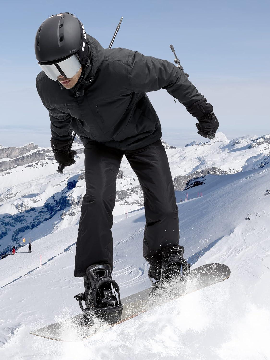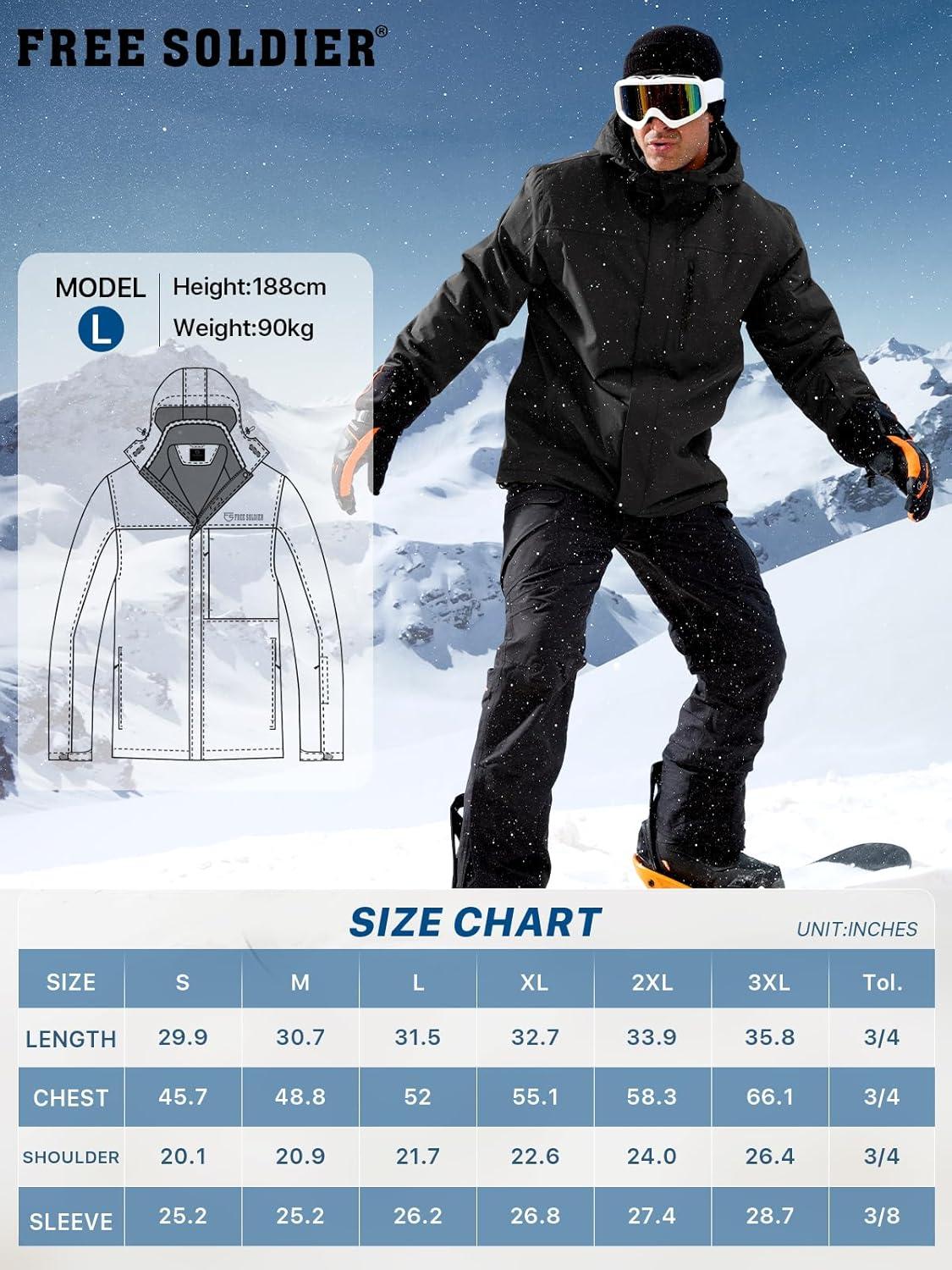 FREE SOLDIER Men’s Waterproof Ski Snow Jacket Fleece Lined Warm Winter Rain Jacket with Hood Fully Taped Seams(Black)