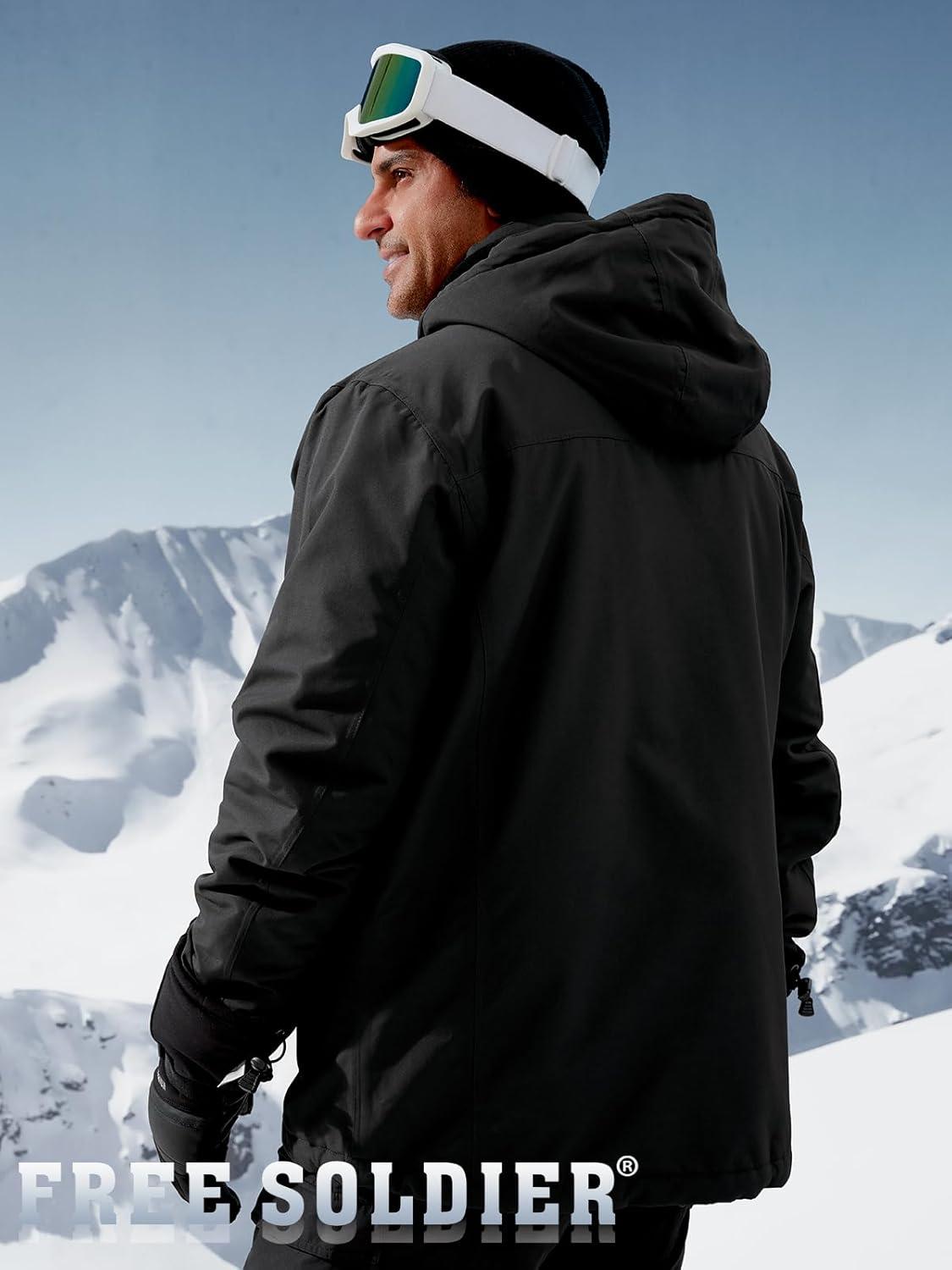 imageFREE SOLDIER Mens Waterproof Ski Snow Jacket Fleece Lined Warm Winter Rain Jacket with Hood Fully Taped SeamsBlack