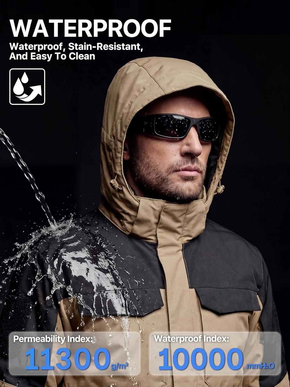 Waterproof Mens Windbreaker: The Teflon triple defence fabric with Durable Water-Repellent (DWR) coating that sheds rain and dries quickly, this waterproof winter jacket will keep you dry and comfortable when you are outside, protects you from rain, snow and misty weather