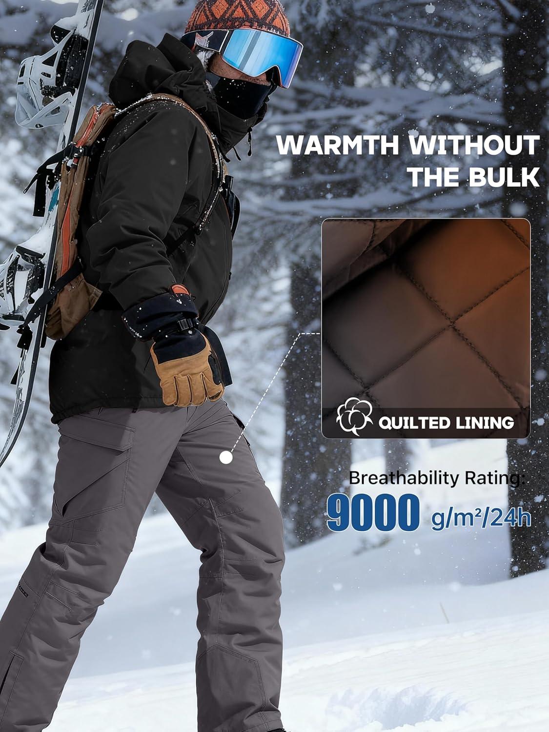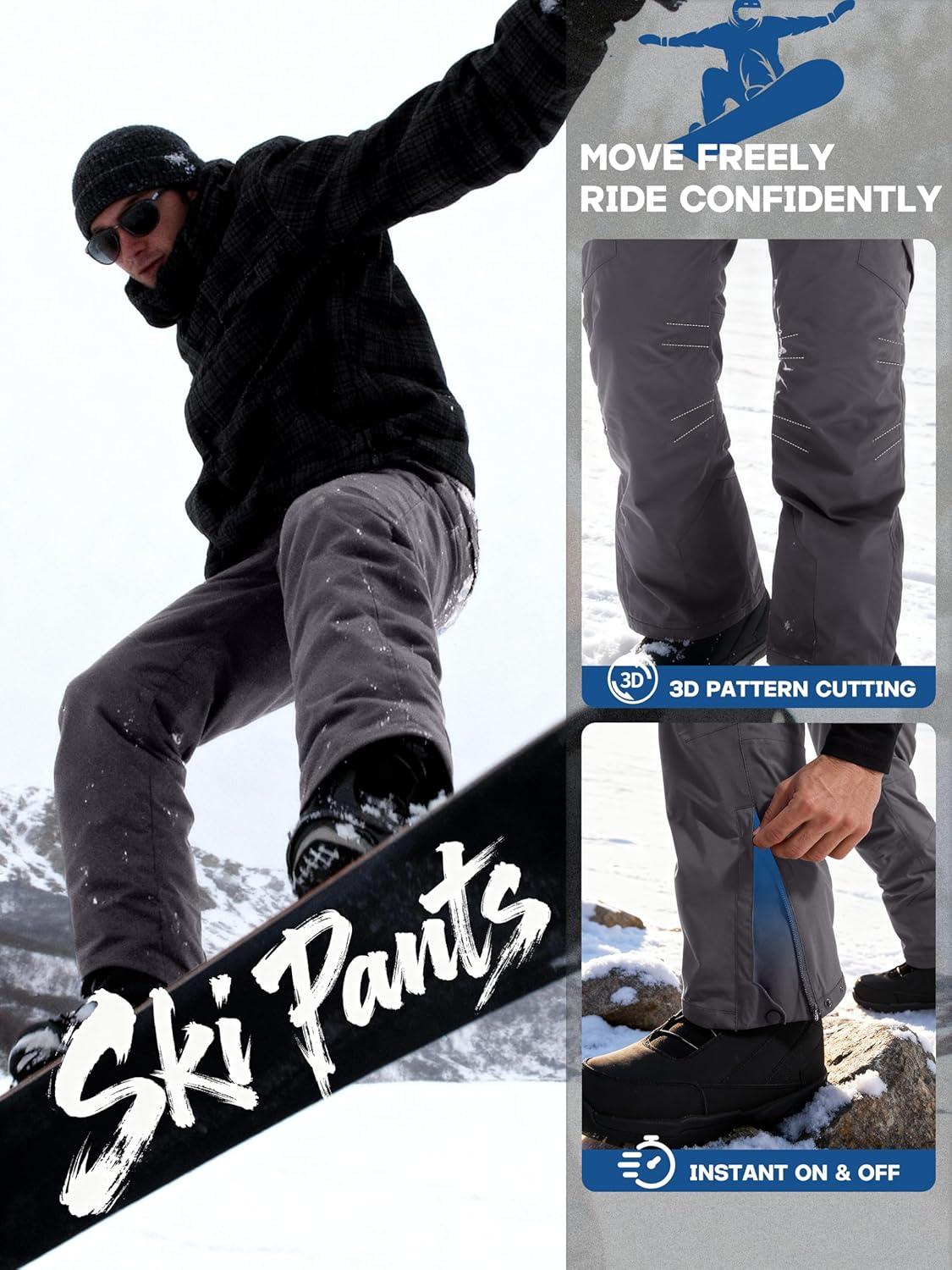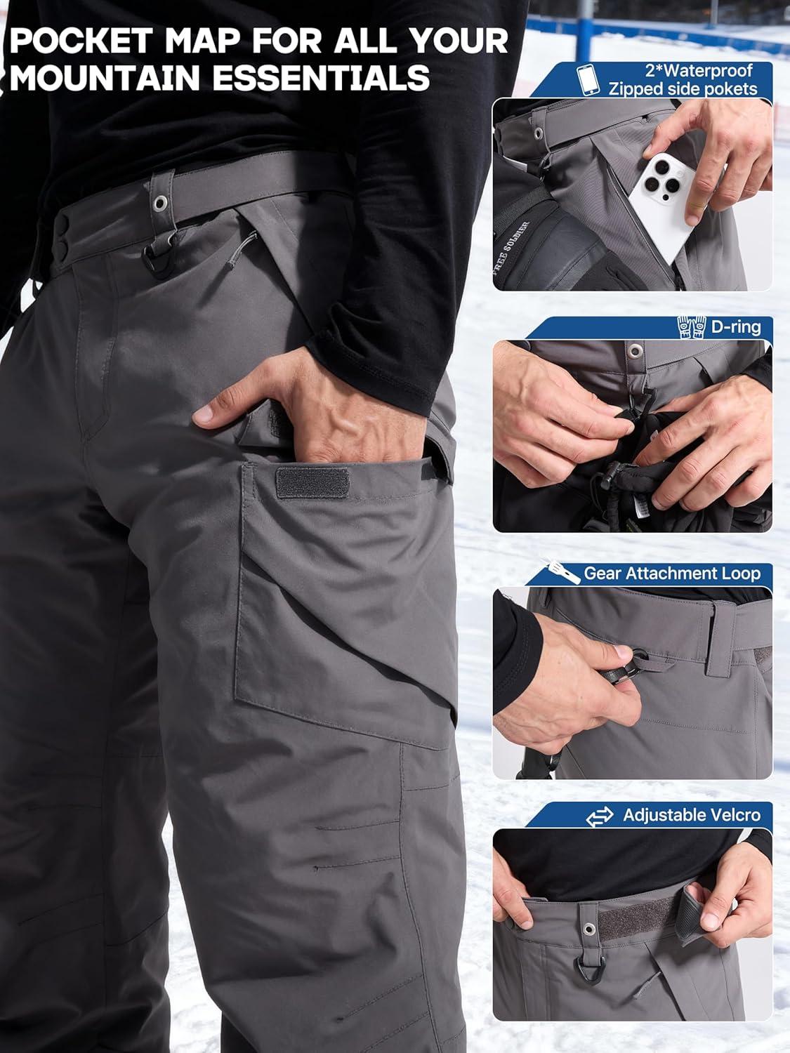FREE SOLDIER Men’s Waterproof Snow Insulated Pants Winter Skiing Snowboarding Pants with Zipper Pockets(Gray)