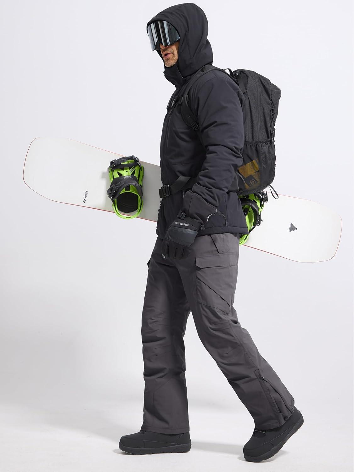 FREE SOLDIER Men’s Waterproof Snow Insulated Pants Winter Skiing Snowboarding Pants with Zipper Pockets(Black)