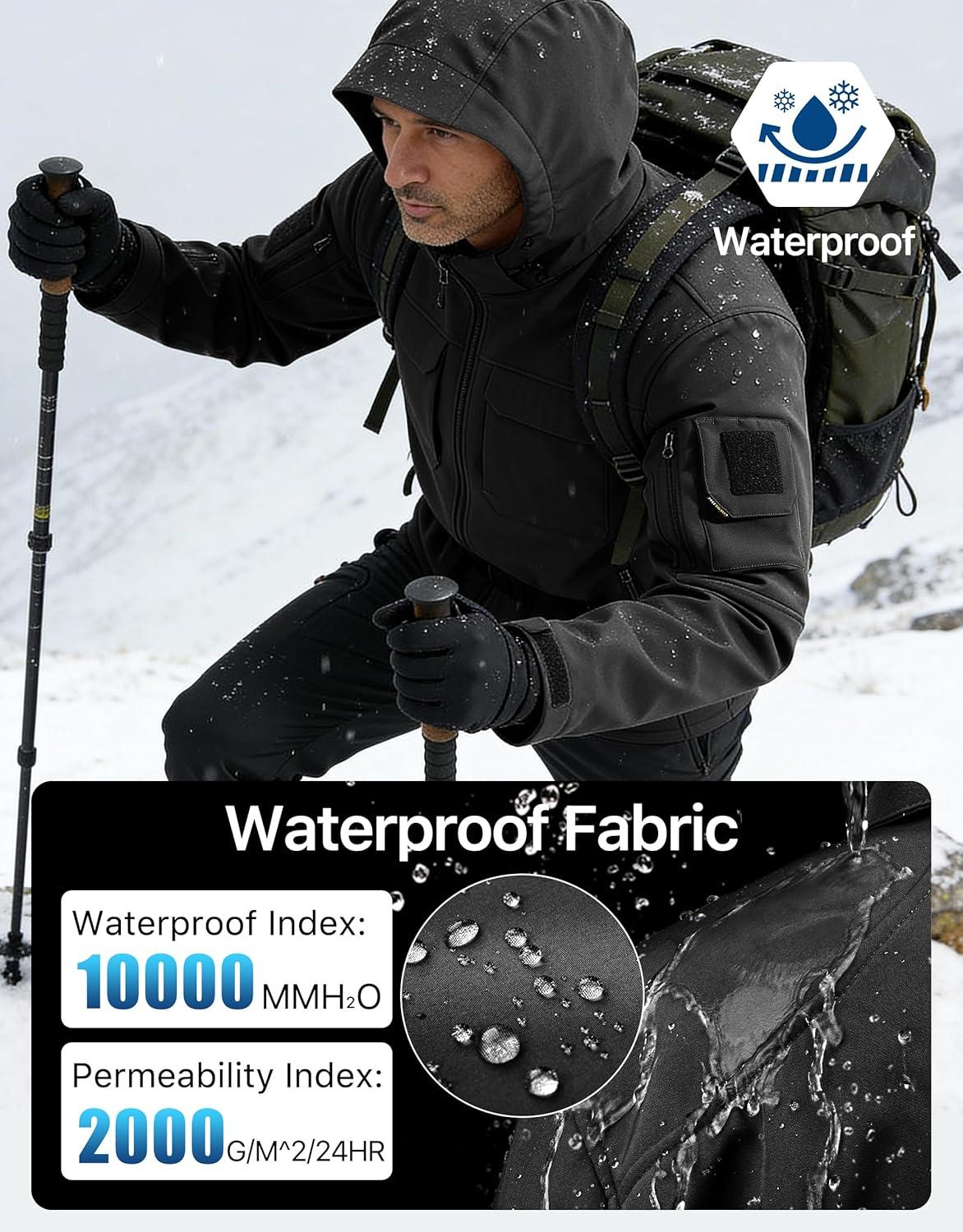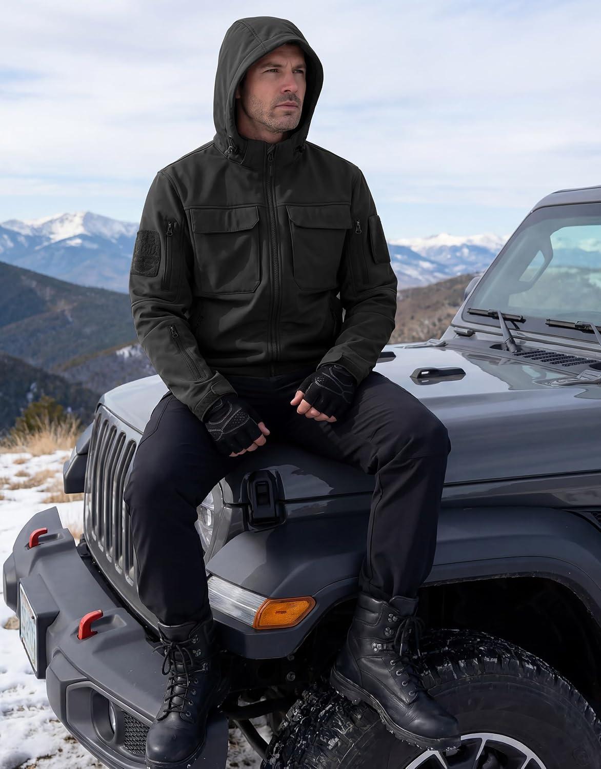 FREE SOLDIER Men’s Waterproof Softshell Jacket Fleece Lined Outdoor Jacket Tactical Military Hoodie Windbreaker(Classic Black)