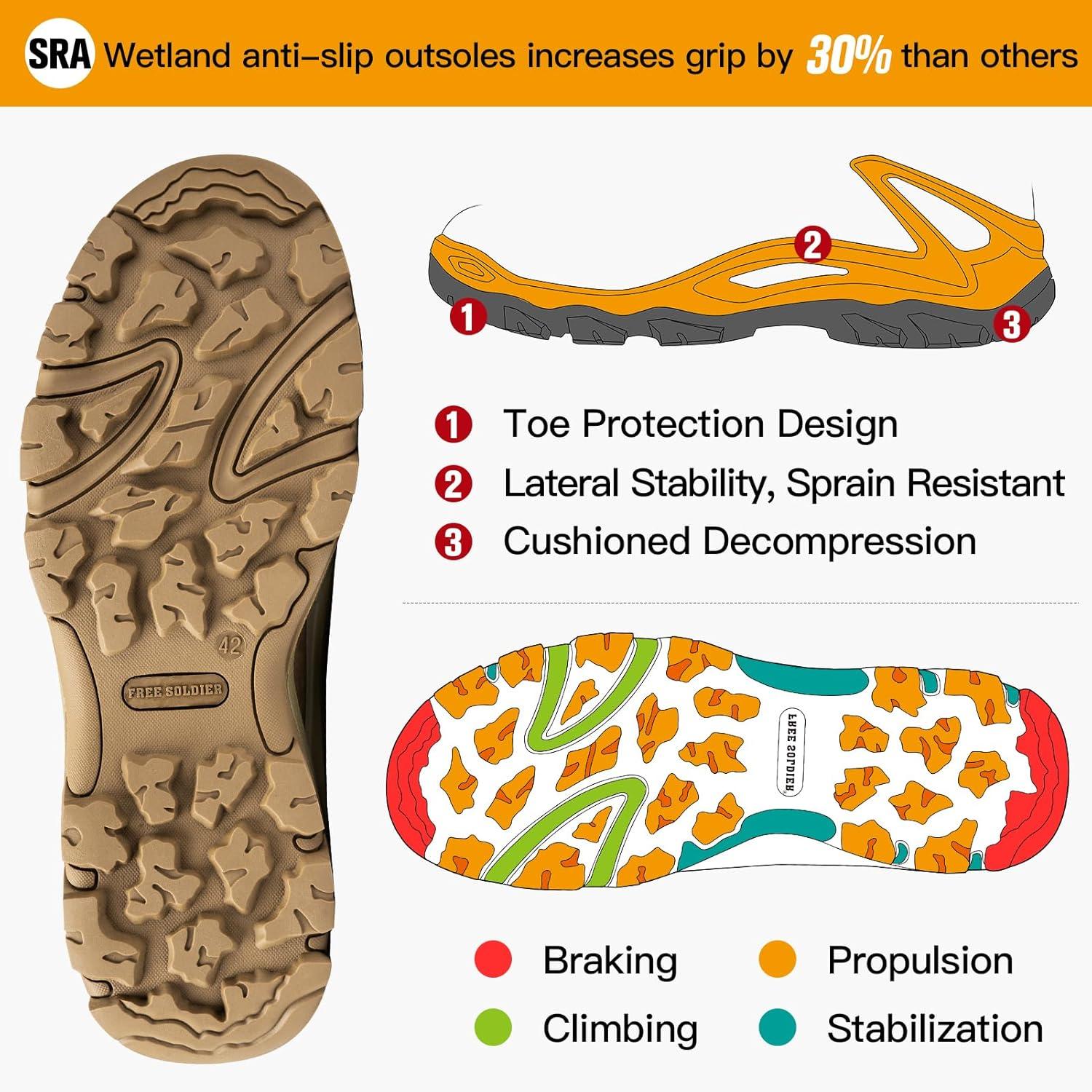 imageFREE SOLDIER Waterproof Hiking Work Boots Mens Tactical Boots 6 Inches Lightweight Military Boots Breathable Desert BootsTan 95W