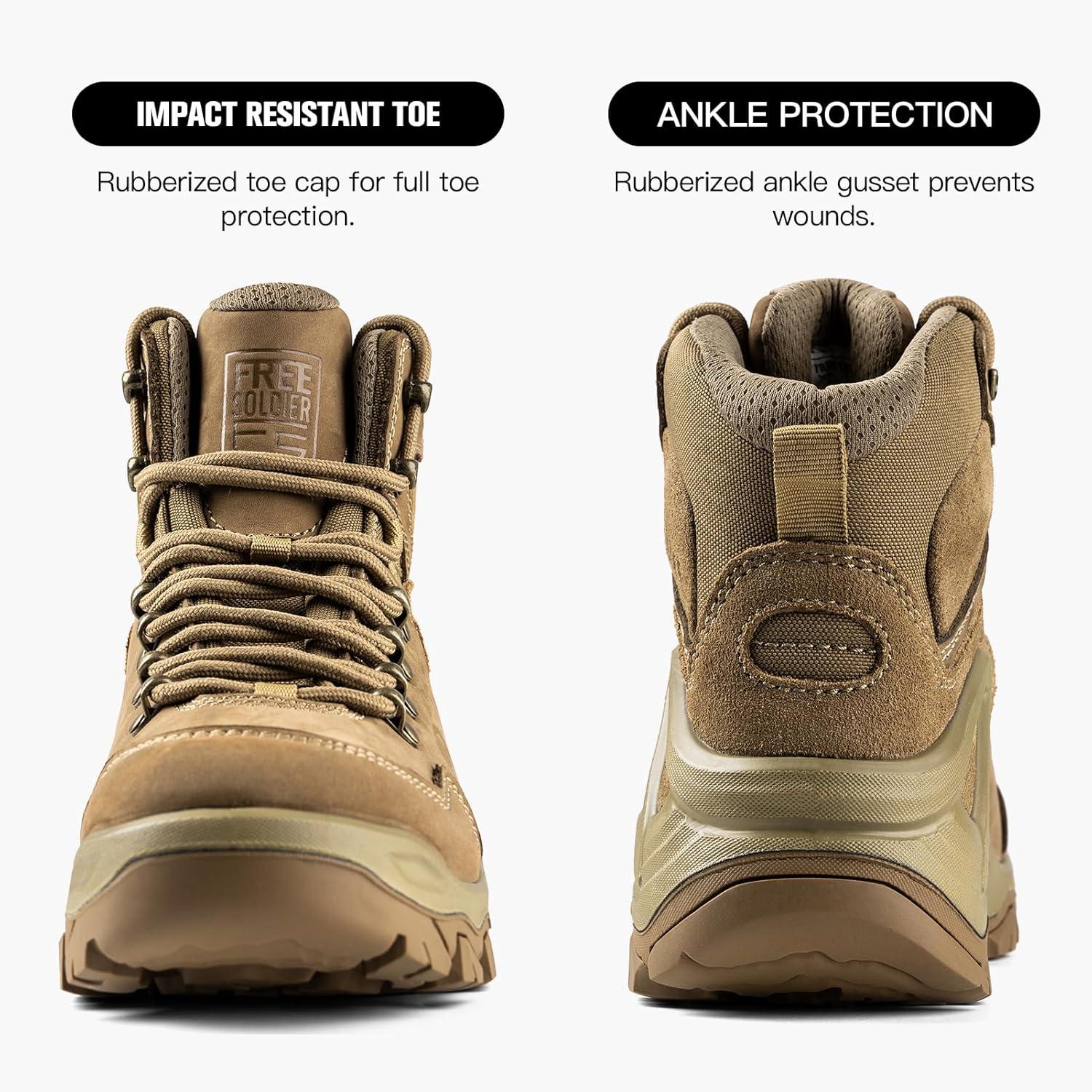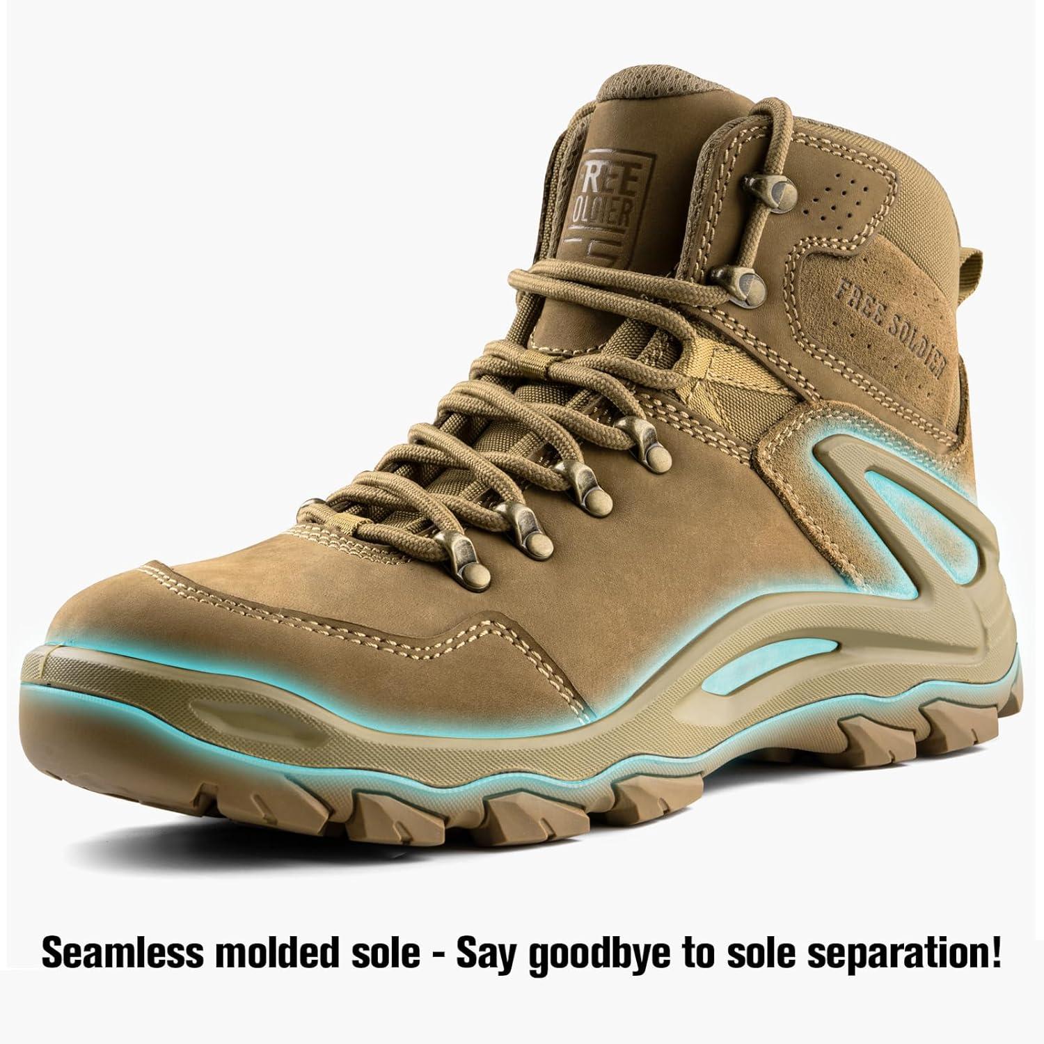 FREE SOLDIER Mens Waterproof Tactical Hiking Boots Combat Work Boots Desert Military Boots(Brown)