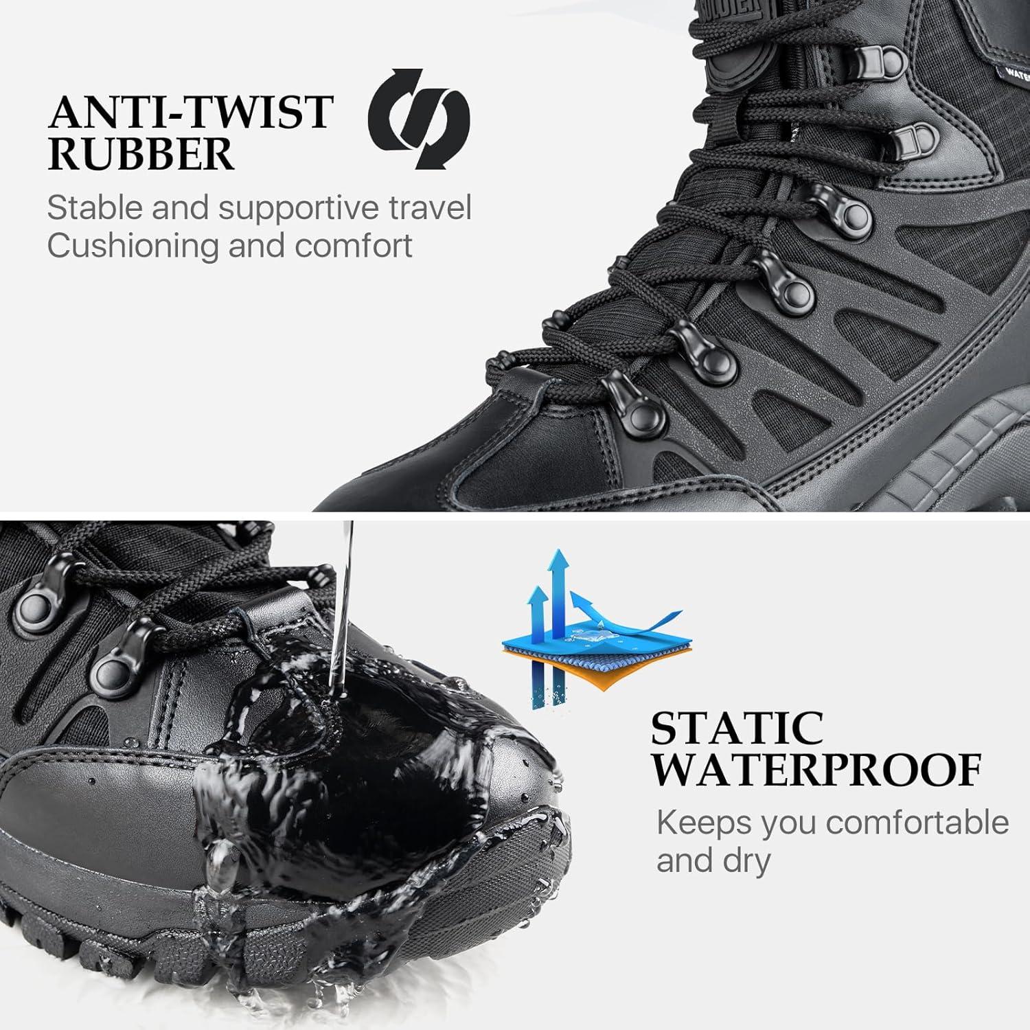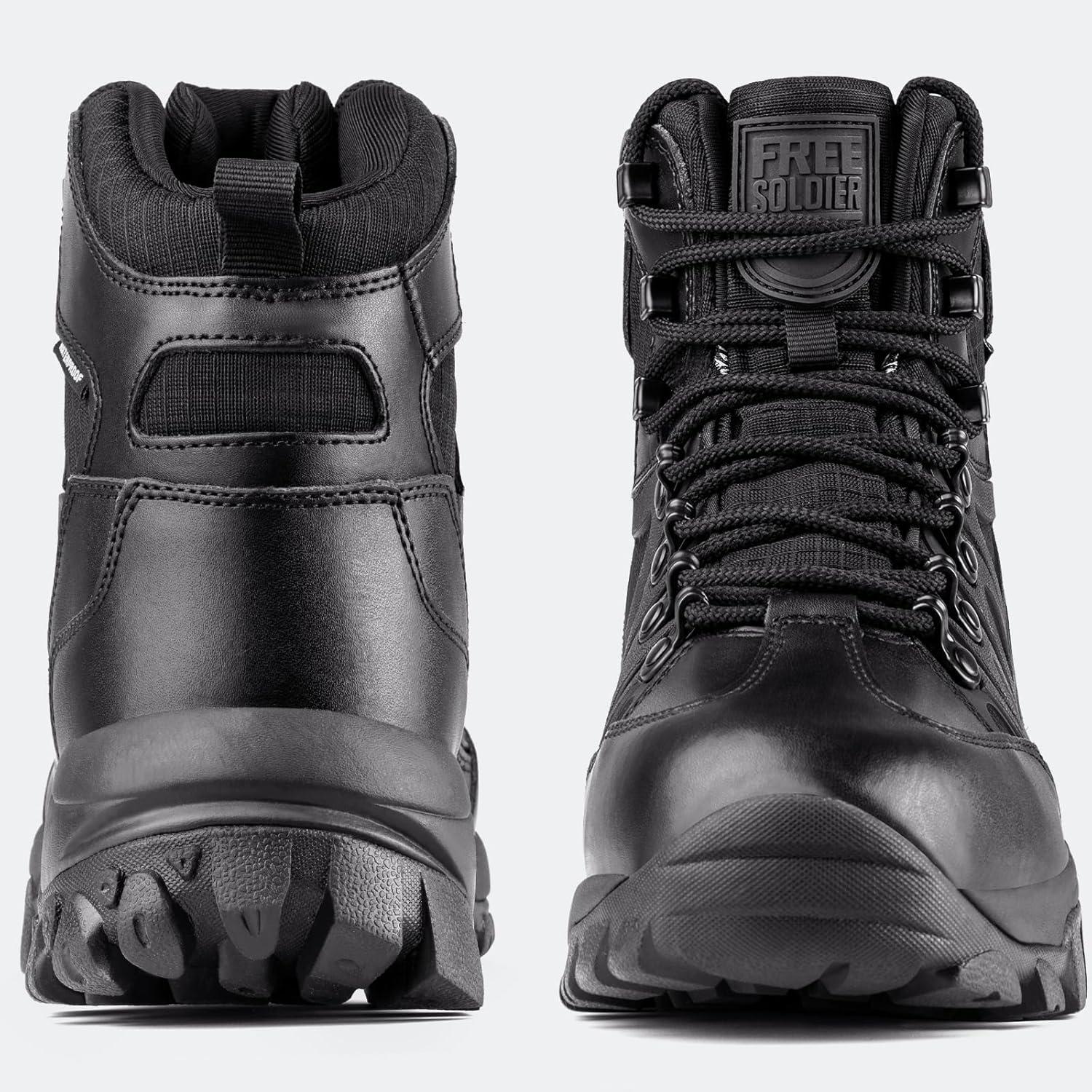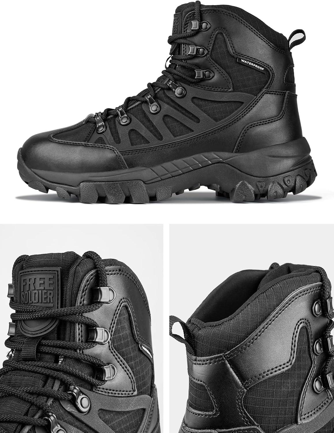 FREE SOLDIER Men's Waterproof Tactical Hiking Boots Military Work Boots Combat Boots(Waterproof Black)
