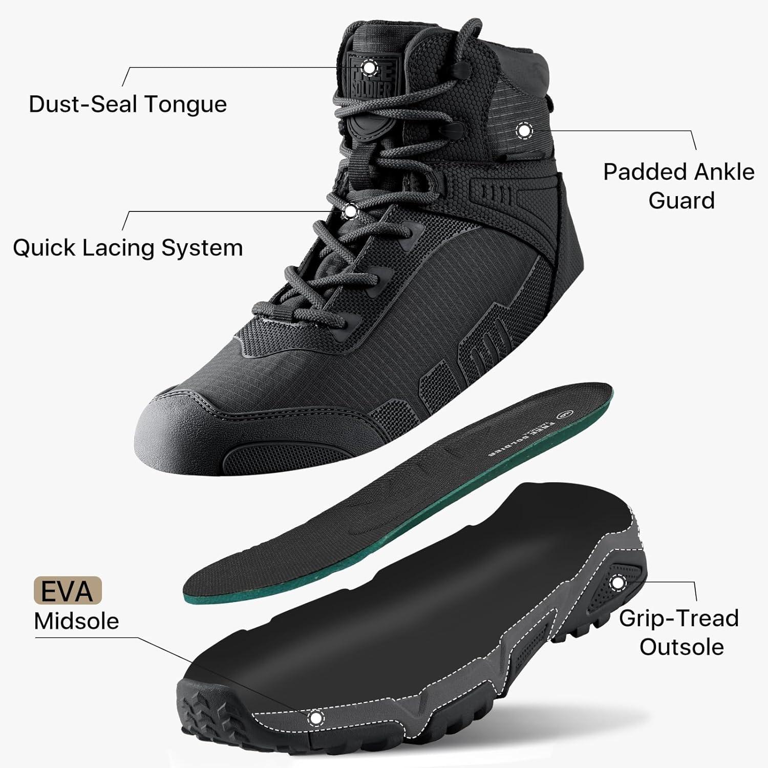 FREE SOLDIER Men’s Waterproof Tactical Work Boots Lightweight Comfortable Combat Hiking Boots(BLACK 10)