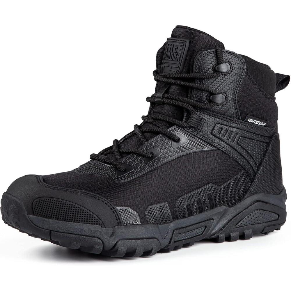 imageFREE SOLDIER Mens Waterproof Tactical Work Boots Lightweight Comfortable Combat Hiking BootsBLACK 10