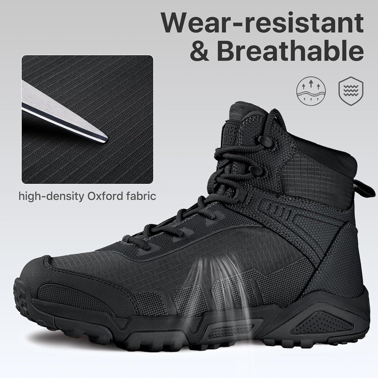 PERFECT INDOOR & OUTDOOR BOOTS FOR MEN – Designed for Spring Summer Autumn and Winter, offers all day comfort for outdoor activities and daily life. Ultralight style of combat boots men, also can be wore as hiking shoes men, winter work boots, motorcycle boots, army boots, duty boots, airsoft boots, interceptor boots, security boots, police boots, etc