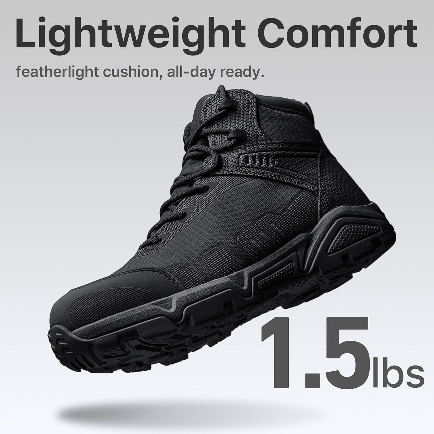 LIGHTWEIGHT & FIT – This waterproof tactical boots made with US size, which including medium size and wide size, fit !!! If you are hesitate to choose size, please confirm your feet length with our size chart. This waterproof boots for men weigh about 2.72 lb, super lightweight mens work boots. Won’t feel fatigue when wearing this hiking shoes, tactical shoes, waterproof shoes