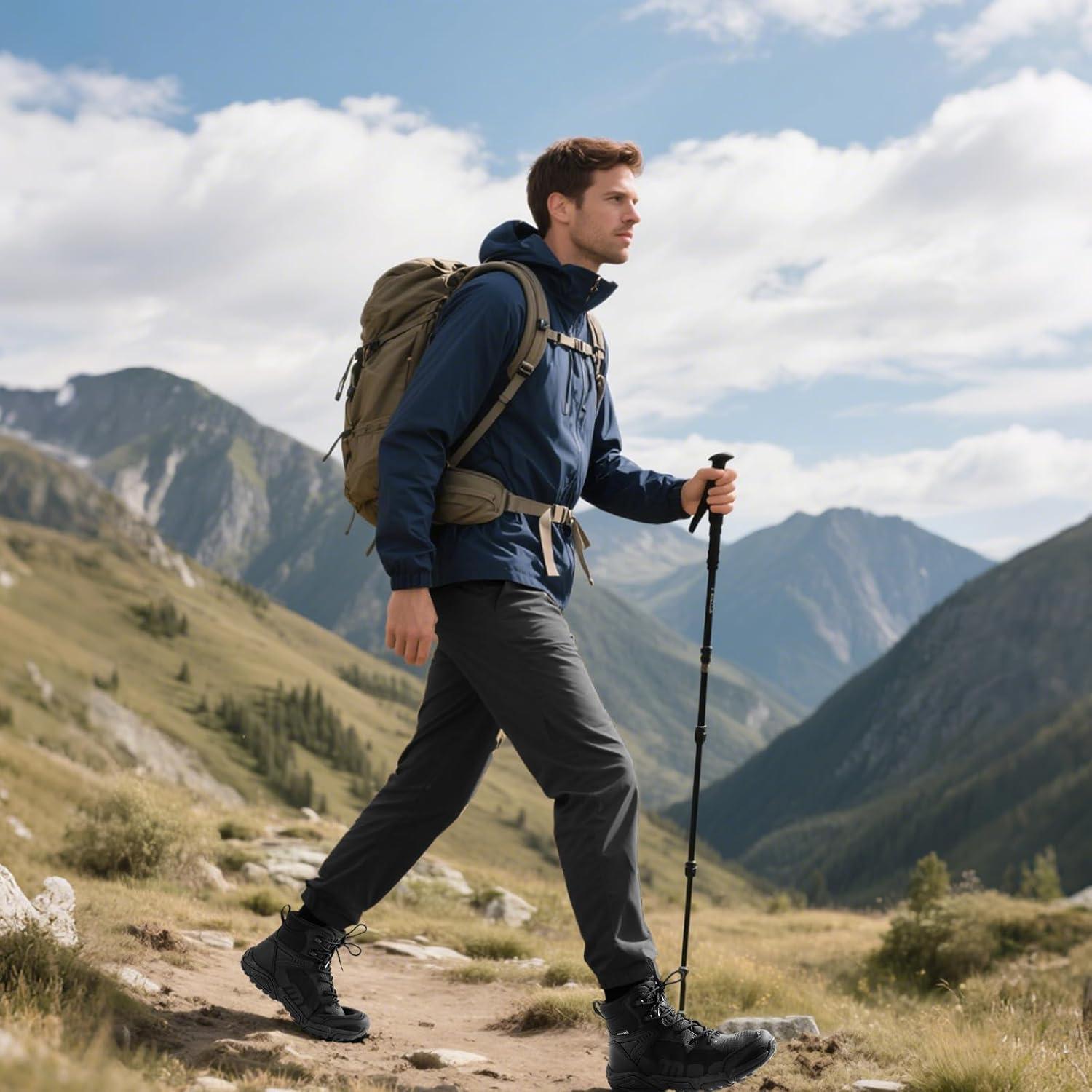 PROTECTIVE & DURABLE- This mens hiking boots upper made of plaid fabric, which is durable and anti-puncture. Body part made of TPU material, which is wear-resistant. EVA midsole, lightweight and flexible, supply excellent cushioning for work or hiking. All terrain outsole, great grip with geometrical pattern design, non-slip work boots for men. Strengthened toe cap and heel provide full protection, anti-collision and ankle support. Suit for tactical, military, combat, hunting boots