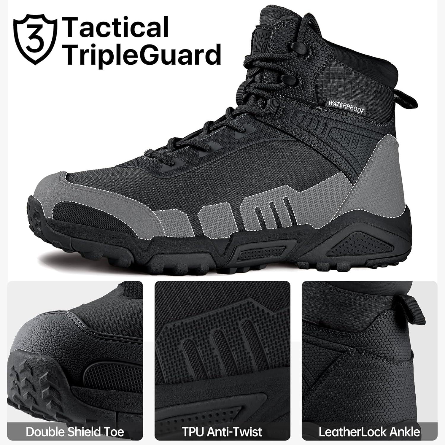 FREE SOLDIER Men’s Waterproof Tactical Work Boots Lightweight Comfortable Combat Hiking Boots(Classic Black)