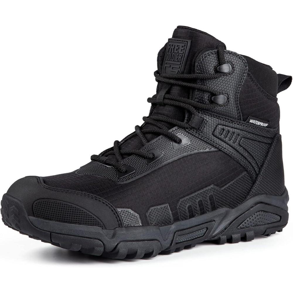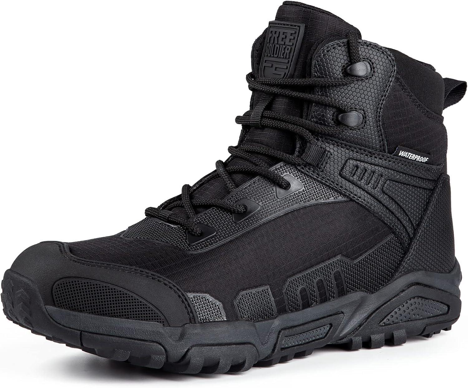 imageFREE SOLDIER Mens Waterproof Tactical Work Boots Lightweight Comfortable Combat Hiking BootsWaterproof Black