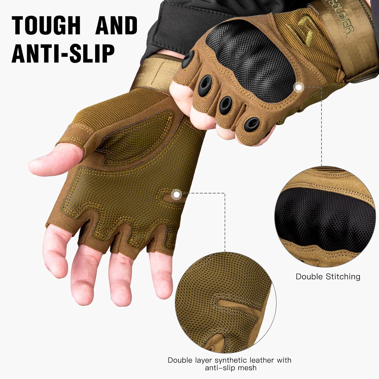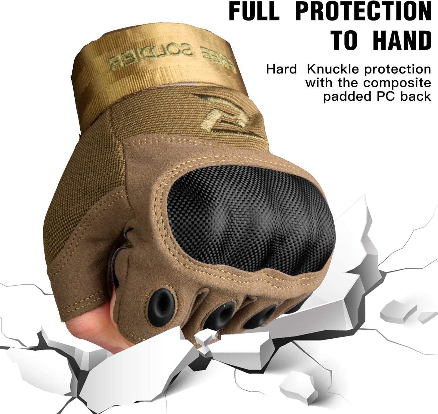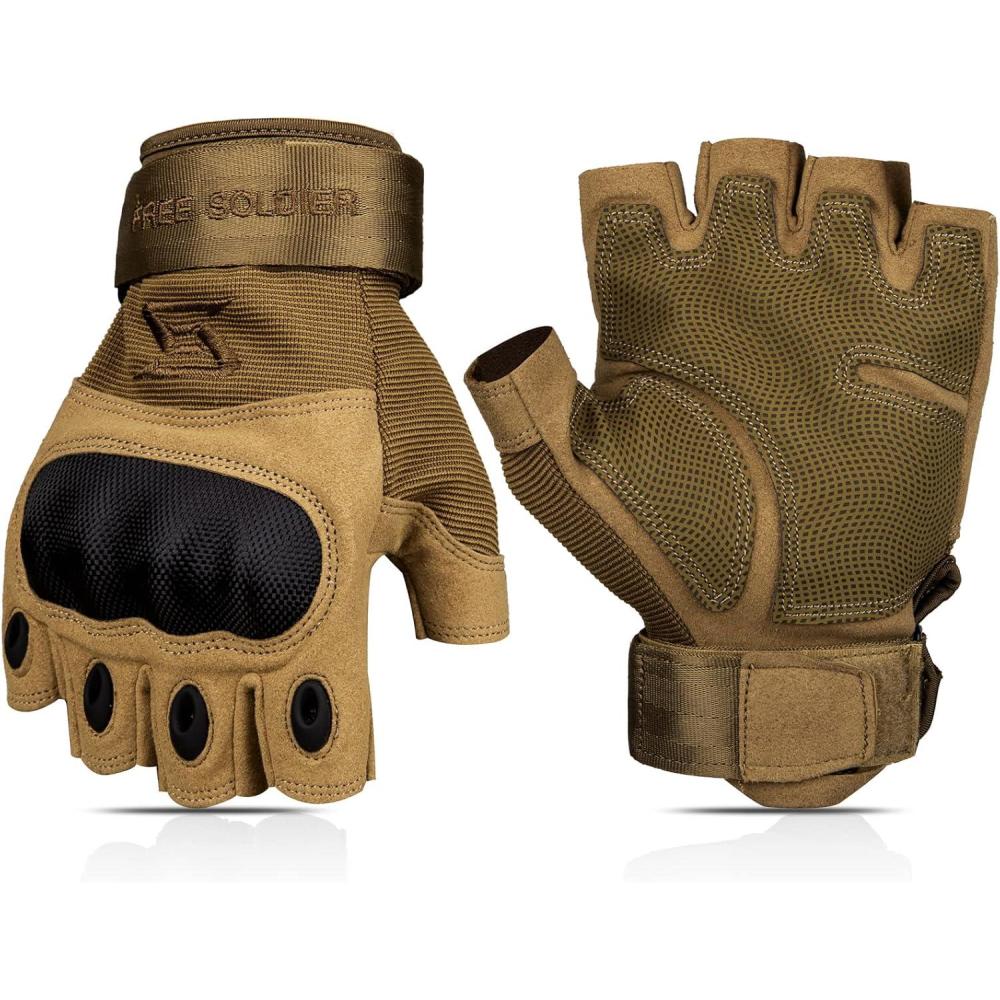 imageFREE SOLDIER Outdoor Gloves for Men Fingerless Motorcycle Gloves for Cycling Hiking Camping Climbing Airsoft Gloves for PaintballHalf Finger Sand