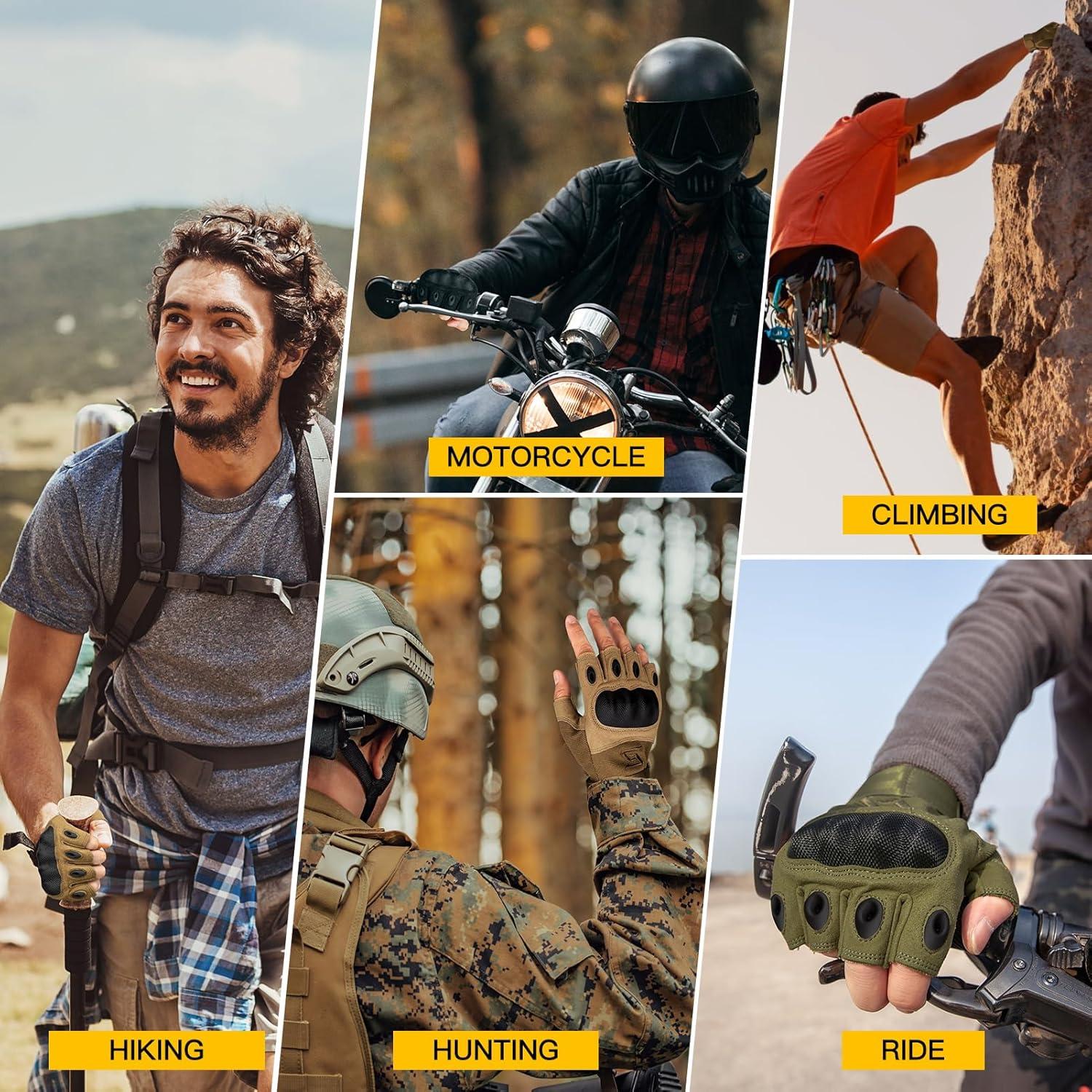 FREE SOLDIER Outdoor Gloves for Men, Fingerless Motorcycle Gloves for Cycling Hiking Camping Climbing, Airsoft Gloves for Paintball(Half Finger Sand)