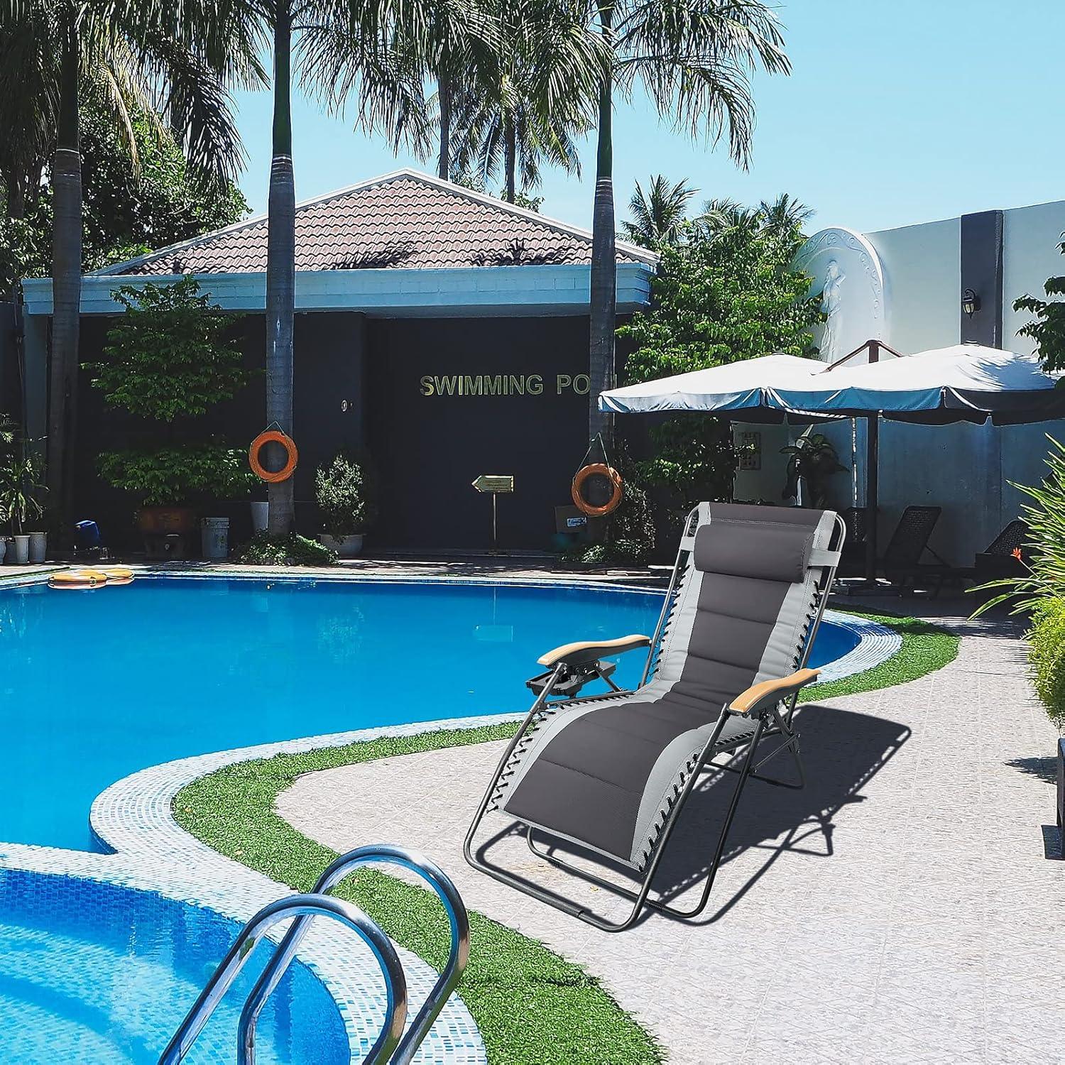 FREE SOLDIER Oversized XL Padded Adjustable Reclining Folding Chair with Cup Holder 400lb Capacity Gravity Chairs Anti Gravity Chairs Zero Gravity Chairs (Gray)