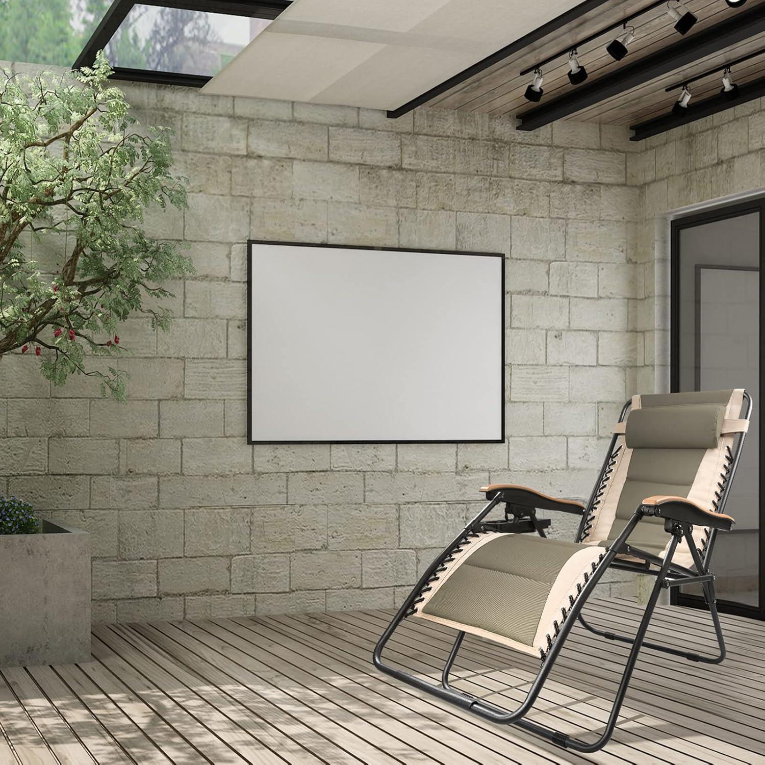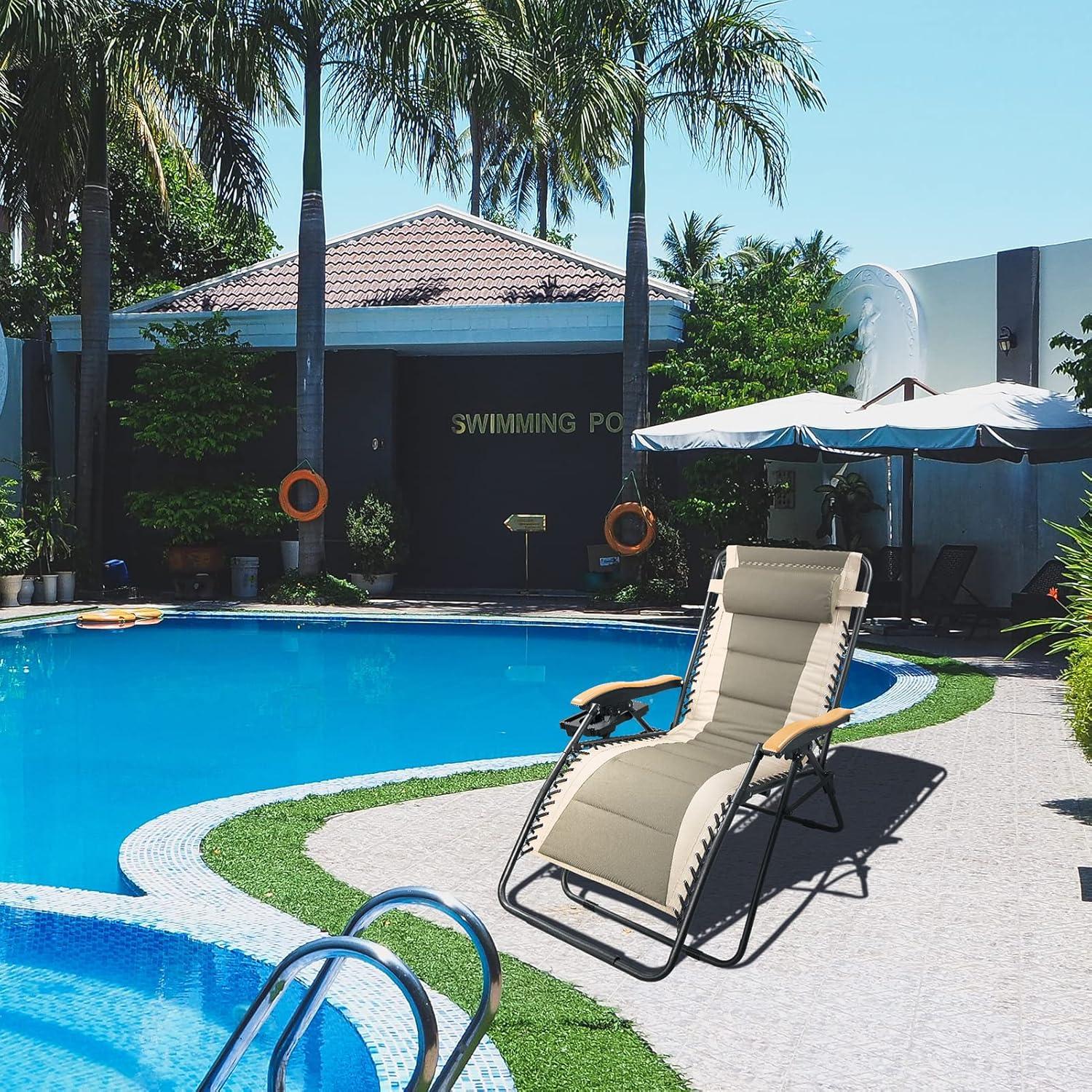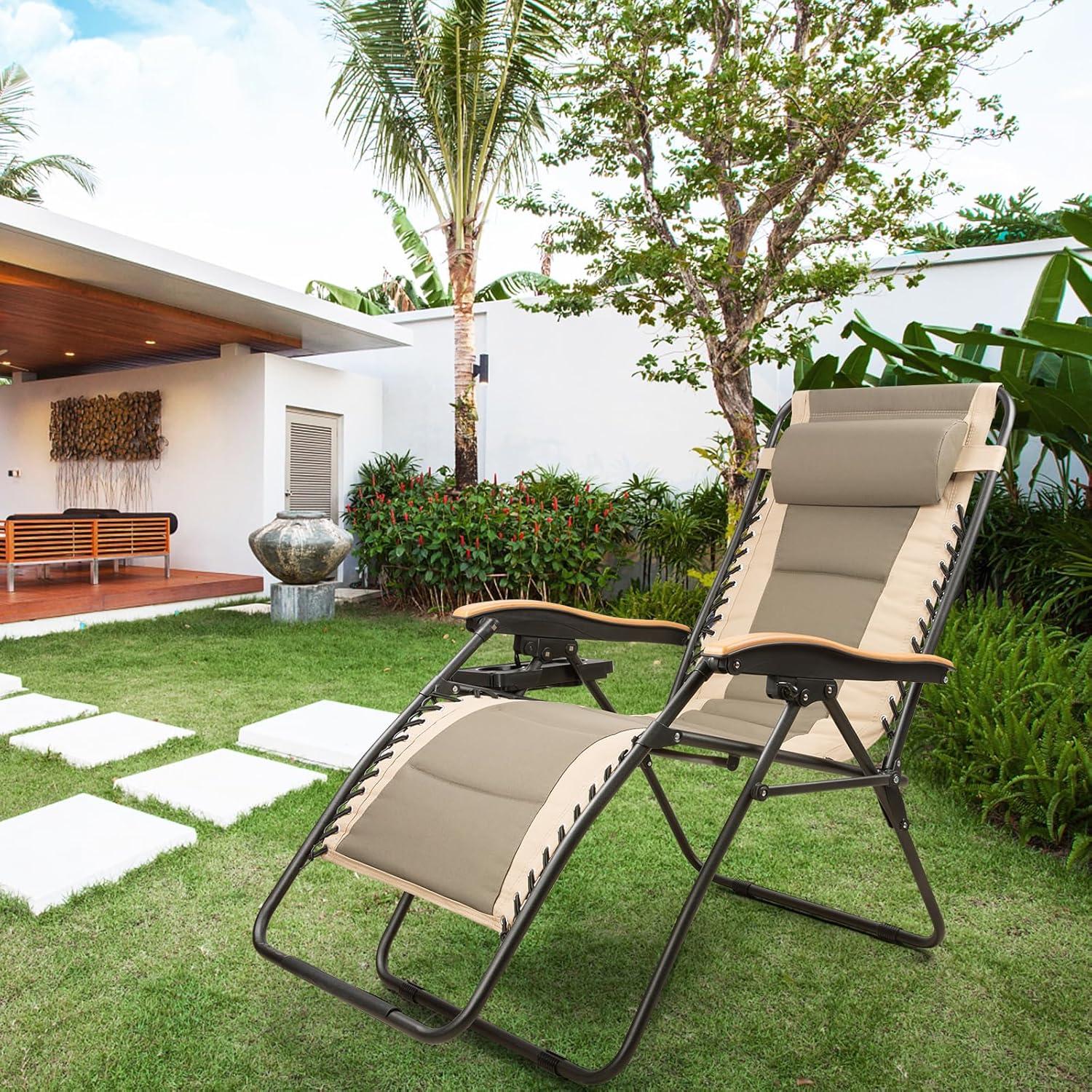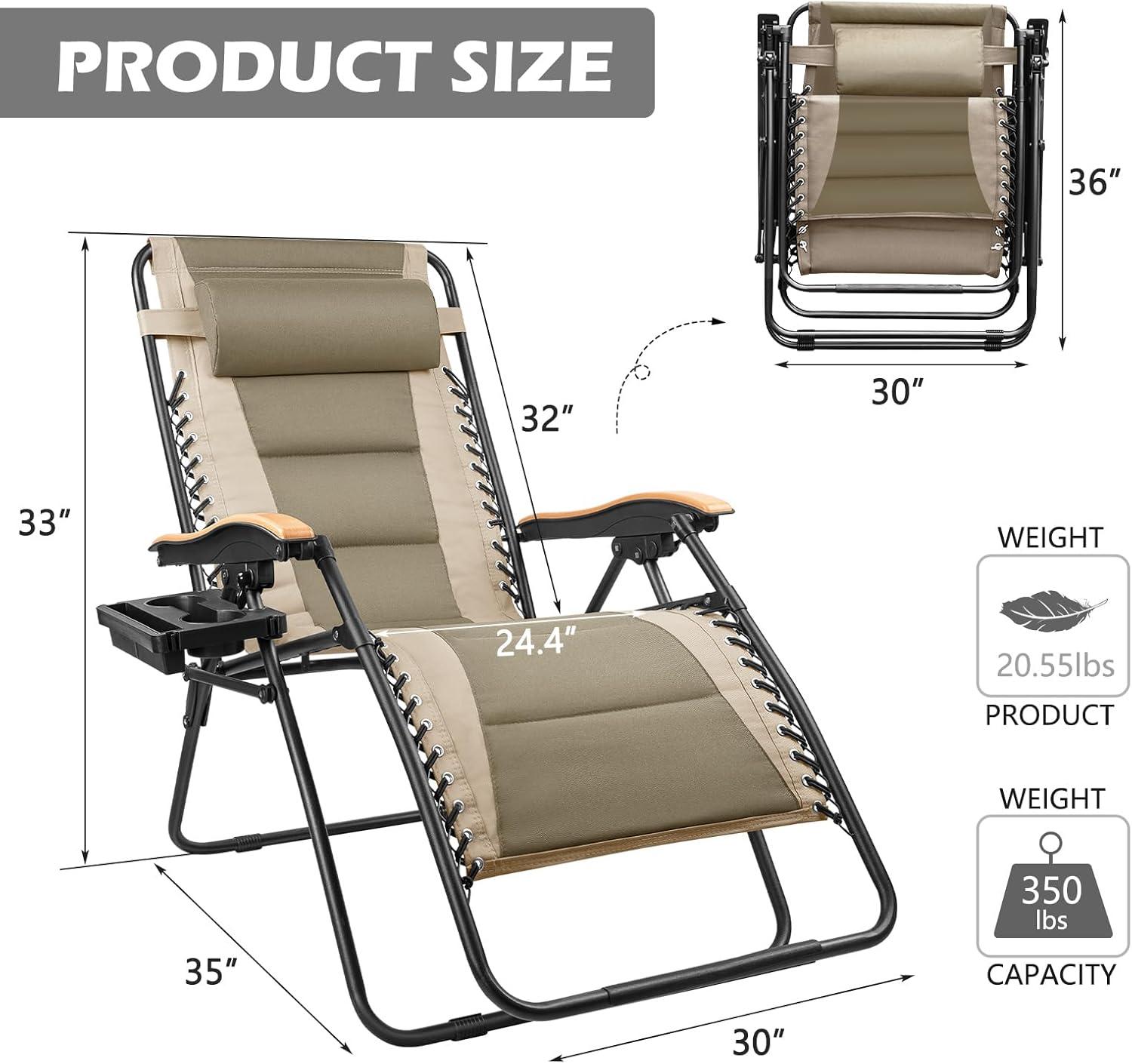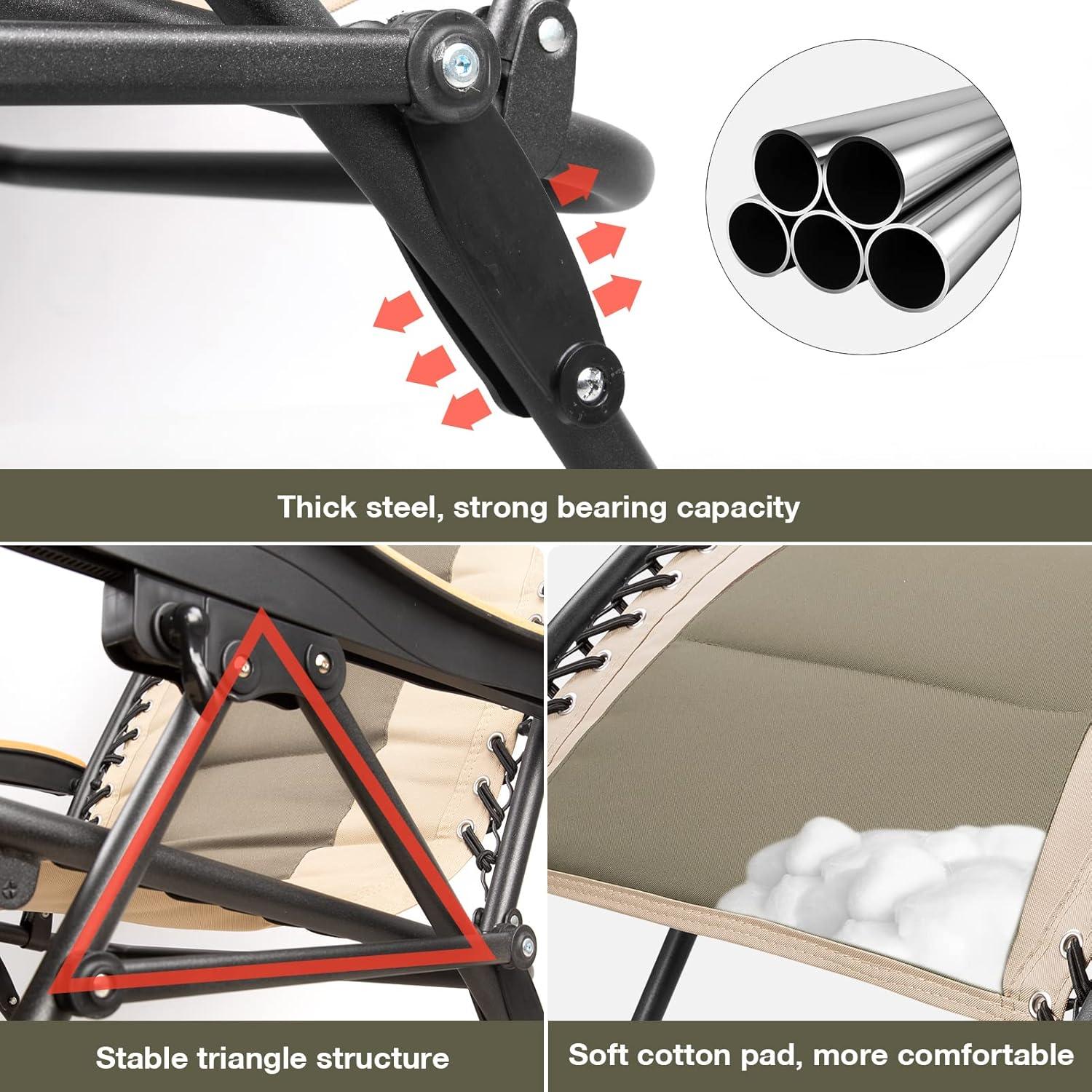 FREE SOLDIER Oversized XL Padded Adjustable Reclining Folding Chair with Cup Holder 400lb Capacity Gravity Chairs Anti Gravity Chairs Zero Gravity Chairs (Khaki)
