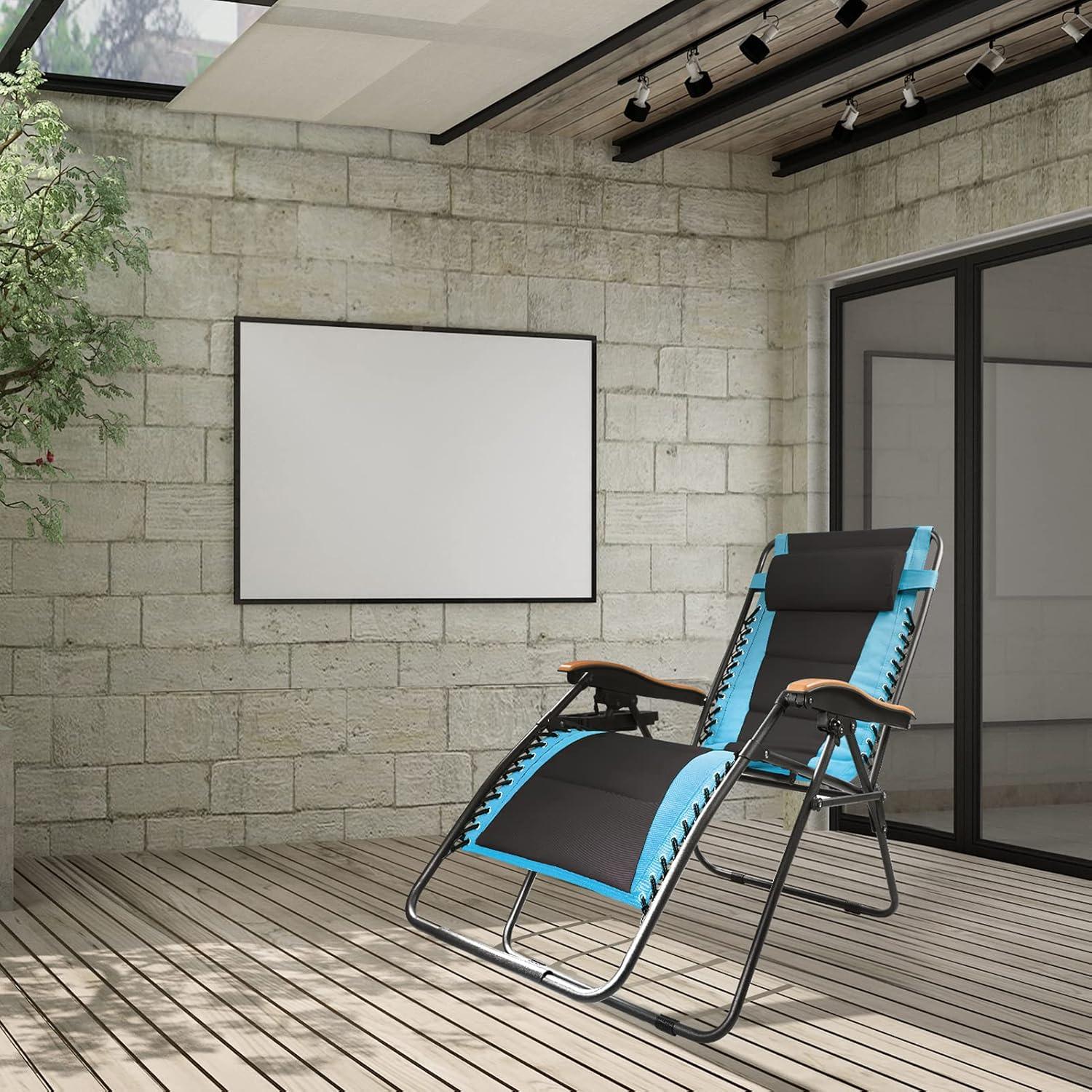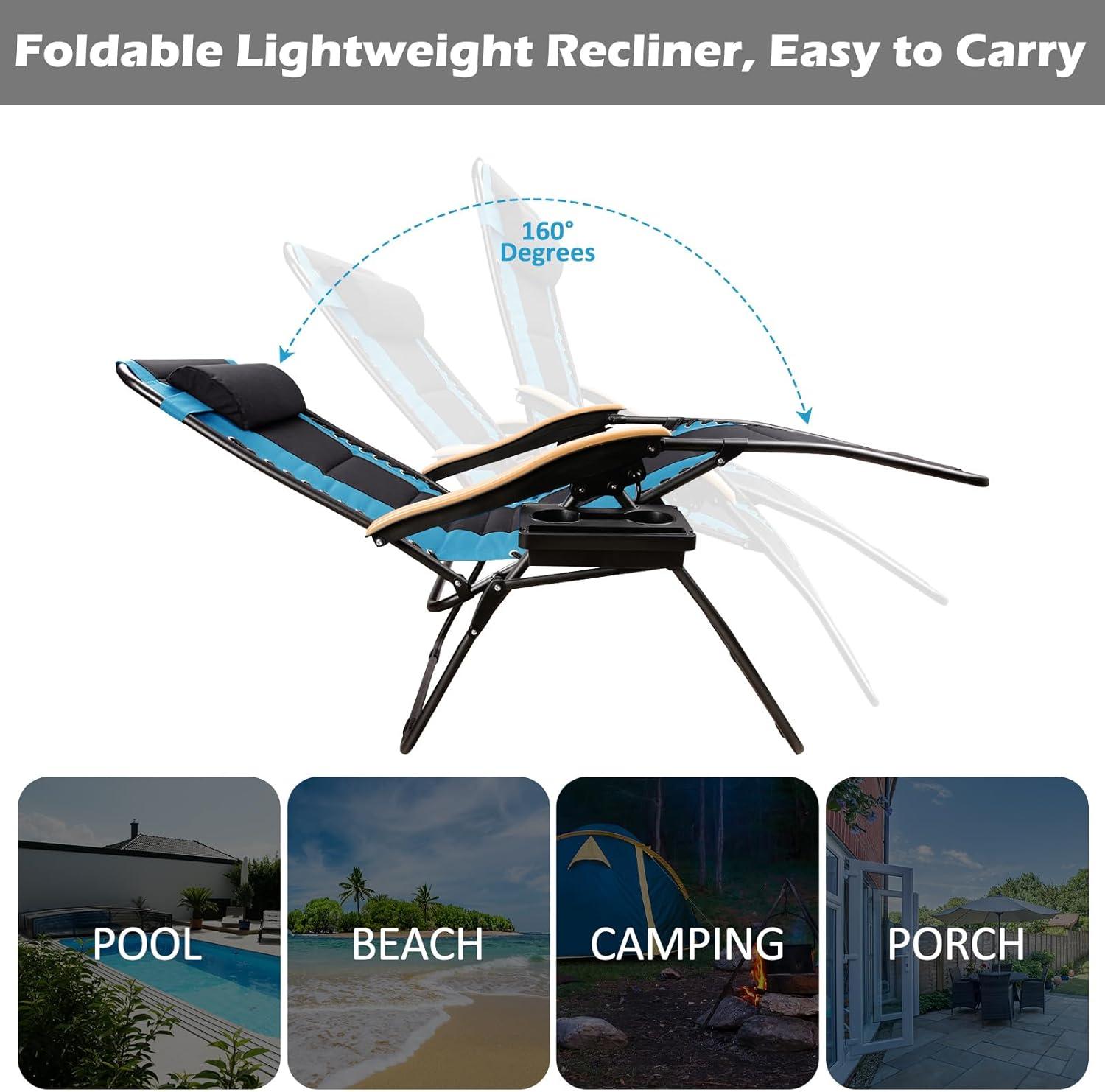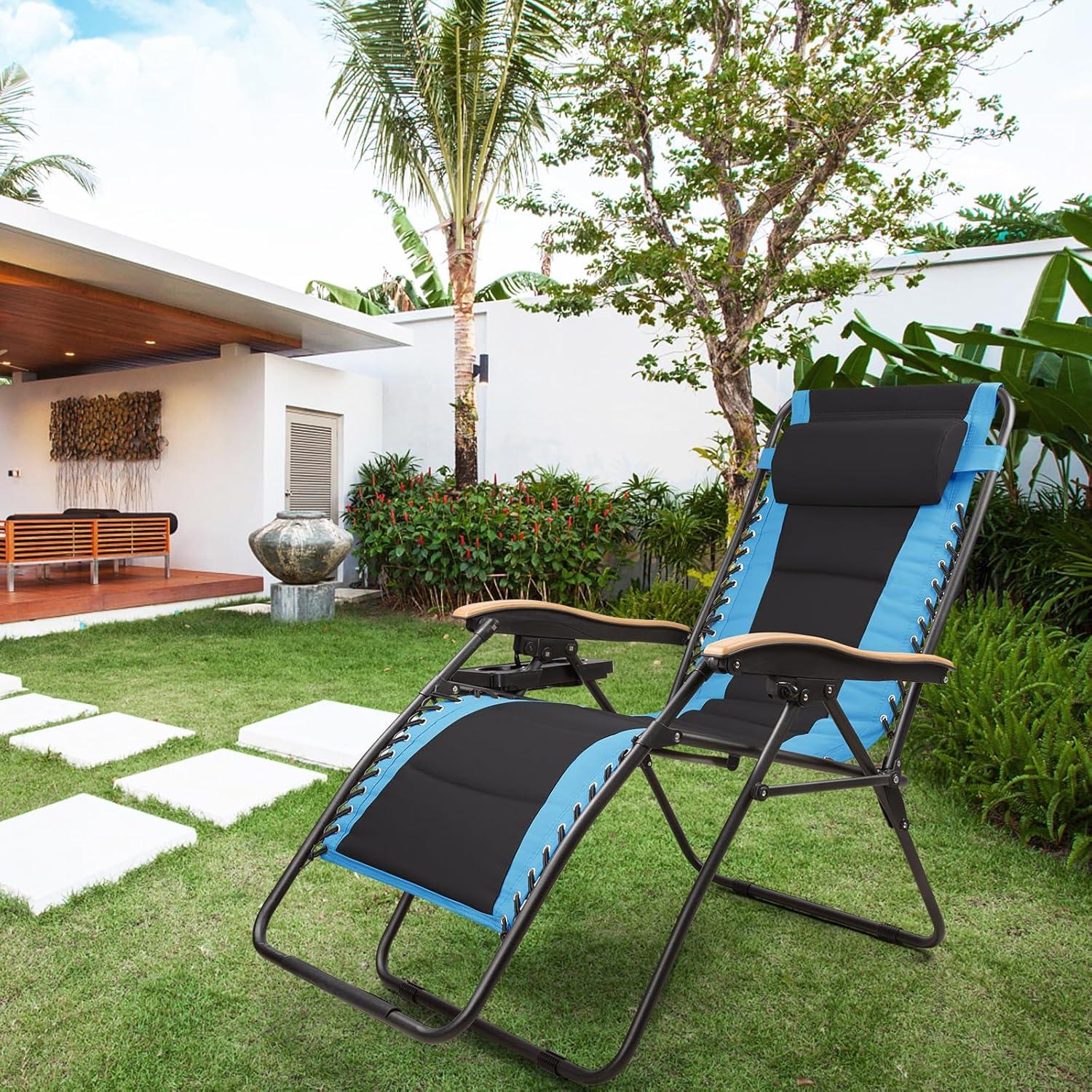 FREE SOLDIER Oversized XL Padded Zero Gravity Lounge Chair Adjustable Reclining Folding Chair with Cup Holder 400lb (Blue)