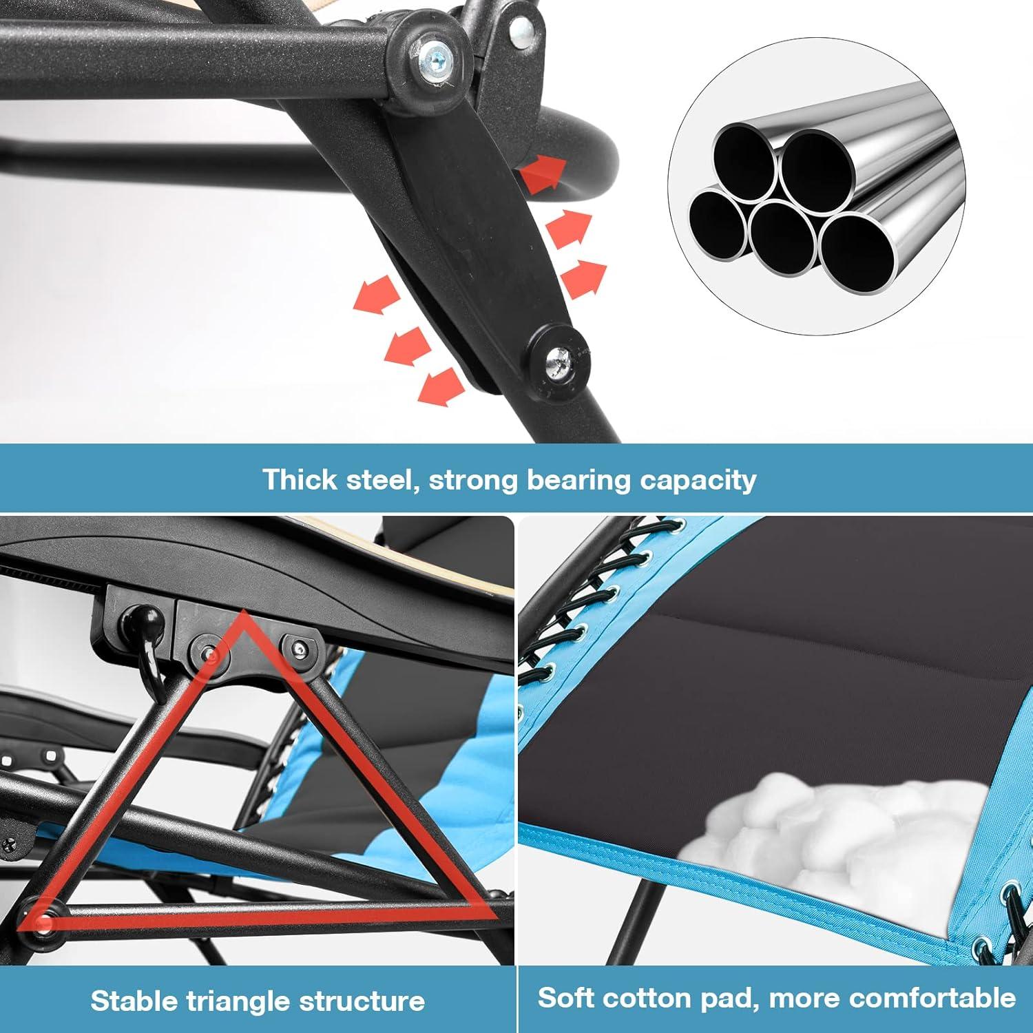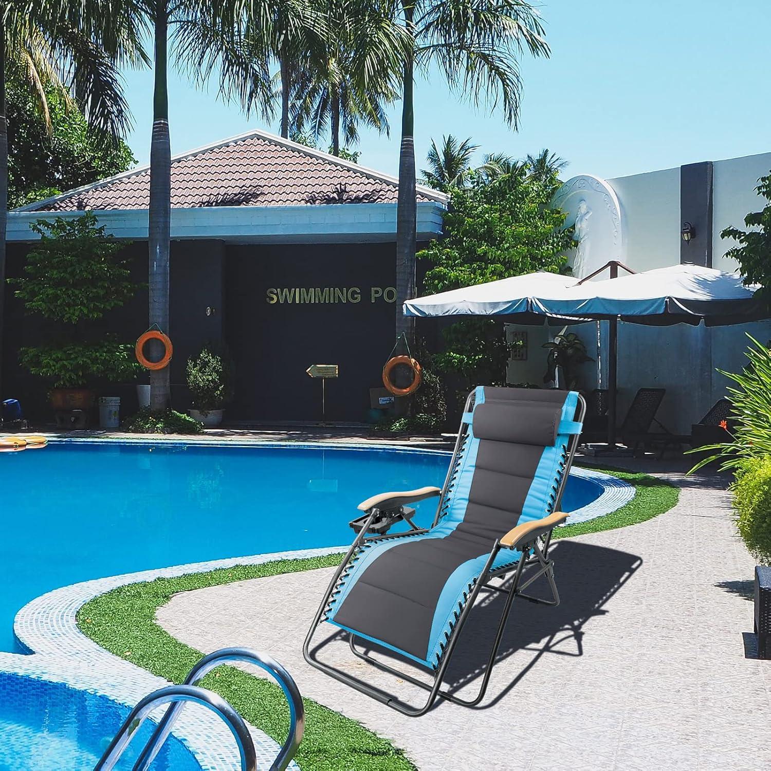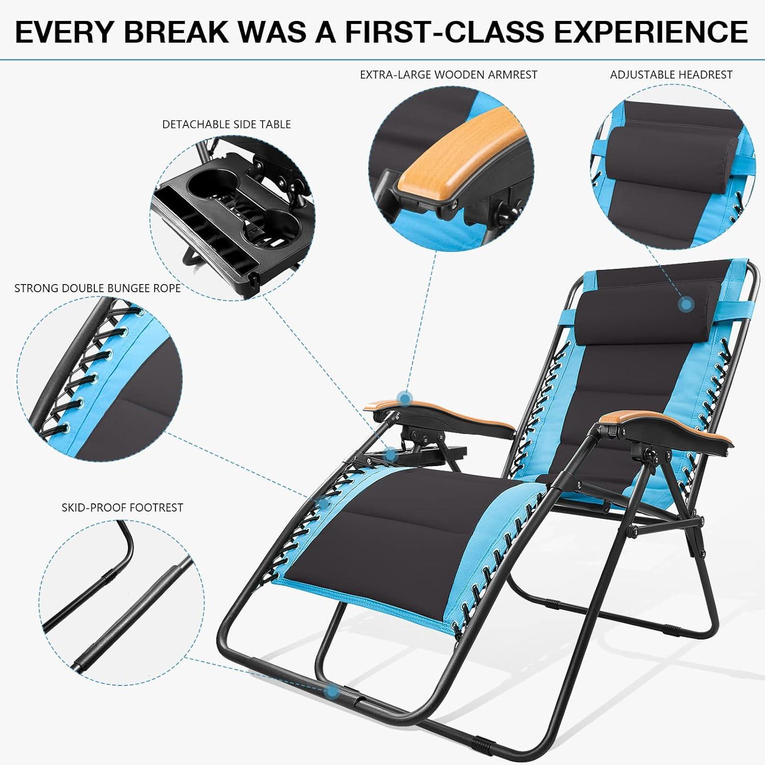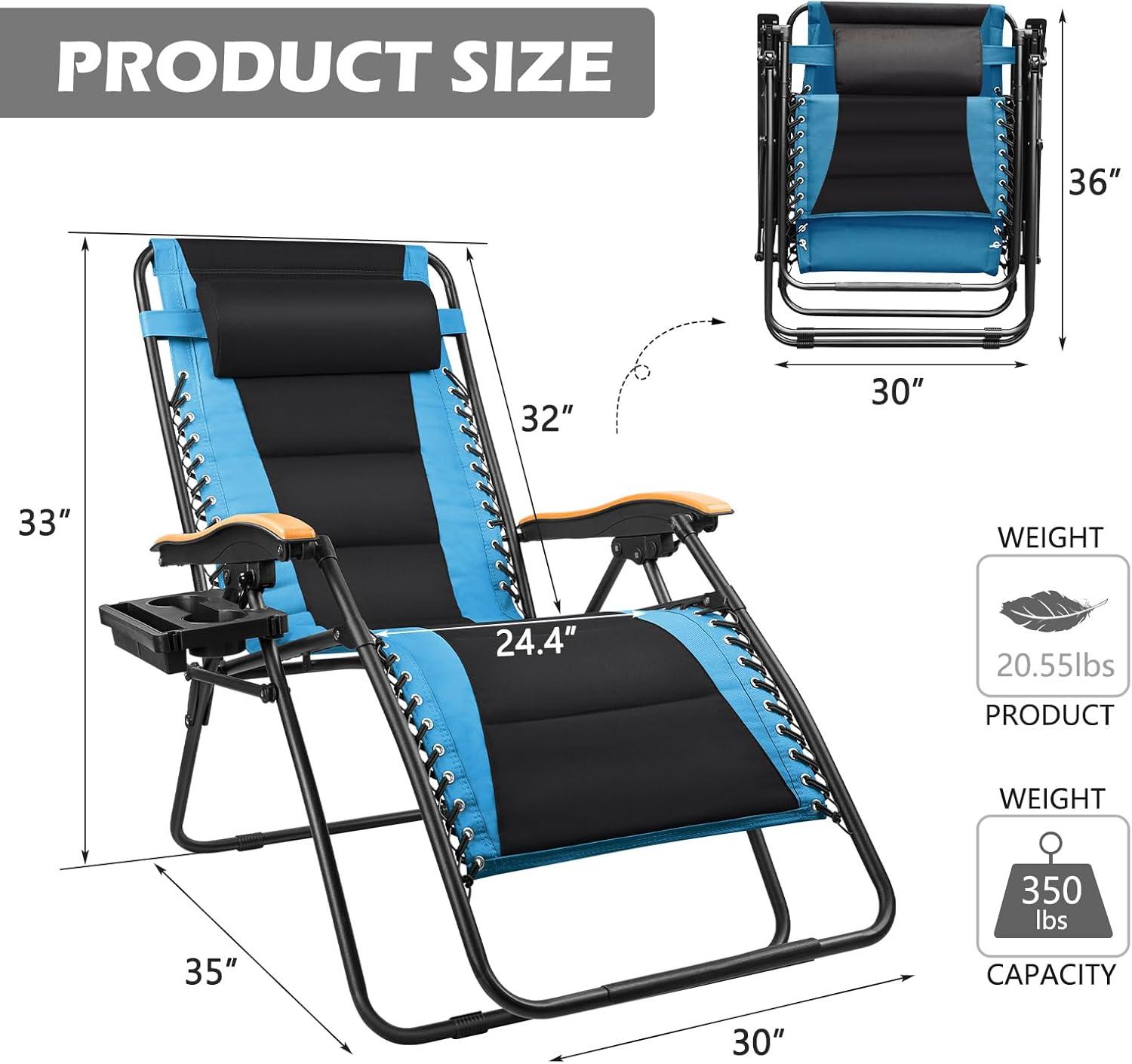 FREE SOLDIER Oversized XL Padded Zero Gravity Lounge Chair Adjustable Reclining Folding Chair with Cup Holder 400lb (Blue)