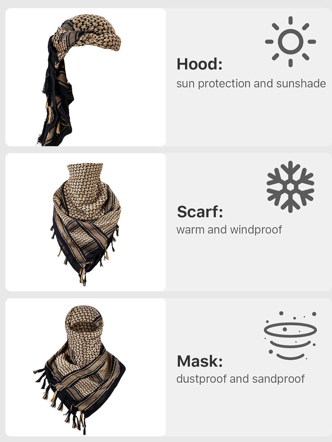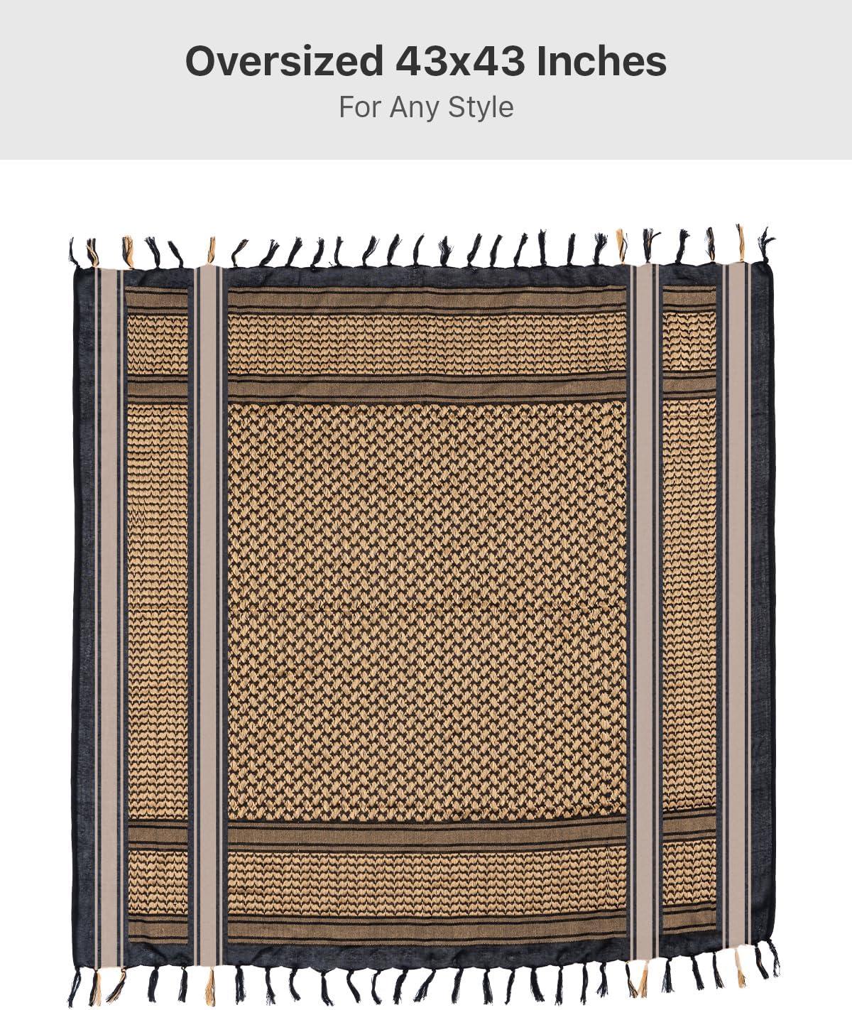 FREE SOLDIER Scarf Military Shemagh Tactical Desert Keffiyeh Head Neck Scarf Arab Wrap with Tassel for Men Women(Black Brown)