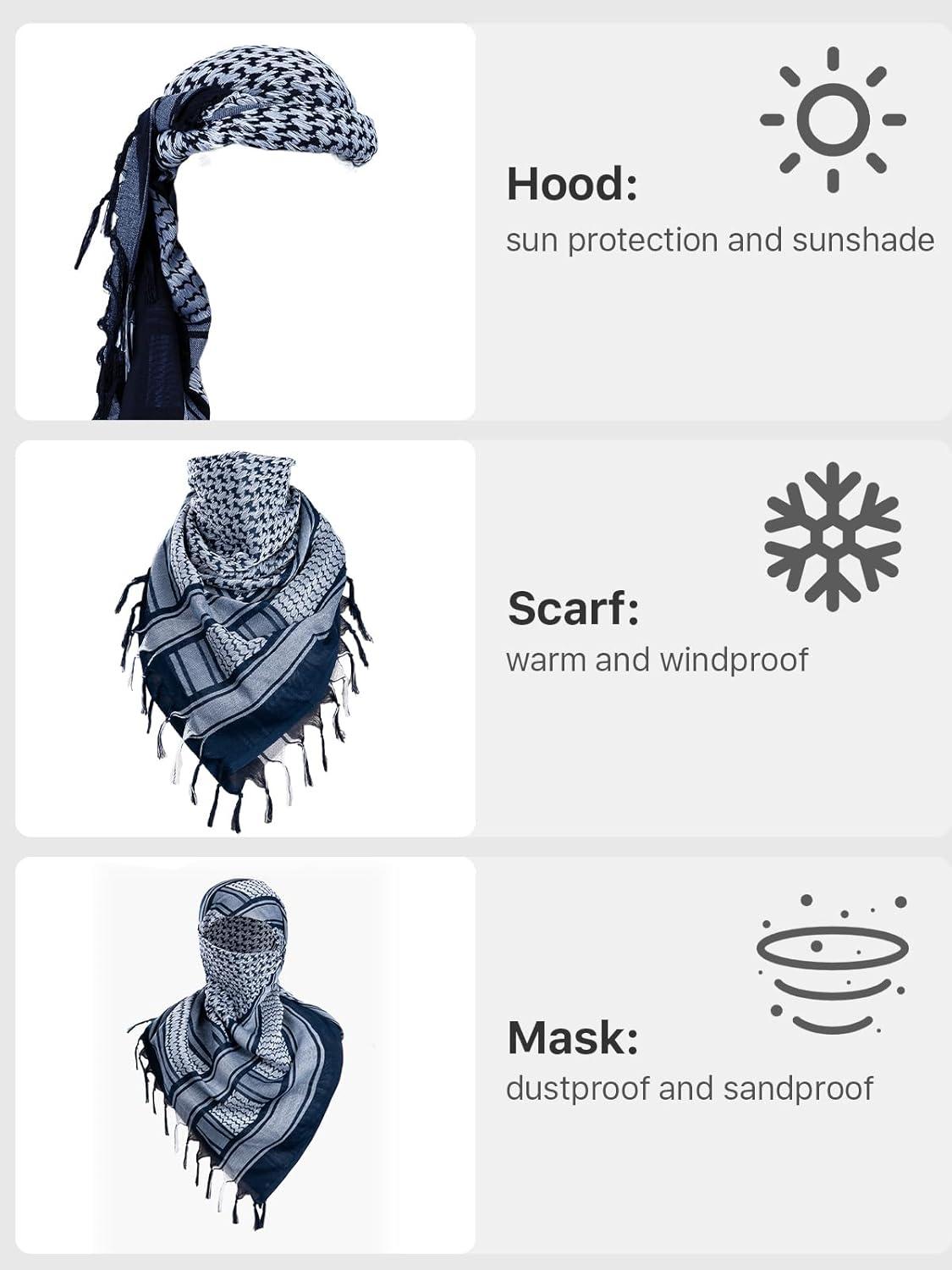 FREE SOLDIER Scarf Military Shemagh Tactical Desert Keffiyeh Head Neck Scarf Arab Wrap with Tassel for Men Women(Blue)