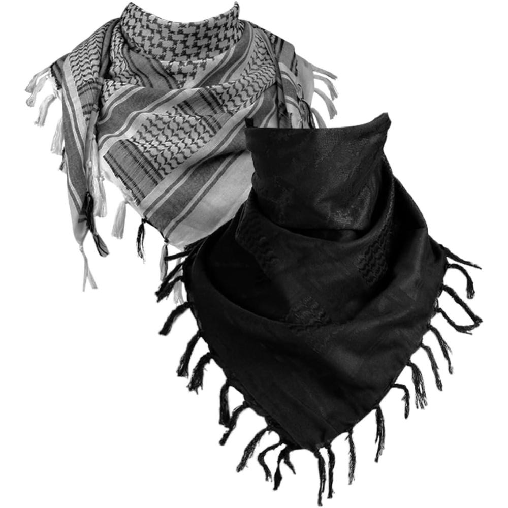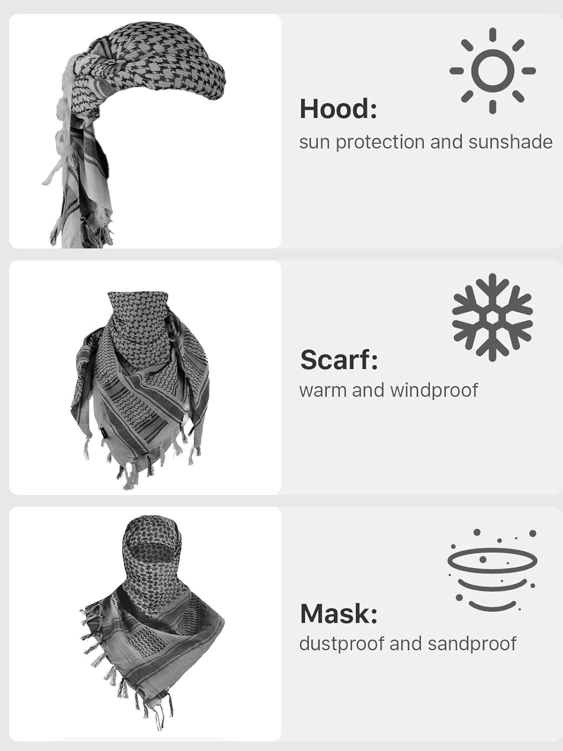 FREE SOLDIER Scarf Military Shemagh Tactical Desert Keffiyeh Head Neck Scarf Arab Wrap with Tassel for Men Women(Gray and Camo Black)