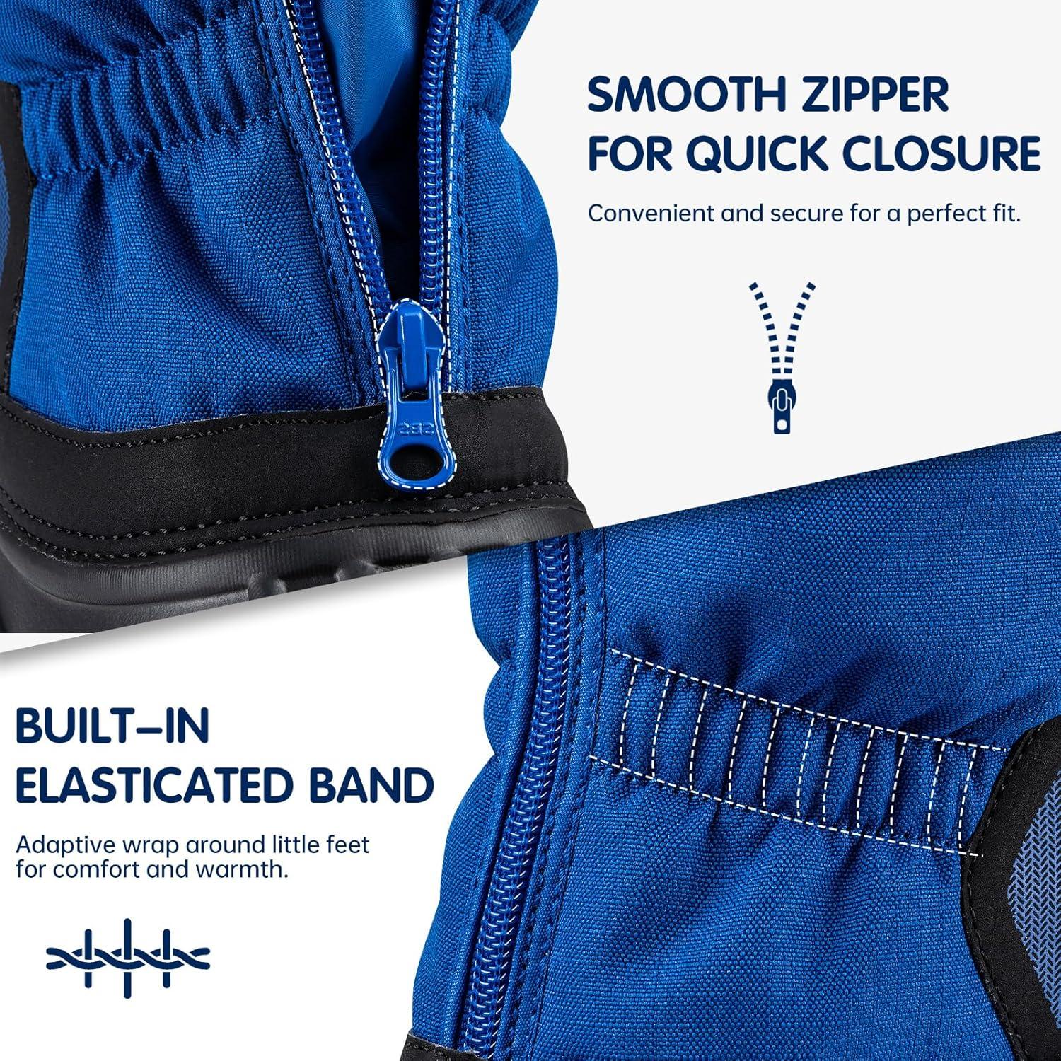 FREE SOLDIER Snow Boots for Kids Waterproof with Zipper Winter Warm Non Slip Cold Weather Outdoor Boys Girls Snow Boots(Blue)