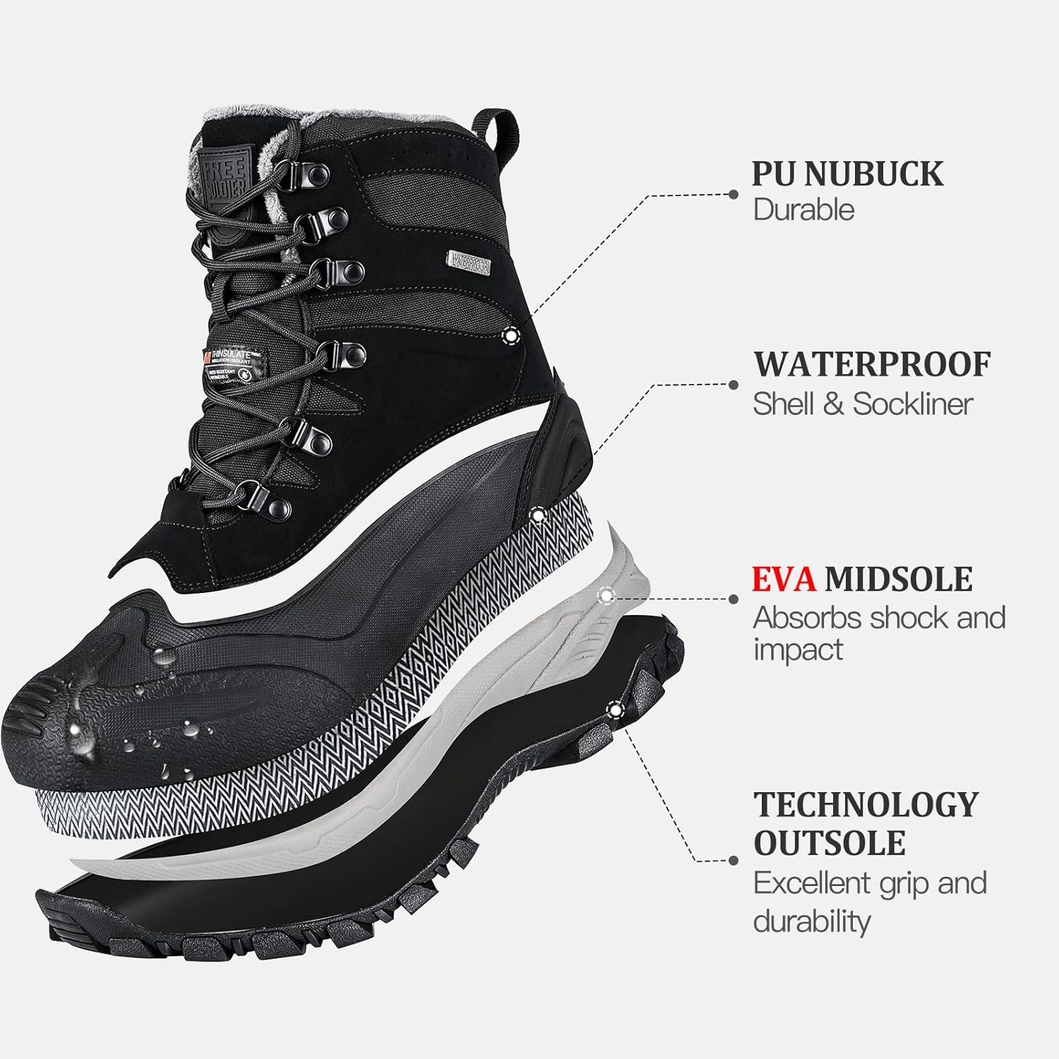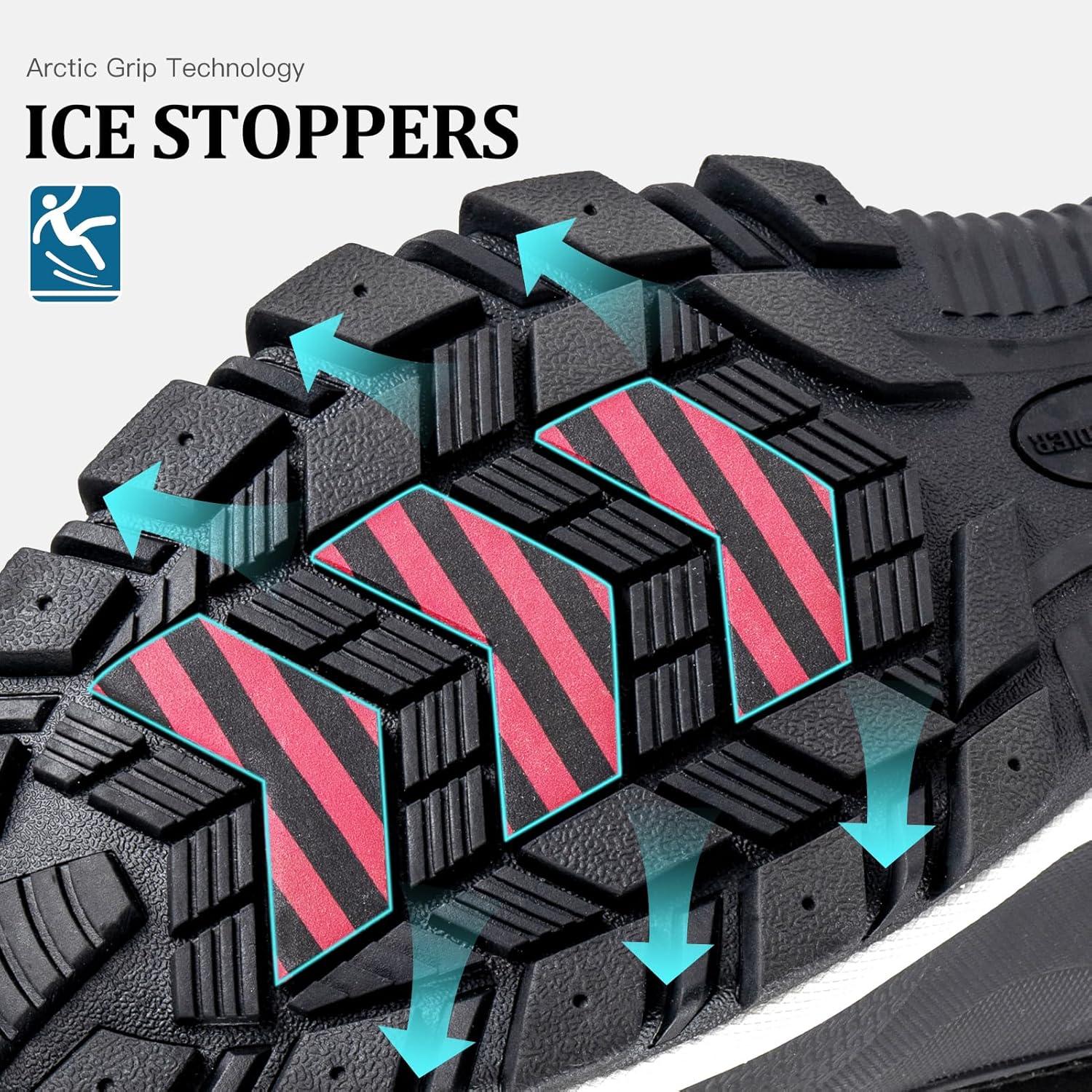ARCTIC GRIP ICE ANTI-SLIP TECHNOLOGY: When you step on the layer of crystal clear snow, you no longer worry about the embarrassment and danger of slipping. The rubber outsole of these men's snow boots hides the secret of technology: Arctic Grip technology. Tens of thousands of miniature claws tightly grip the ice, whether it's rugged mountain roads or smooth ice, these snow boots will keep you moving smoothly and surely
