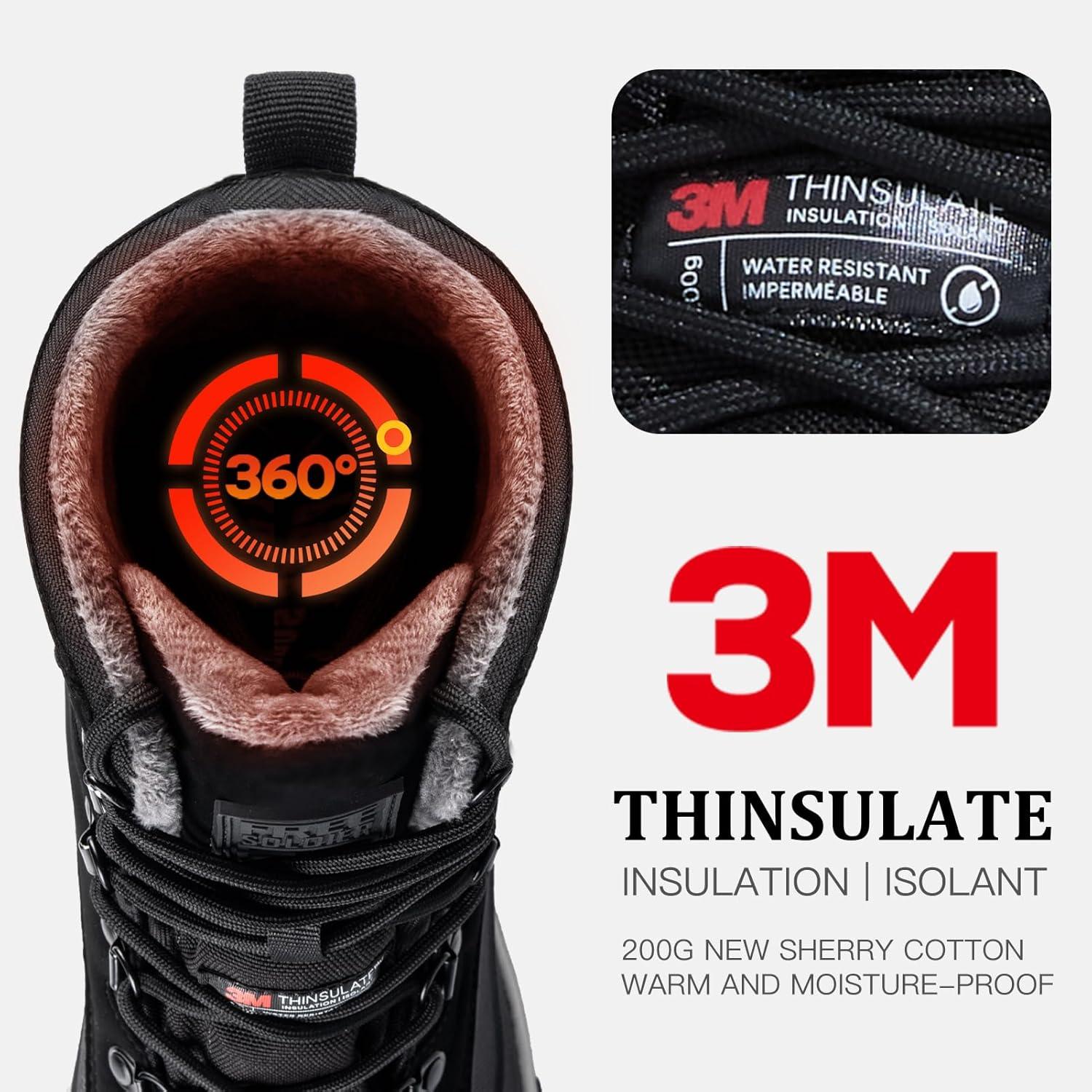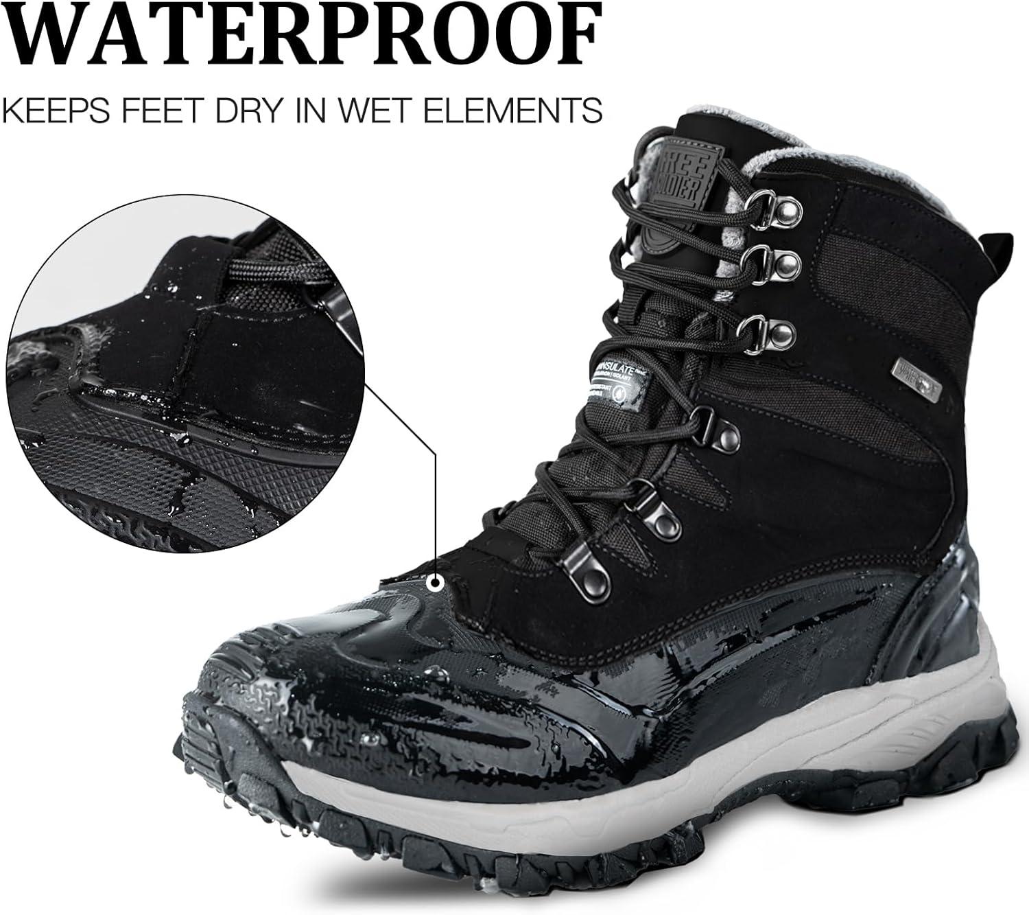 TRIPLE WATERPROOFING-RB WATERPROOF SHELL AND WATERPROOF SOCK LINER: With rain and snow in winter, a pair of waterproof snow boots is a must. The men's snow boots have an RB waterproof shell, a waterproof 900D Oxford fabric upper, and a waterproof lining inside. The tongue’s sandwich layer provides extra defense against cold and moisture, making these boots ideal for wet streets or snowy terrain. This pair of snow hiking boots is your reliable partner
