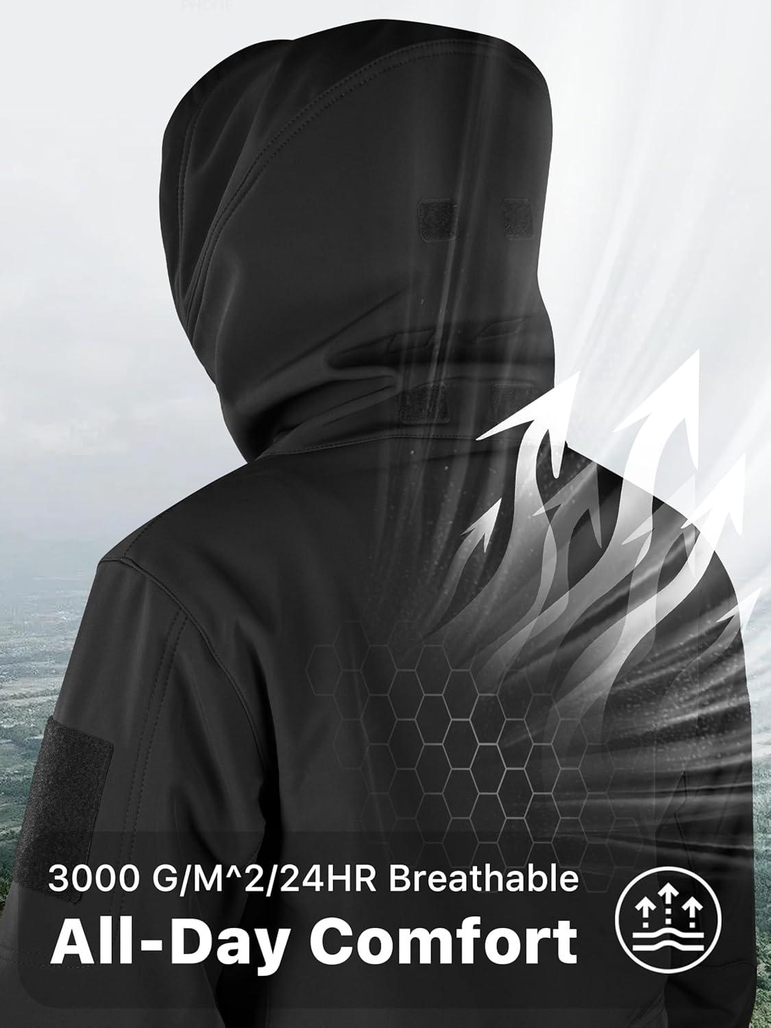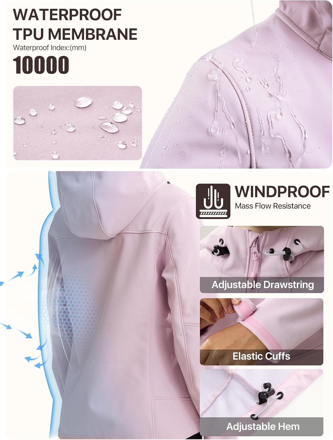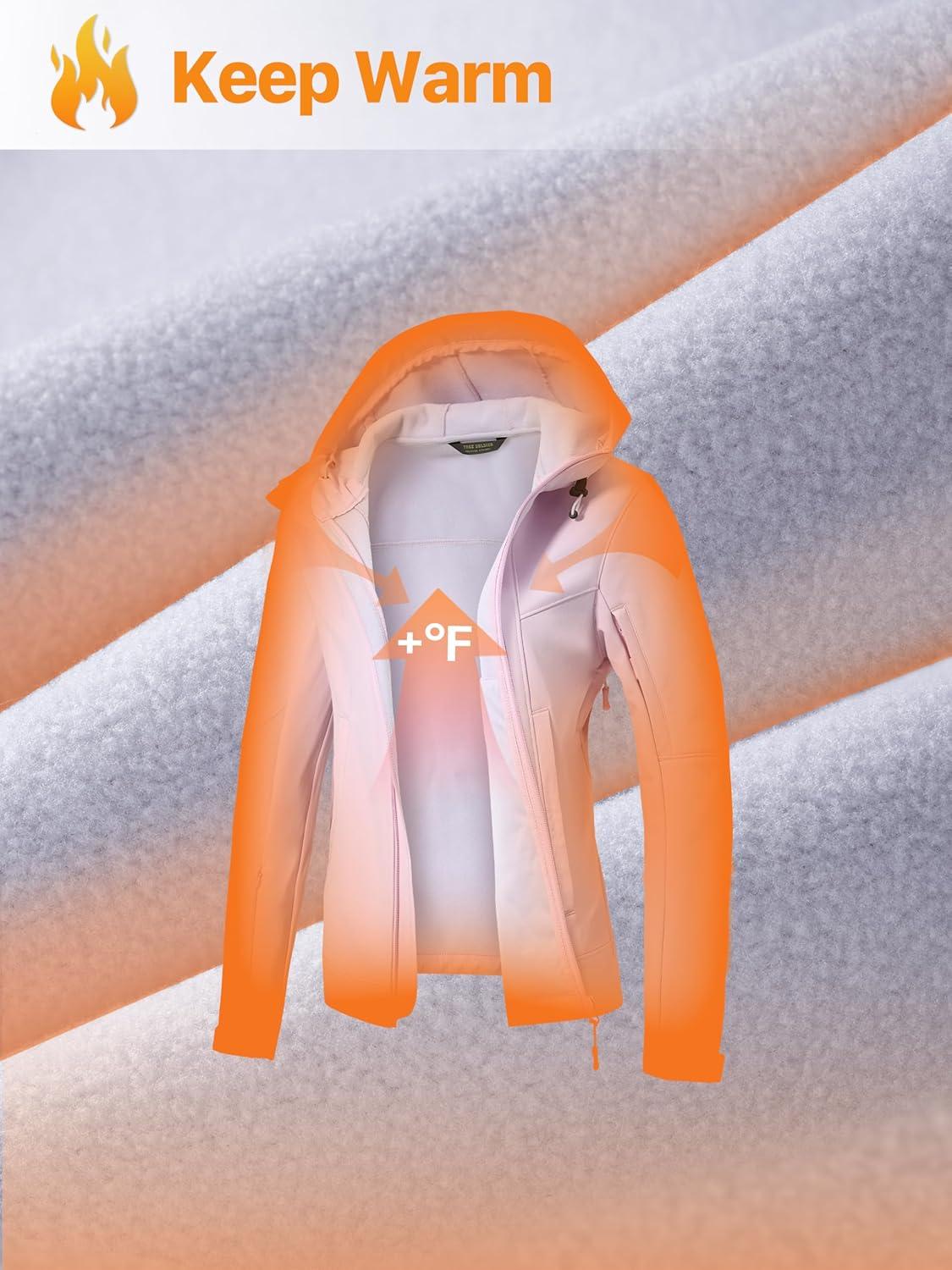 Waterproof & Windproof: The outer soft shell of fleece lined jacket is stain & abrasion resistant and easy care. The excellent TPU membrane mid-layer is designed to retain heat, both waterproof and windproof. The inner fleece lining provides the ultimate body warmth management for outdoor performance. The breathable fabric radiating moisture while keep warm without being stuffy
