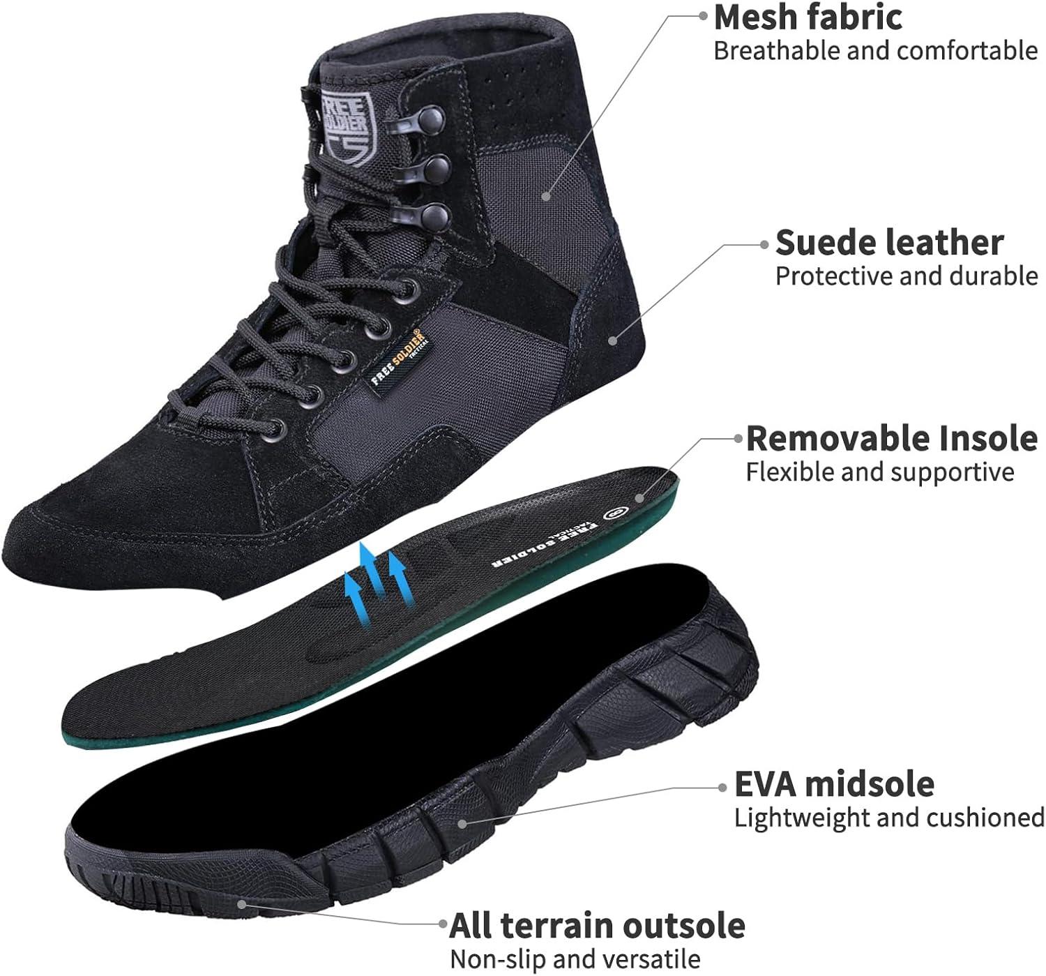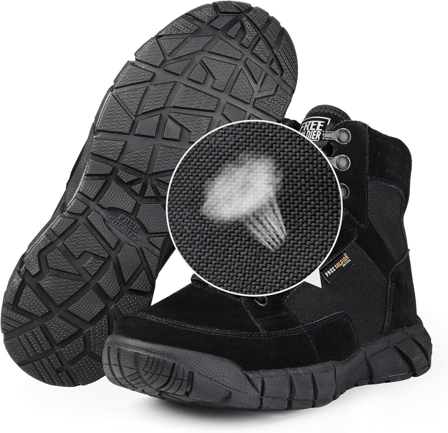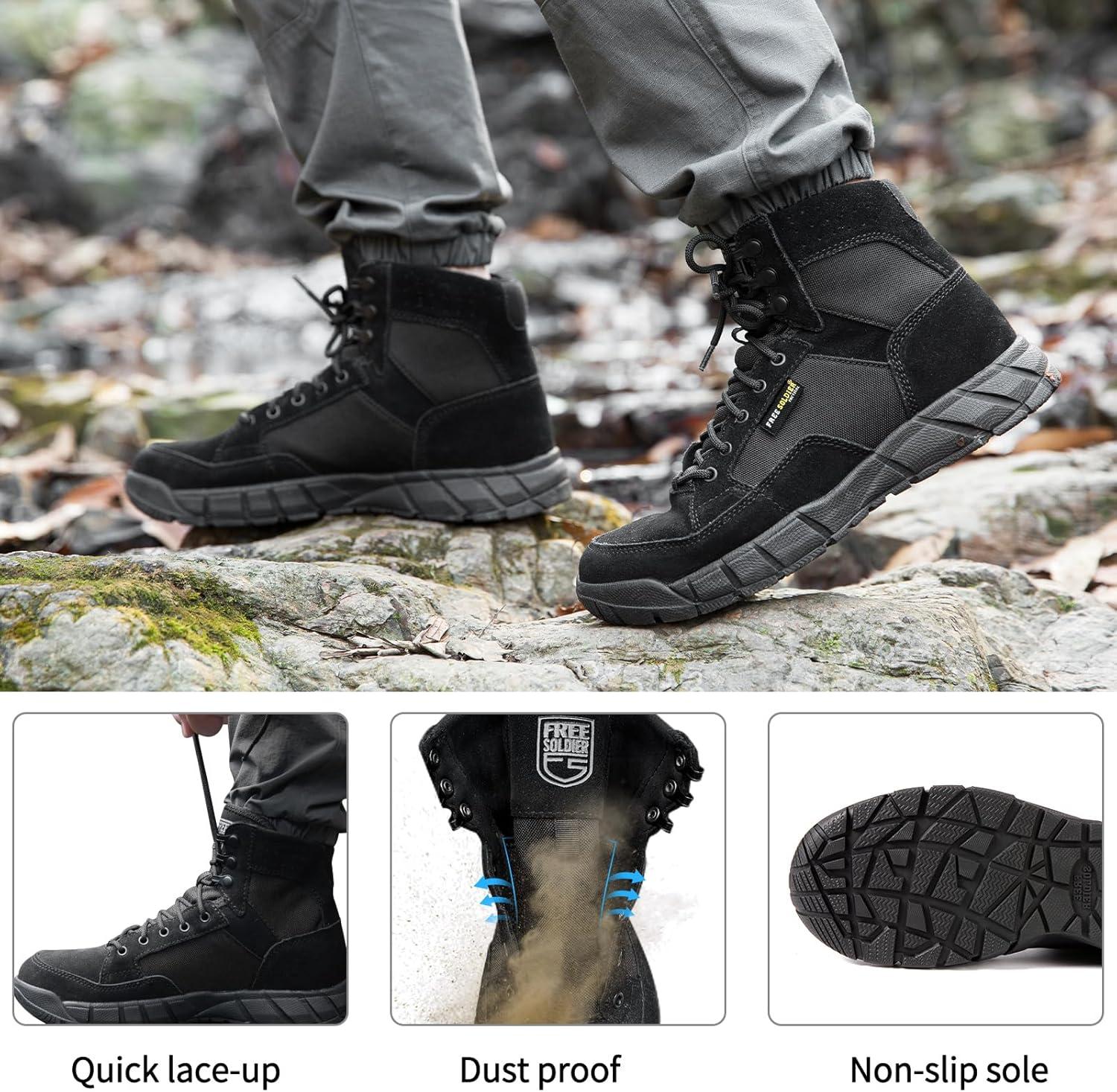 FREE SOLDIER Waterproof Hiking Boots Men's Tactical Work Boots Breathable Desert Boots 6 Inches Lightweight Military Boots(Black(not Waterproof/Thin Fabric))
