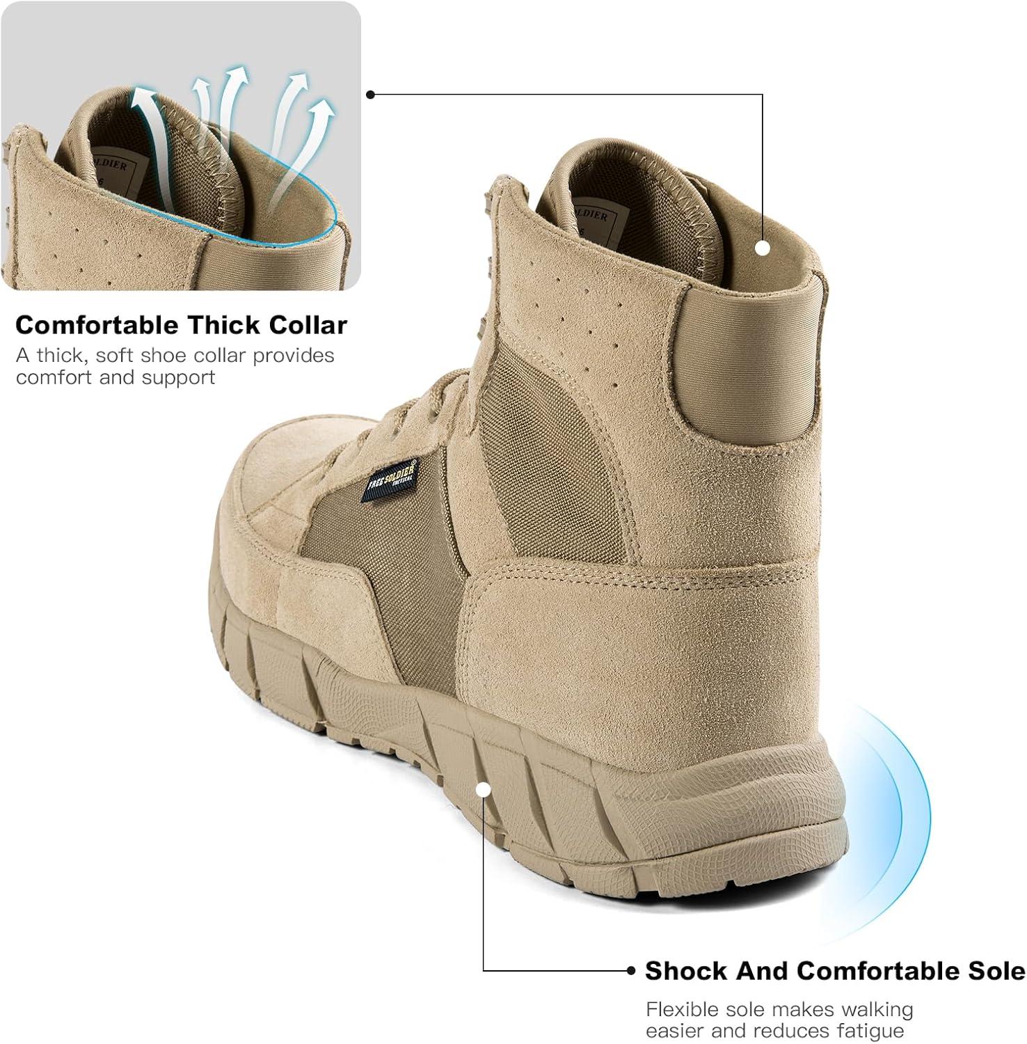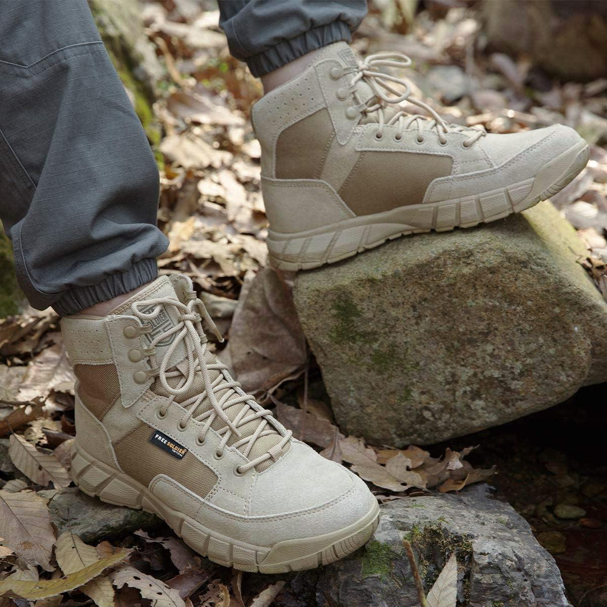 FREE SOLDIER Mens Waterproof Tactical Hiking Boots Combat Work Boots Desert Military Boots(Brown)
