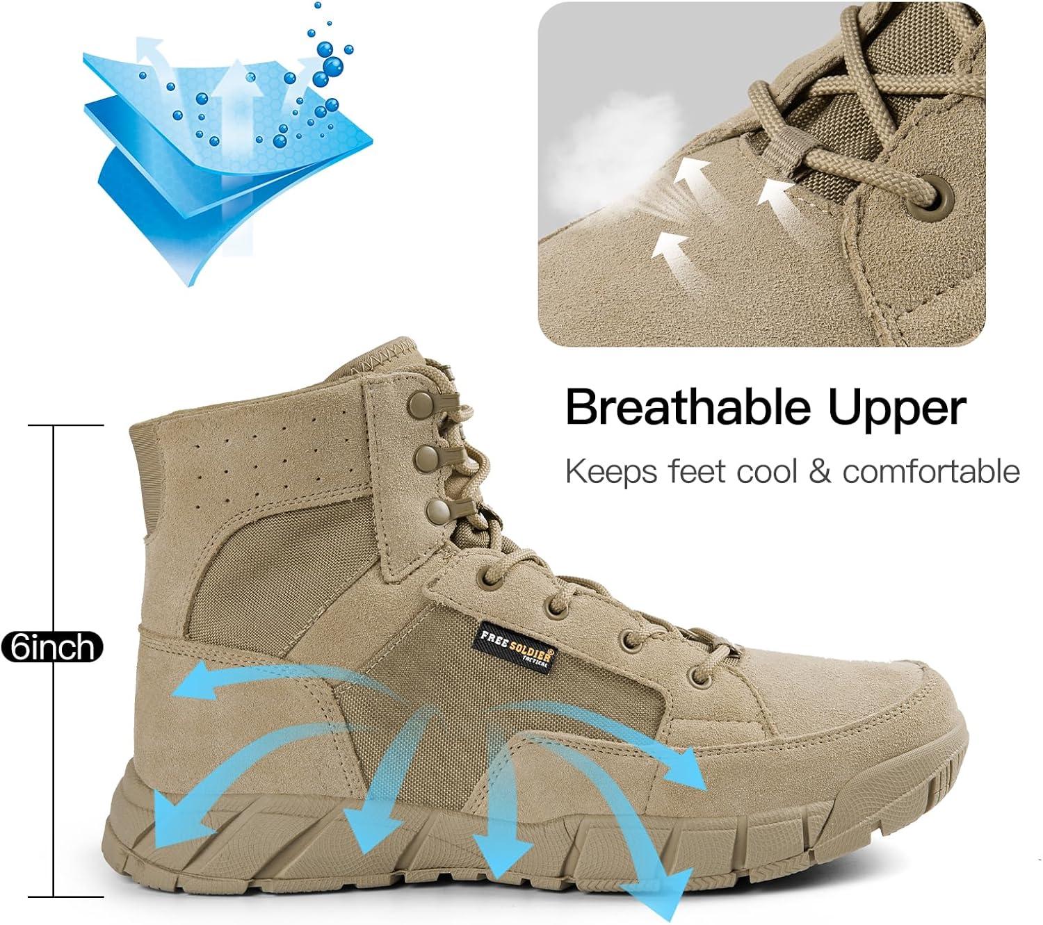 imageFREE SOLDIER Waterproof Hiking Work Boots Mens Tactical Boots 6 Inches Lightweight Military Boots Breathable Desert BootsTan 95W