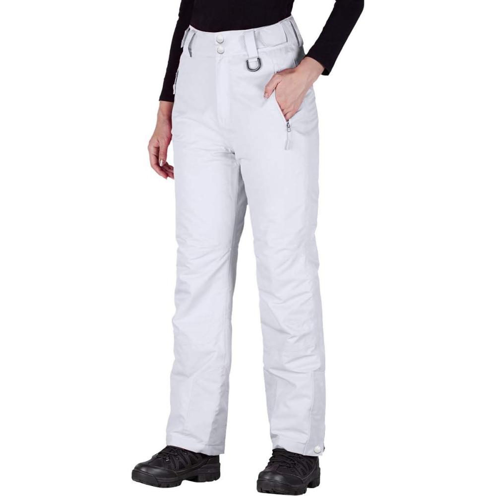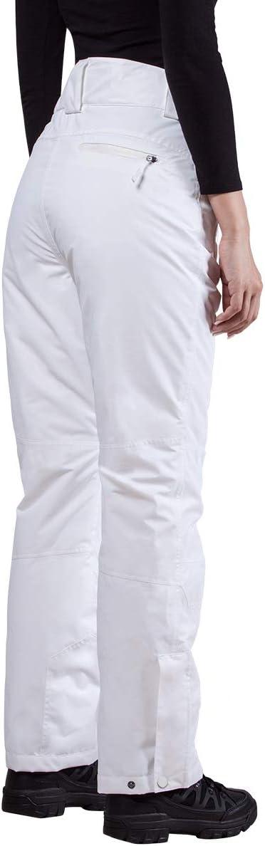 EXQUISITE DESIGN: High waist with D-ring makes the snowboard pants fashionable, functional and provides the extra warmth to your abdomen. The pleats with reinforced seams on the pants provide full mobility and excellent fit. The multi-layered construction with lightweight fabric meet the needs of warmth and lightness, get rid of the clumsiness for outdoor adventures. Color blocking embroidery logo makes the pure color ski pants out of the ordinary.