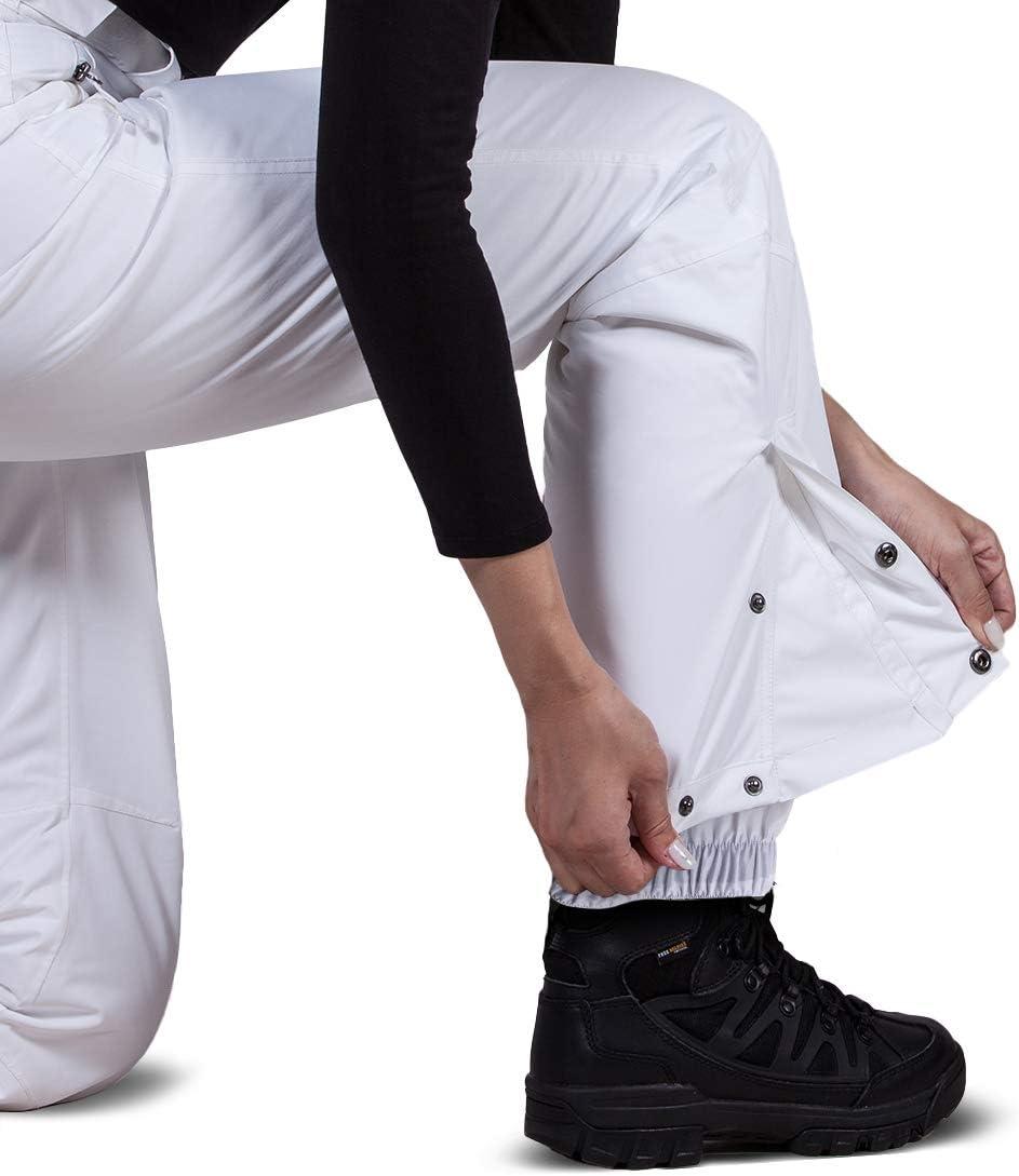 THOUGHTFUL DETAILS: The Exterior Adjustable Waist with Hook & Loop on both sides makes the outdoor ski pants provide precise fitting. Pants placket colsure adopts YKK zipper and snap fastener, which has self locking function to avoid the embarrassment and ensures easy on and off wear. Adjustable outer leg openings with five ankle snap fasteners and inner elastic pants leg, fit your boots well and keep the wind out. The extra 600D Ballistic Nylon have an excellent durable preformance.