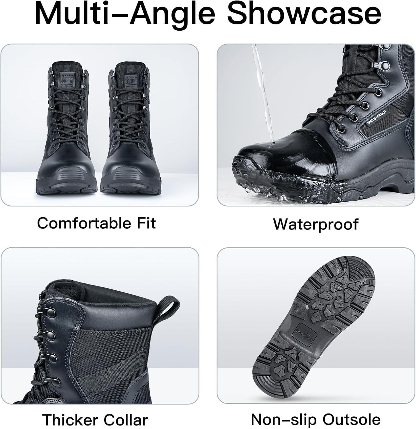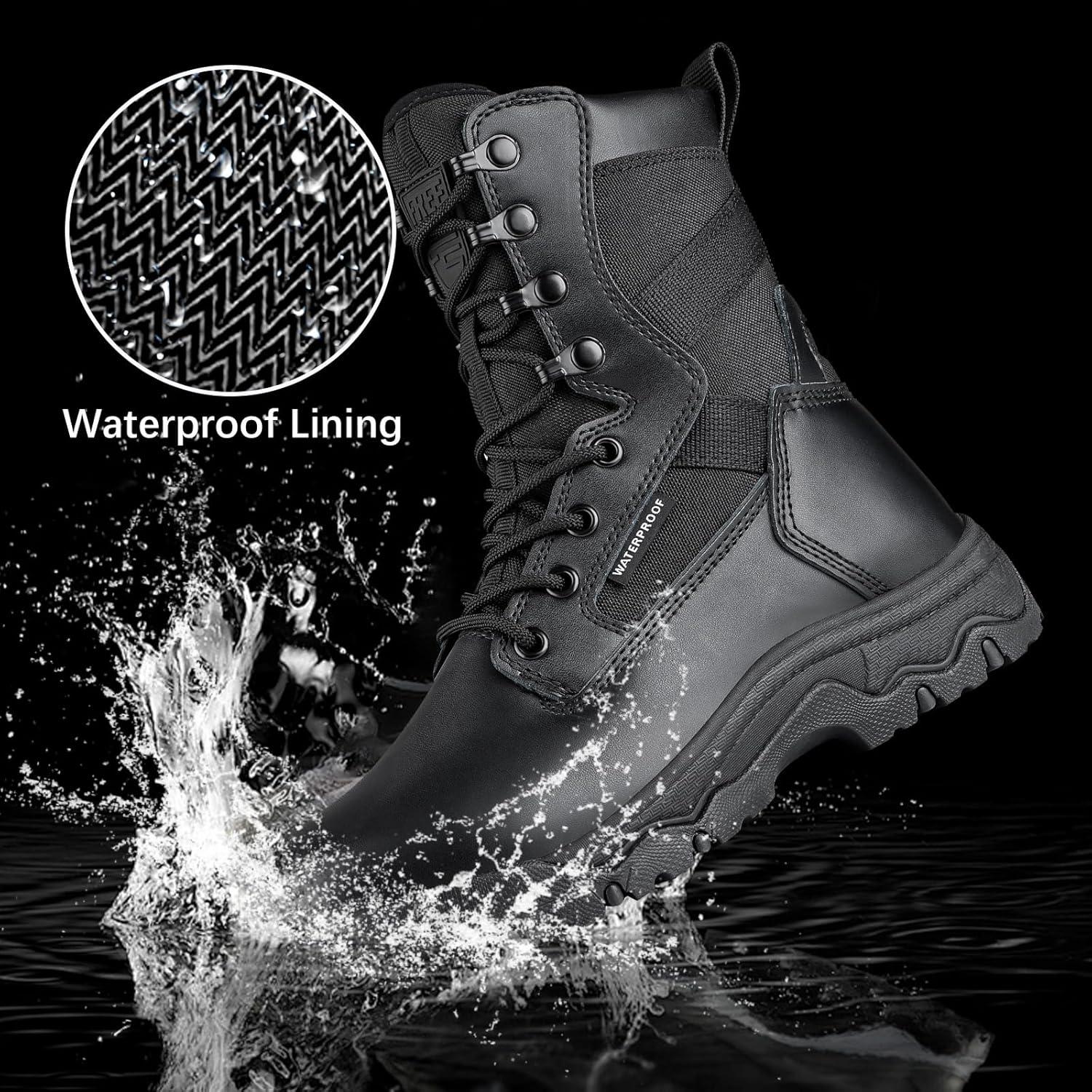 DURABLE & PROTECTIVE – These women's tactical boots feature an upper made of suede leather and 1000D Cordura fabric, ensuring durability and scratch resistance. The lightweight and flexible EVA midsole offers excellent cushioning for hiking or working. The all-terrain outsole provides great grip with a geometrical pattern design, making these non-slip tactical boots ideal for women. Strengthened toe cap and heel deliver full protection, anti-collision, and ankle support
