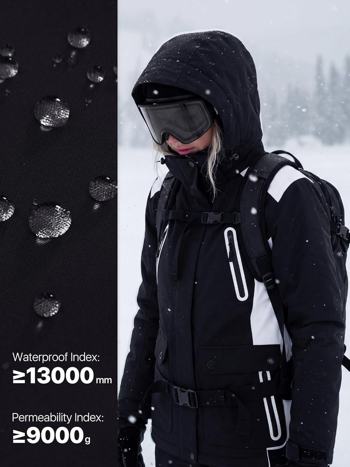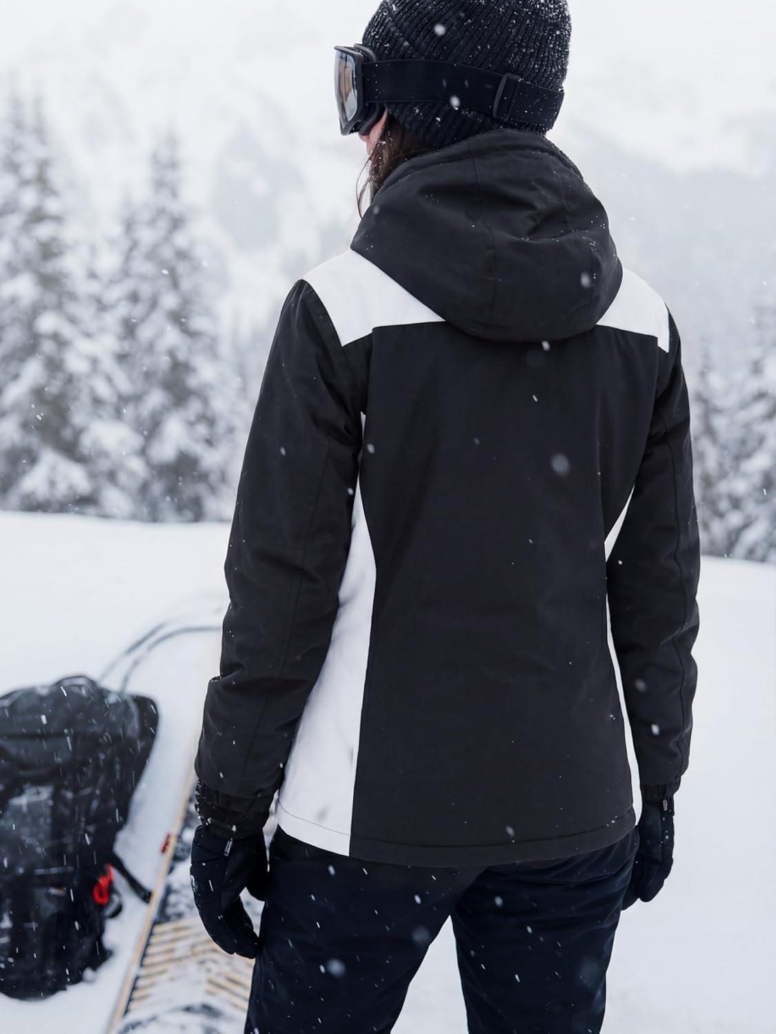 FREE SOLDIER Women's Waterproof Ski Jacket Fleece Lined Winter Coat Windproof Hooded Jacket Fully Taped Seams(Blackwhite)