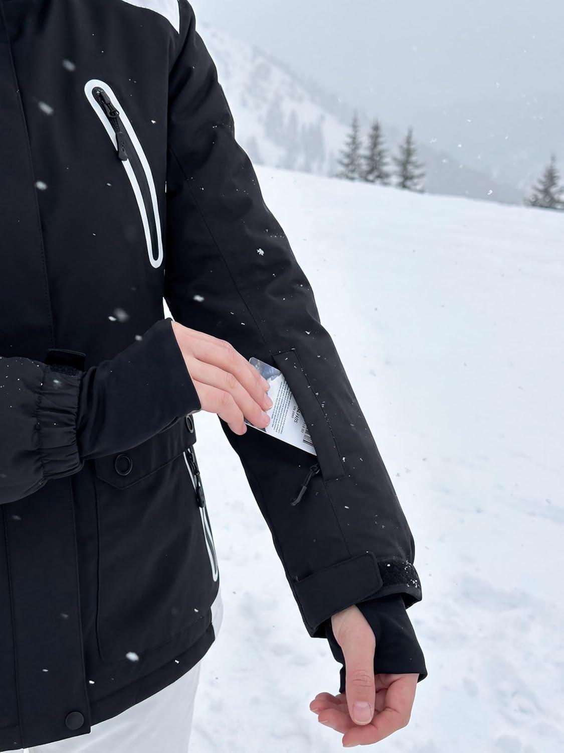 FREE SOLDIER Women’s Waterproof Ski Jacket Fleece Lined Winter Coat Windproof Hooded Jacket Fully Taped Seams(Whiteblack)