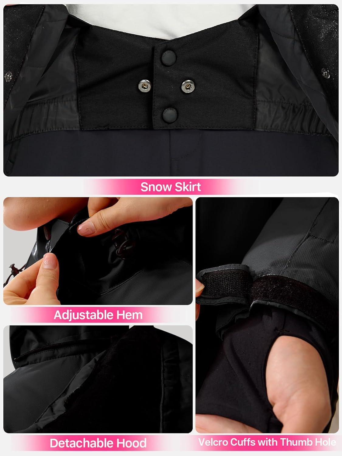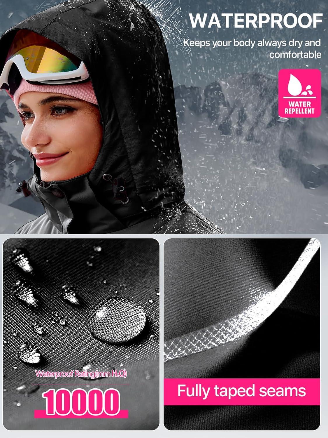 imageFREE SOLDIER Womens Waterproof Ski Snow Jacket Fleece Lined Warm Winter Rain Jacket with Hood Fully Taped SeamsBlack