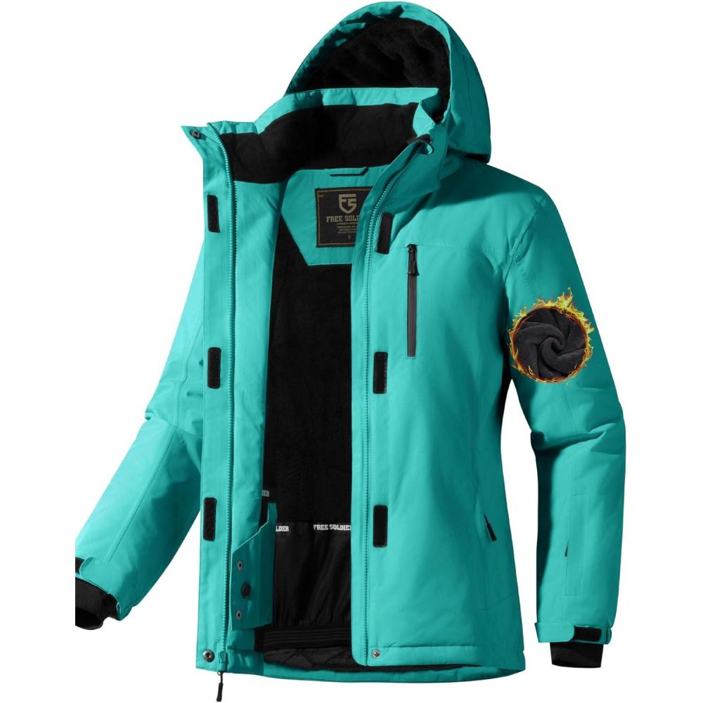 FREE SOLDIER Women's Waterproof Ski Snow Jacket Fleece Lined Warm Winter Rain Jacket with Hood Fully Taped Seams(Lake Blue)