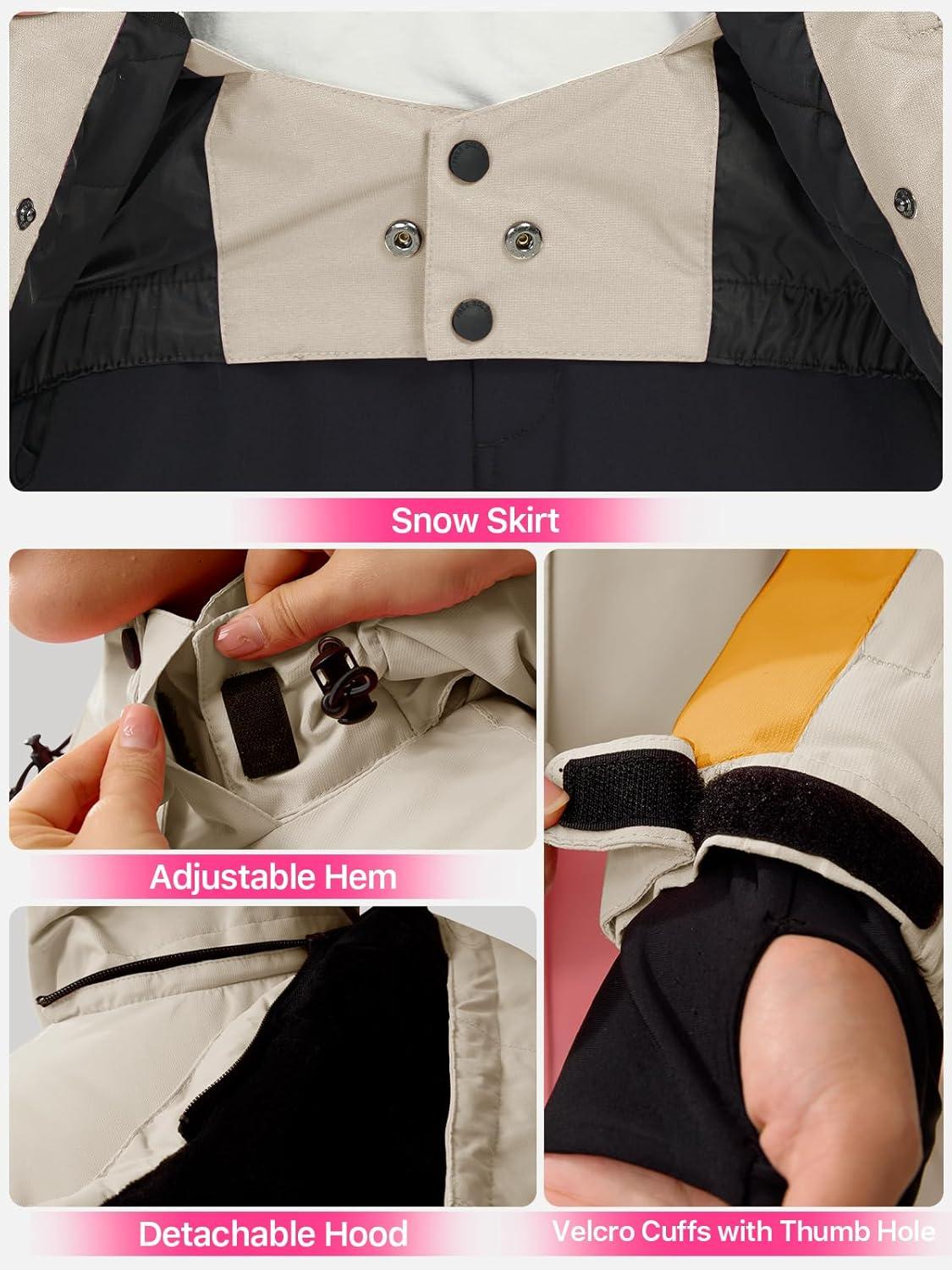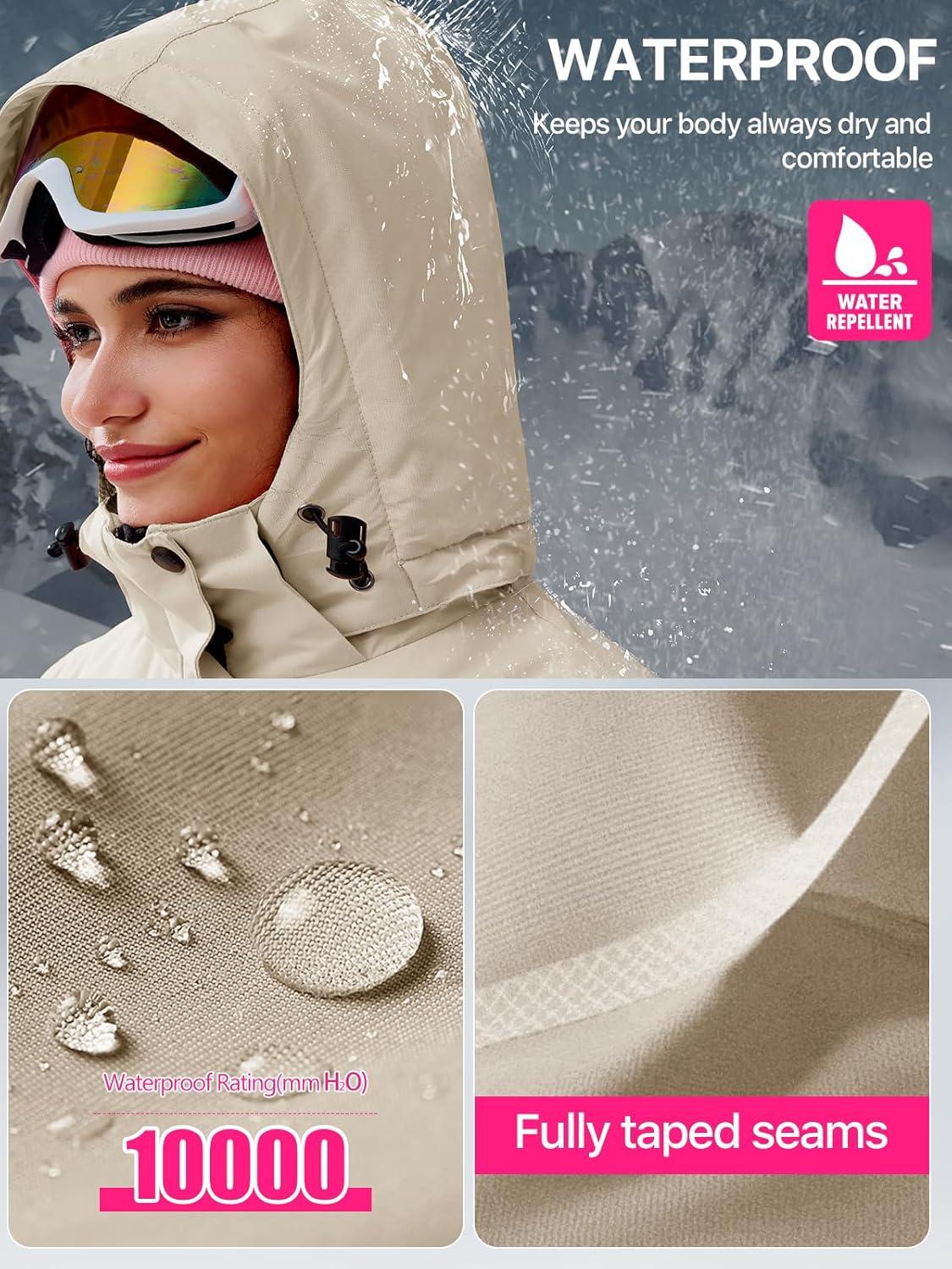 imageFREE SOLDIER Womens Waterproof Ski Snow Jacket Fleece Lined Warm Winter Rain Jacket with Hood Fully Taped SeamsLight KhakiGinger Yellow