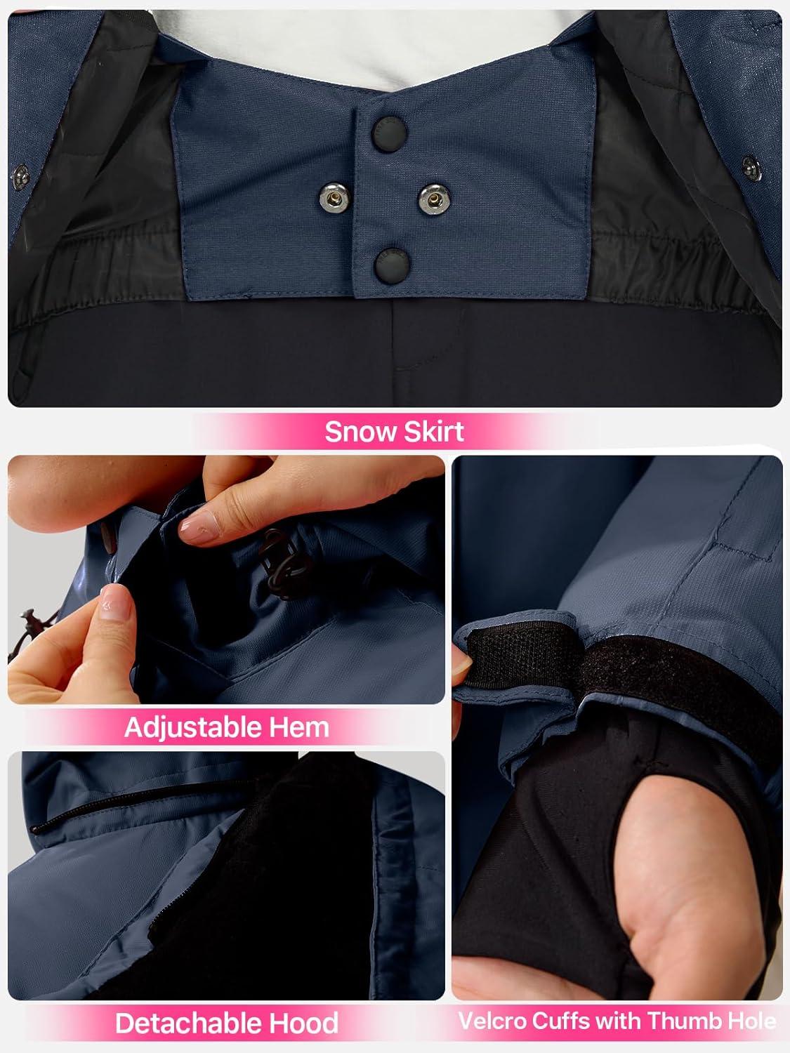 FREE SOLDIER Women’s Waterproof Ski Snow Jacket Fleece Lined Warm Winter Rain Jacket with Hood Fully Taped Seams(Midnight Navy)