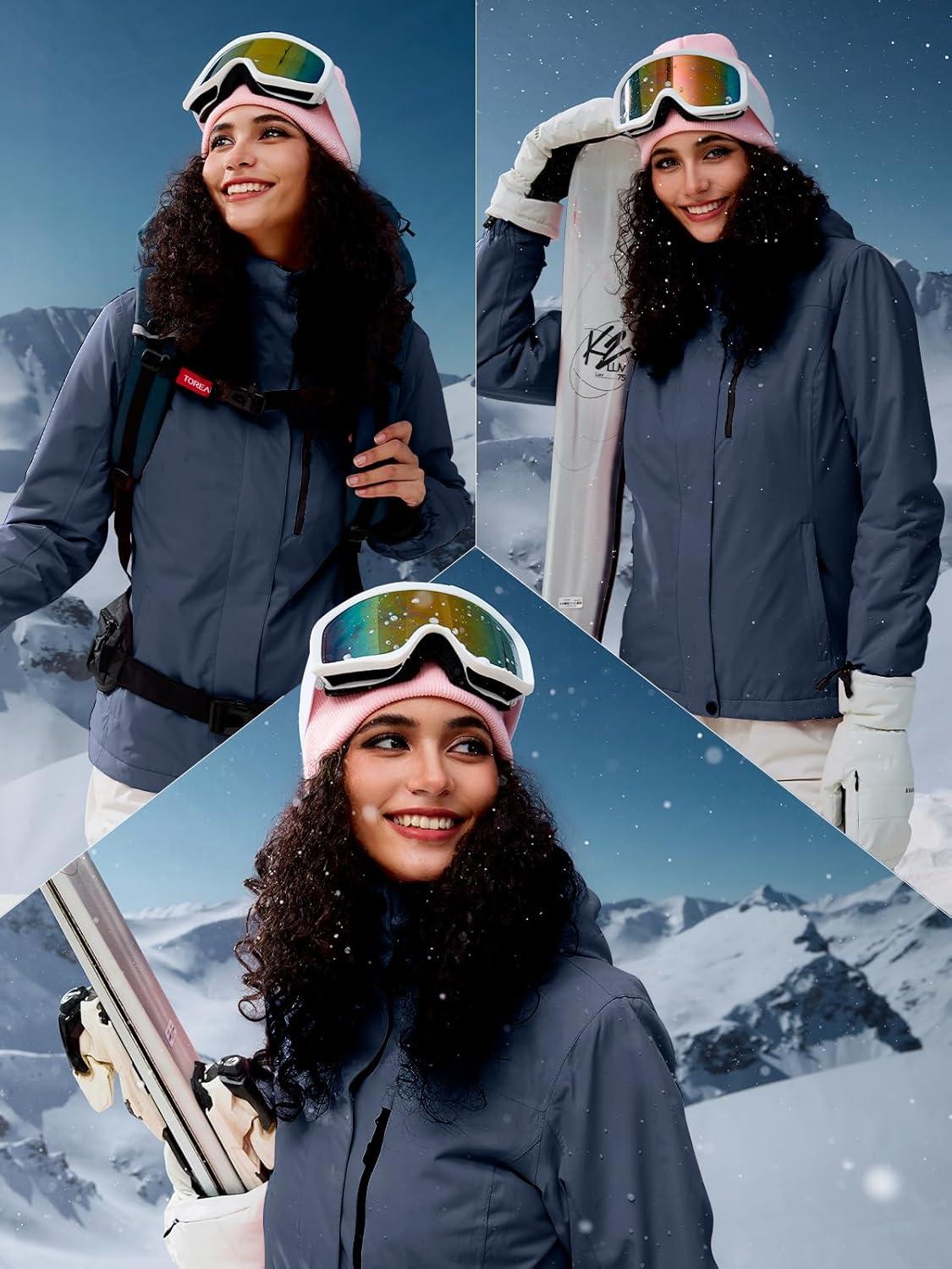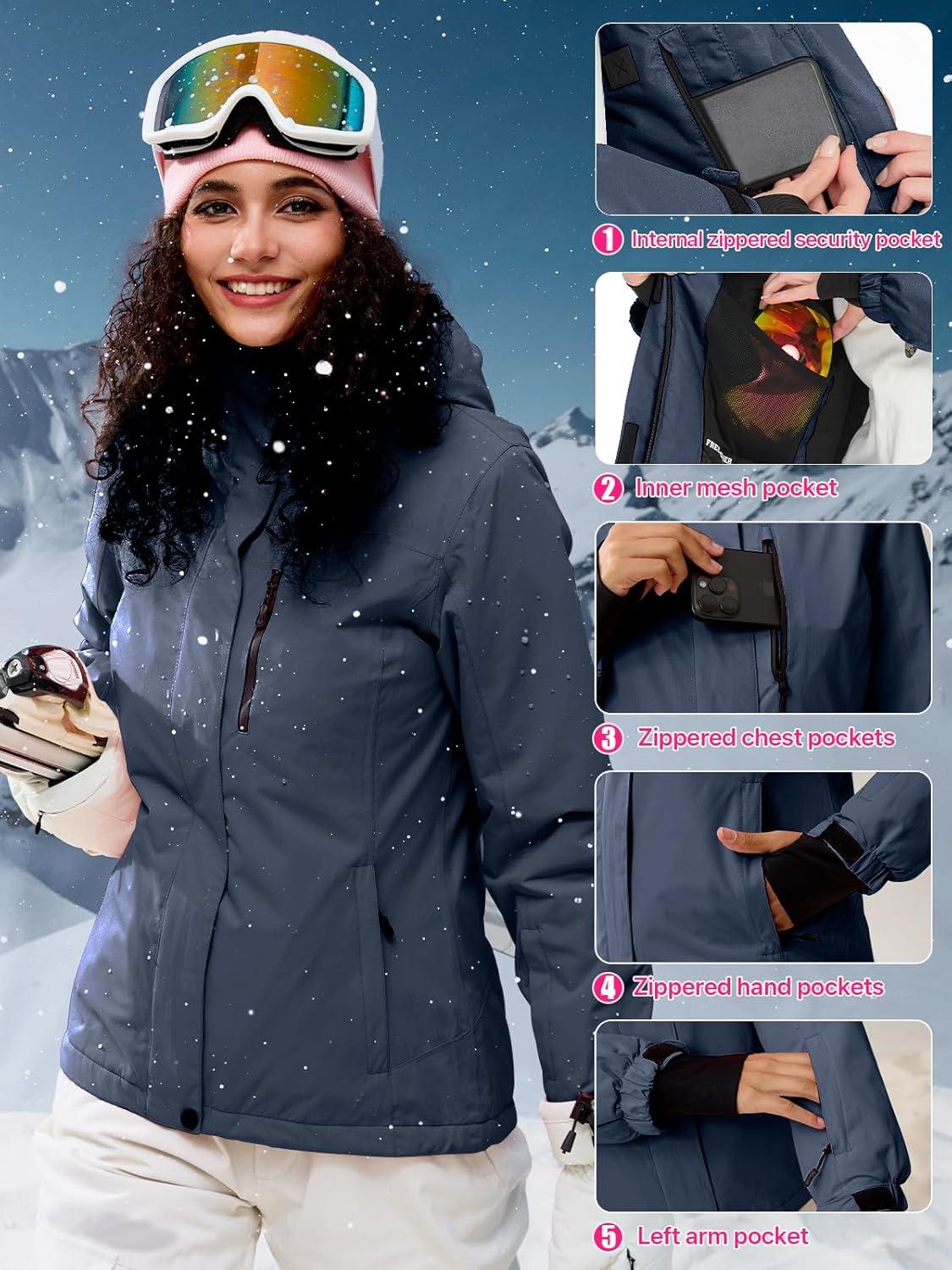 FREE SOLDIER Women's Waterproof Ski Snow Jacket Fleece Lined Warm Winter Rain Jacket with Hood Fully Taped Seams(Midnight Navy)