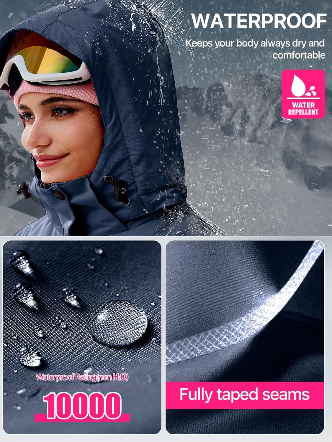 imageFREE SOLDIER Womens Waterproof Ski Snow Jacket Fleece Lined Warm Winter Rain Jacket with Hood Fully Taped SeamsMidnight Navy